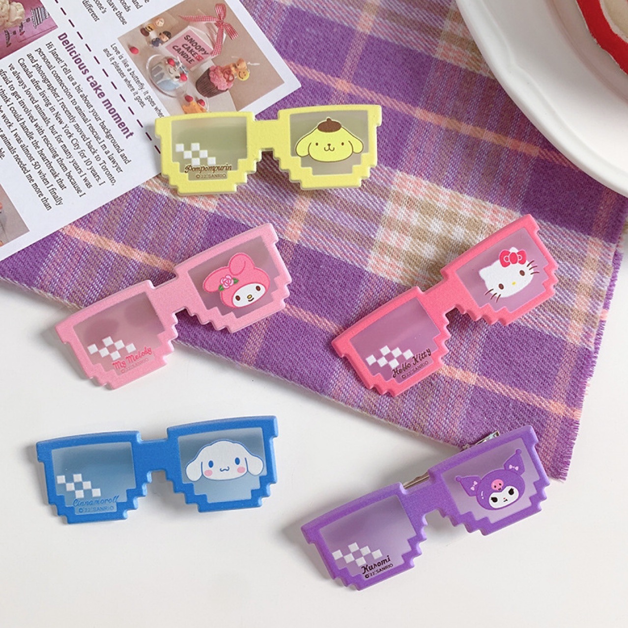 可爱卡通三丽鸥眼镜发夹KT美乐蒂ins少女心韩国情侣刘海边夹发饰