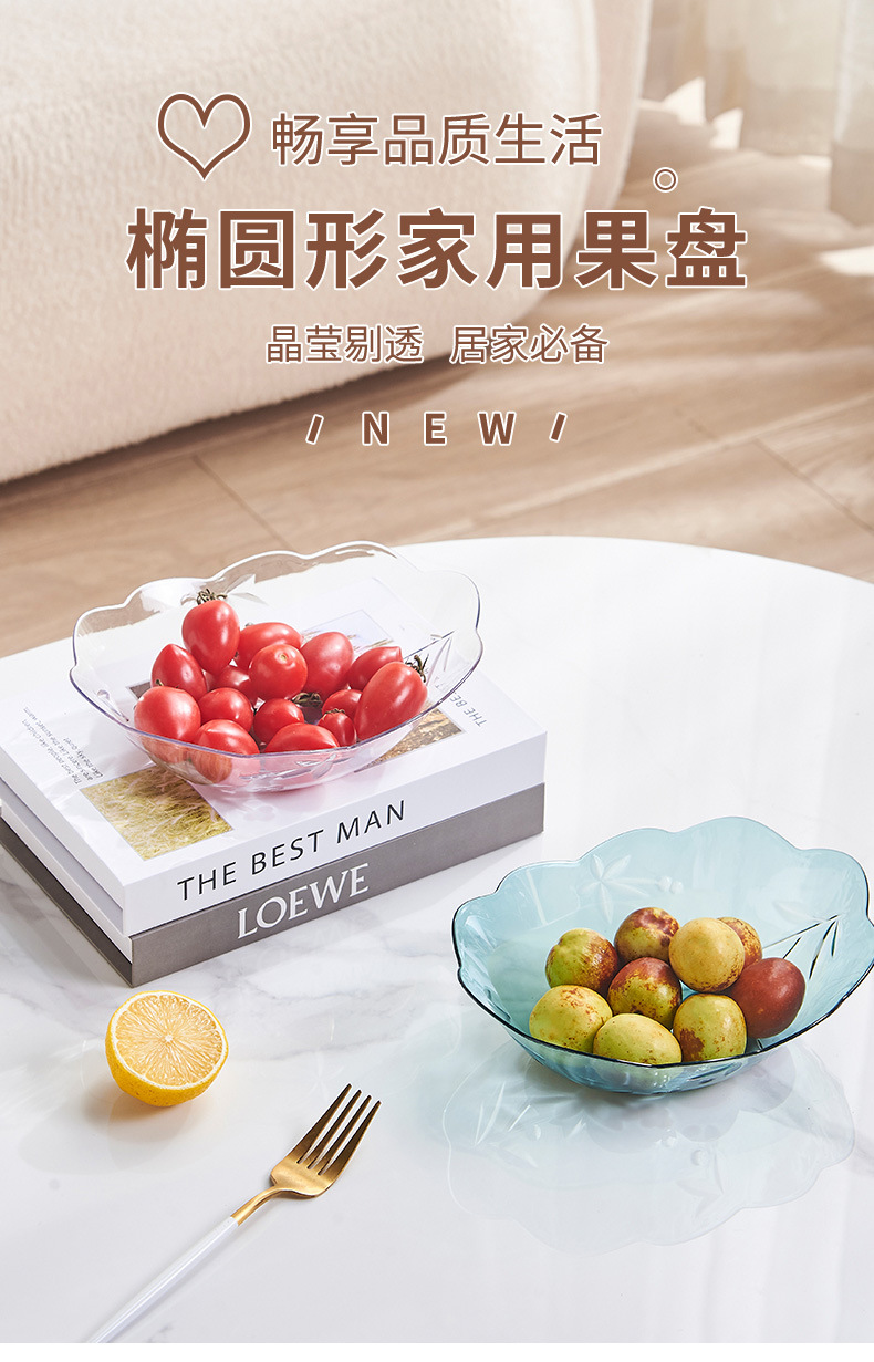 轻奢水果盘PET透明塑料ins风家用零食盘金边花型果篮KTV果盘批发