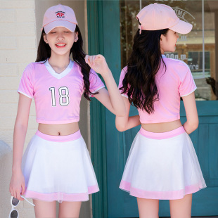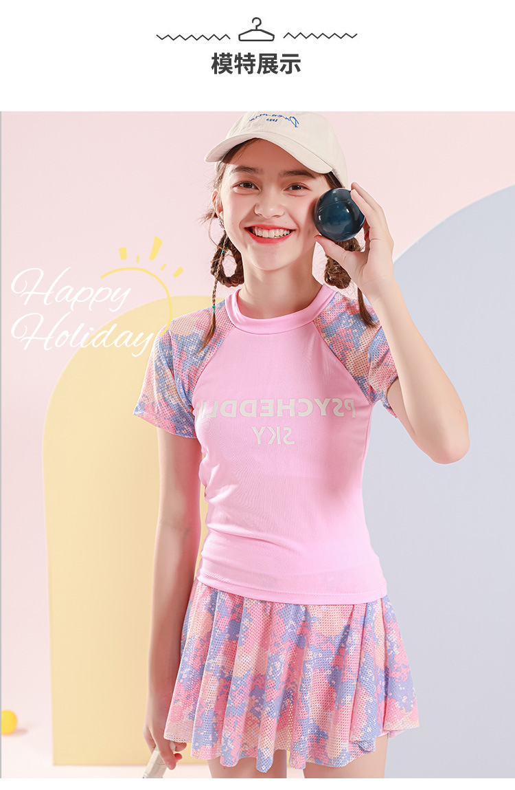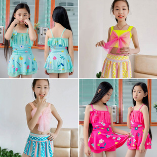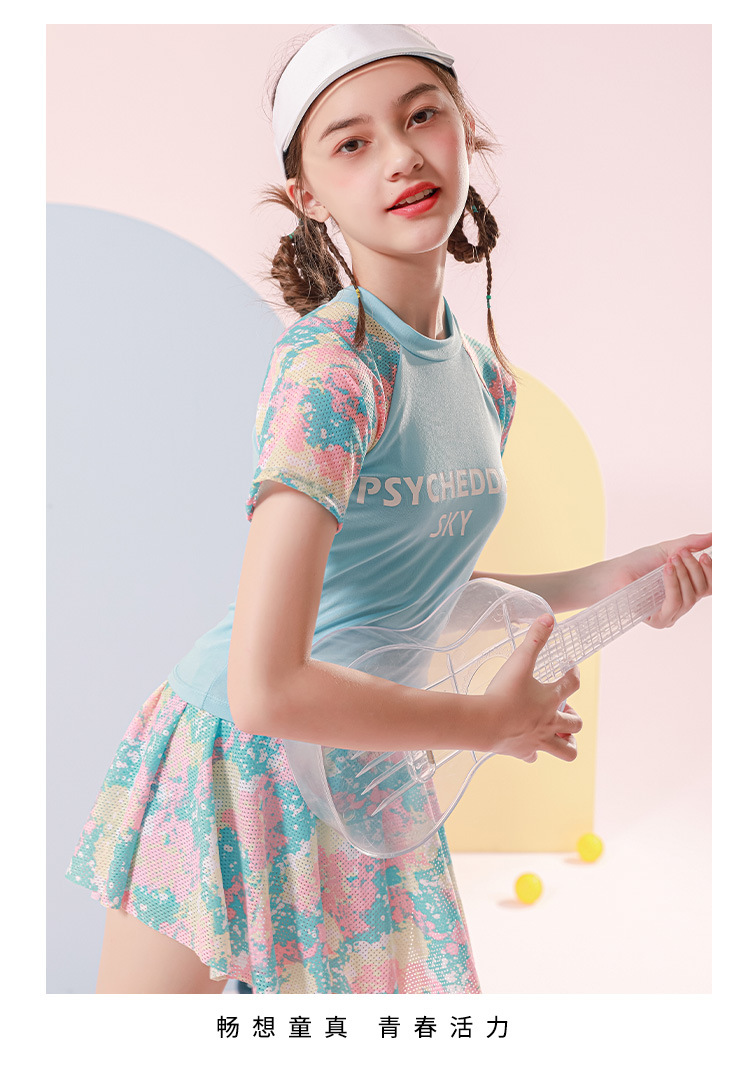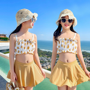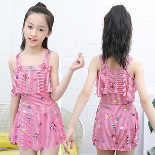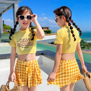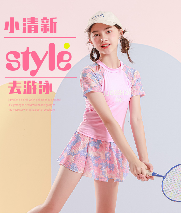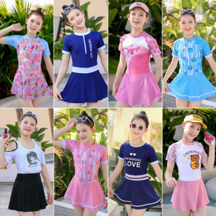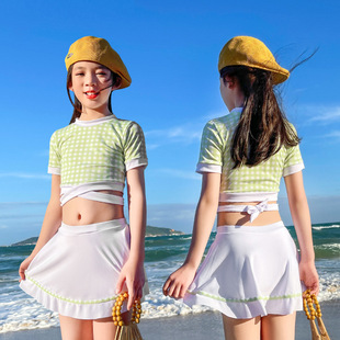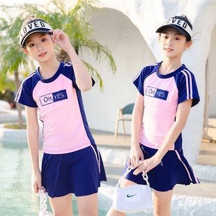 儿童游泳衣女2022年新款洋气中大童9-14岁运动分体裙式女童游泳衣