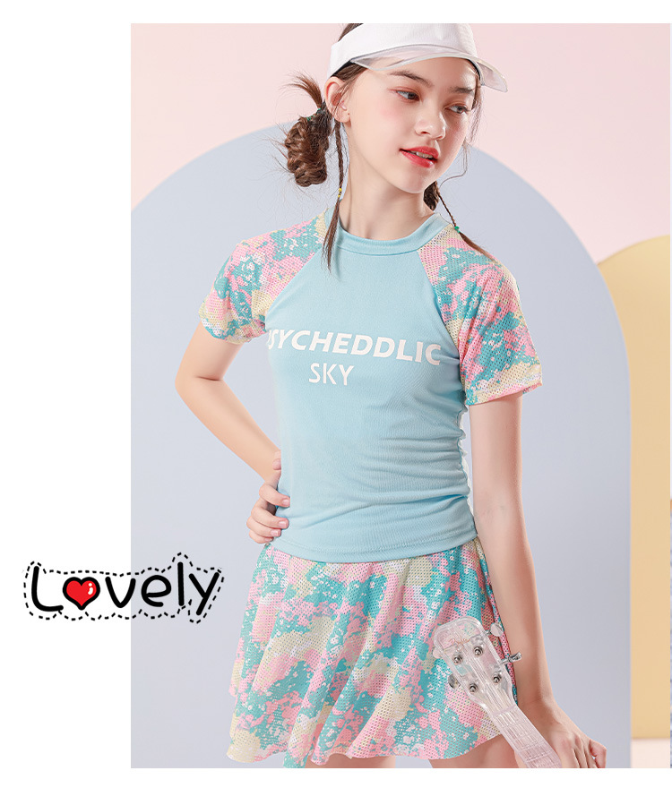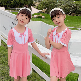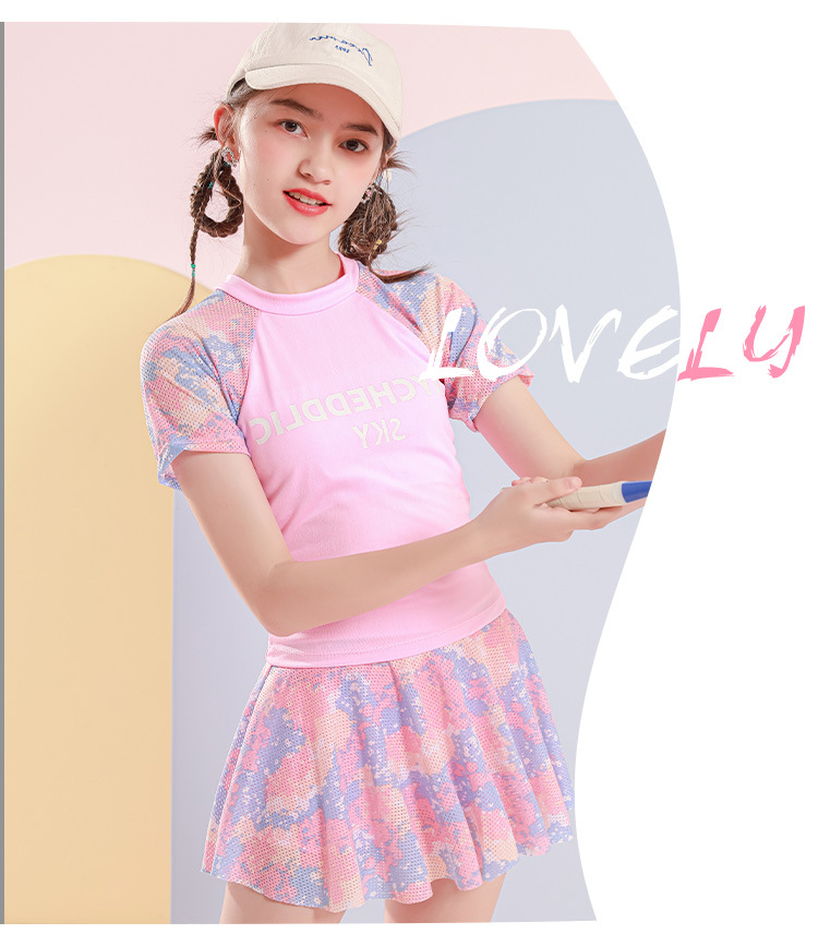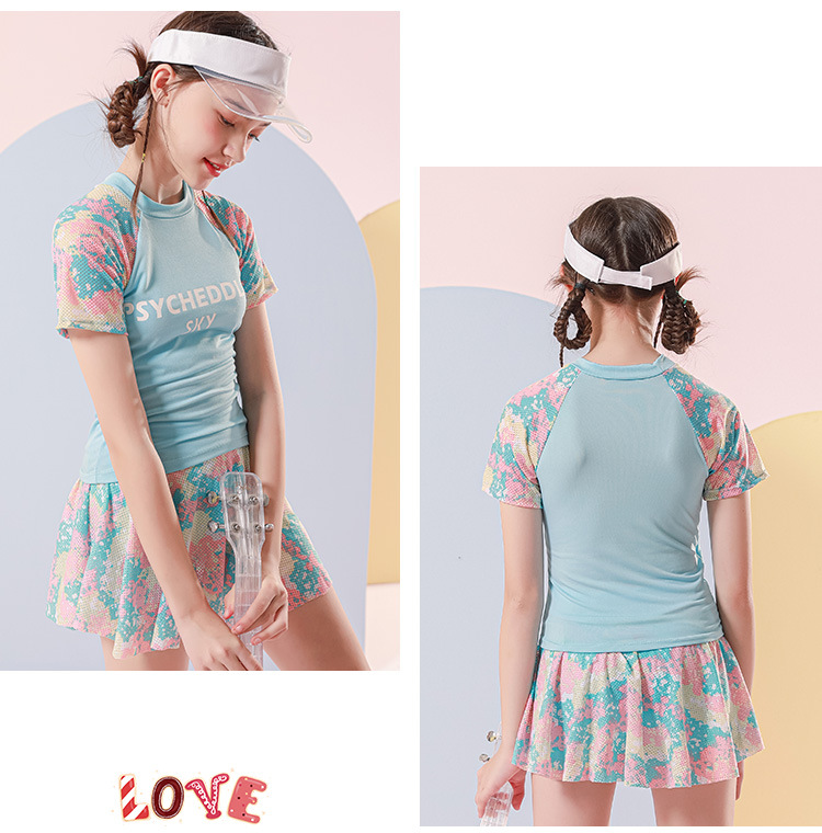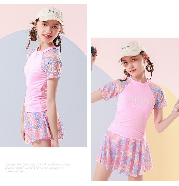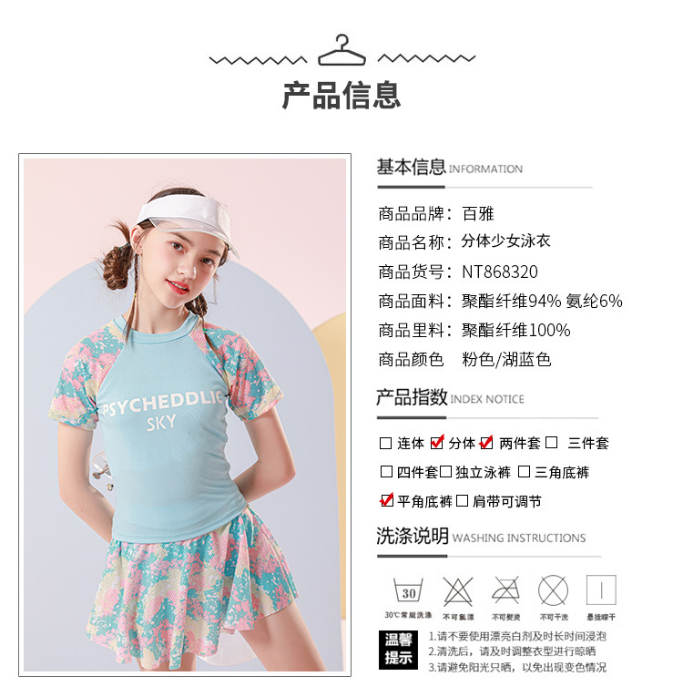 儿童游泳衣女2022年新款洋气中大童9-14岁运动分体裙式女童游泳衣