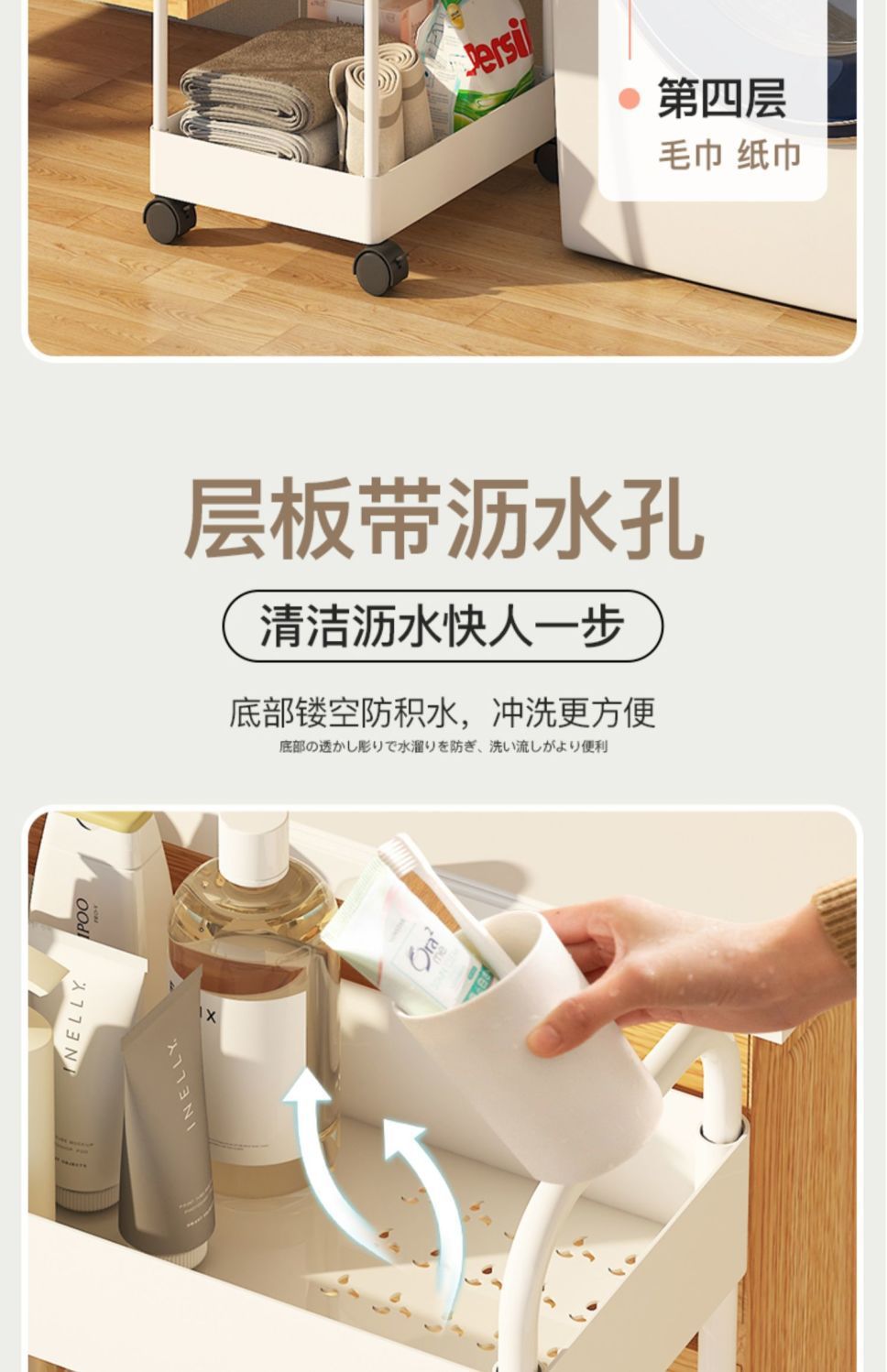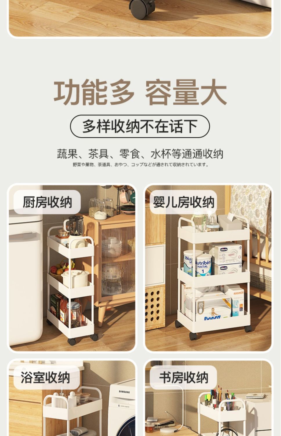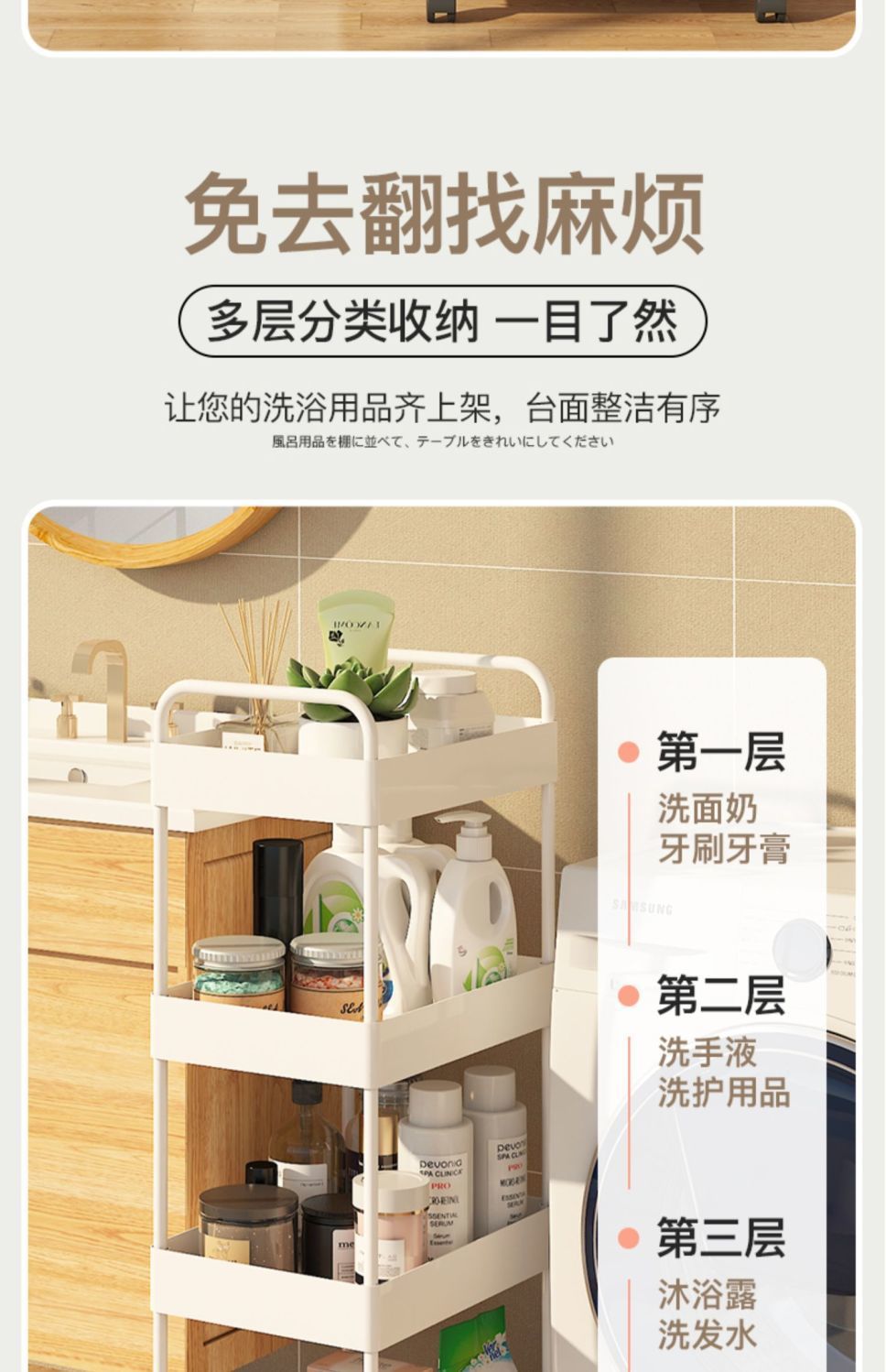 厨房夹缝置物架小推车冰箱收纳架可移动收纳小推车卫生间多层货架