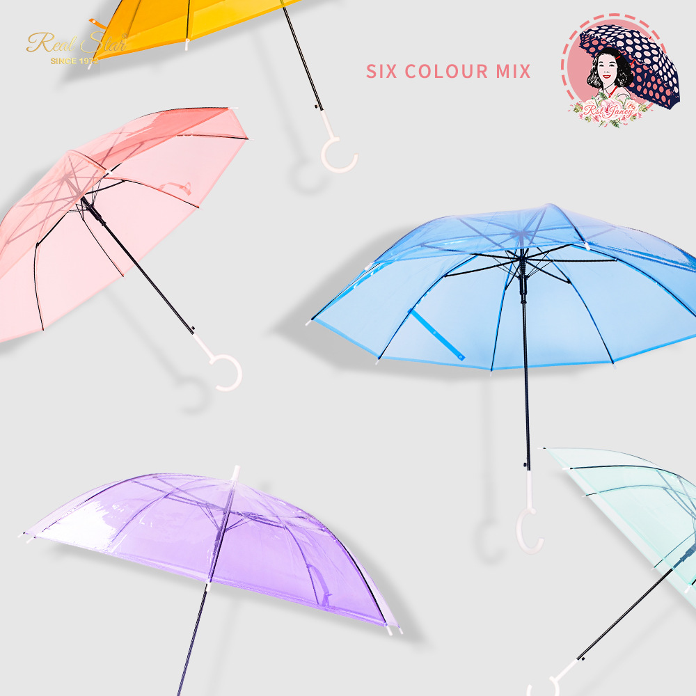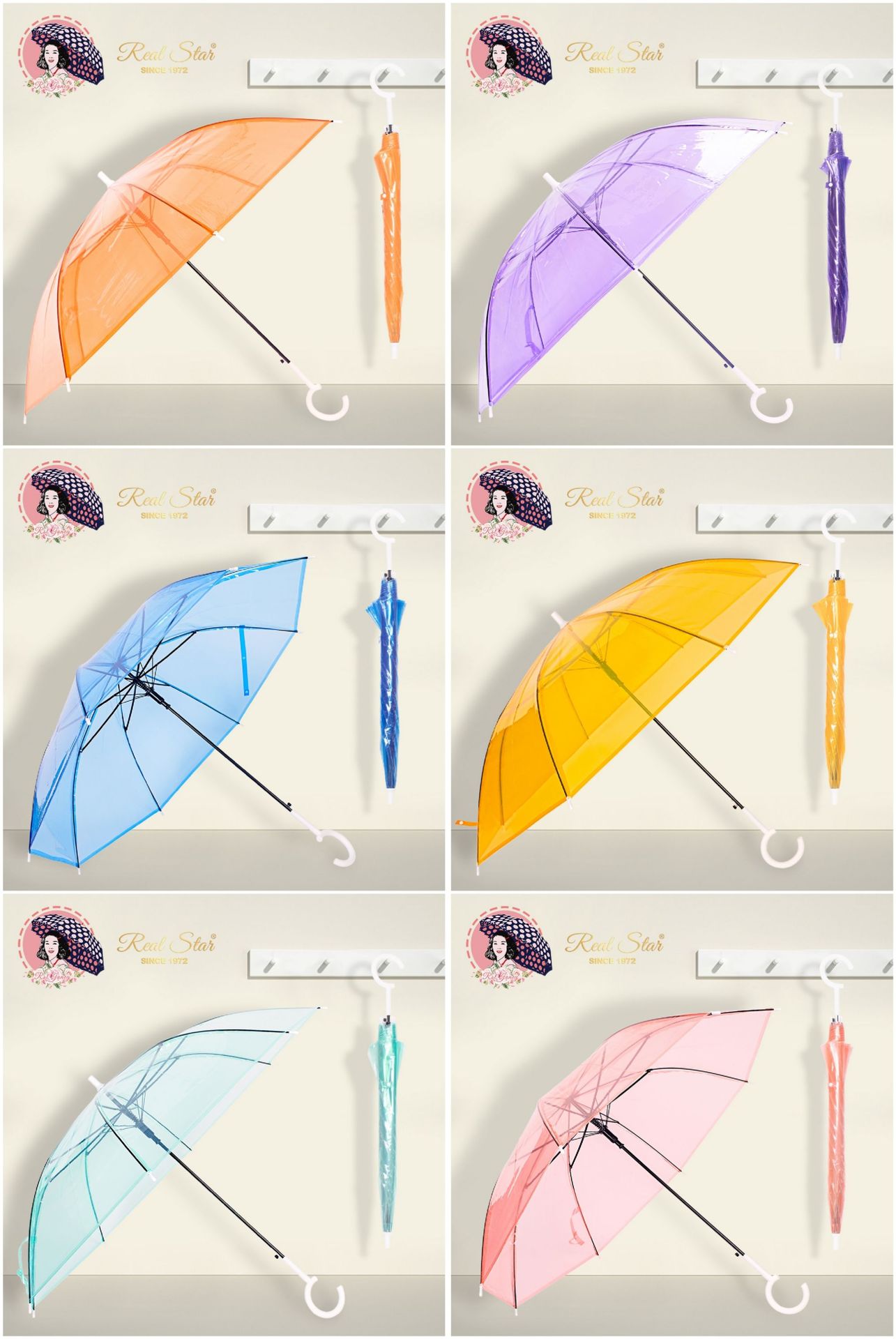 星宝伞RST透明伞日韩带颜色的透明雨伞C型手柄22寸伞现货批发