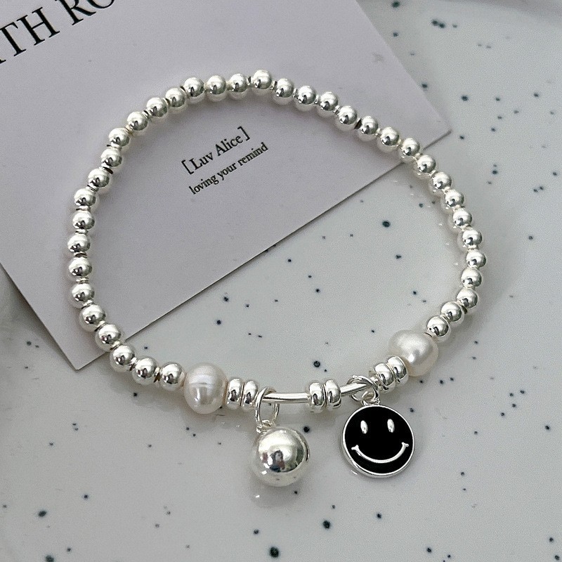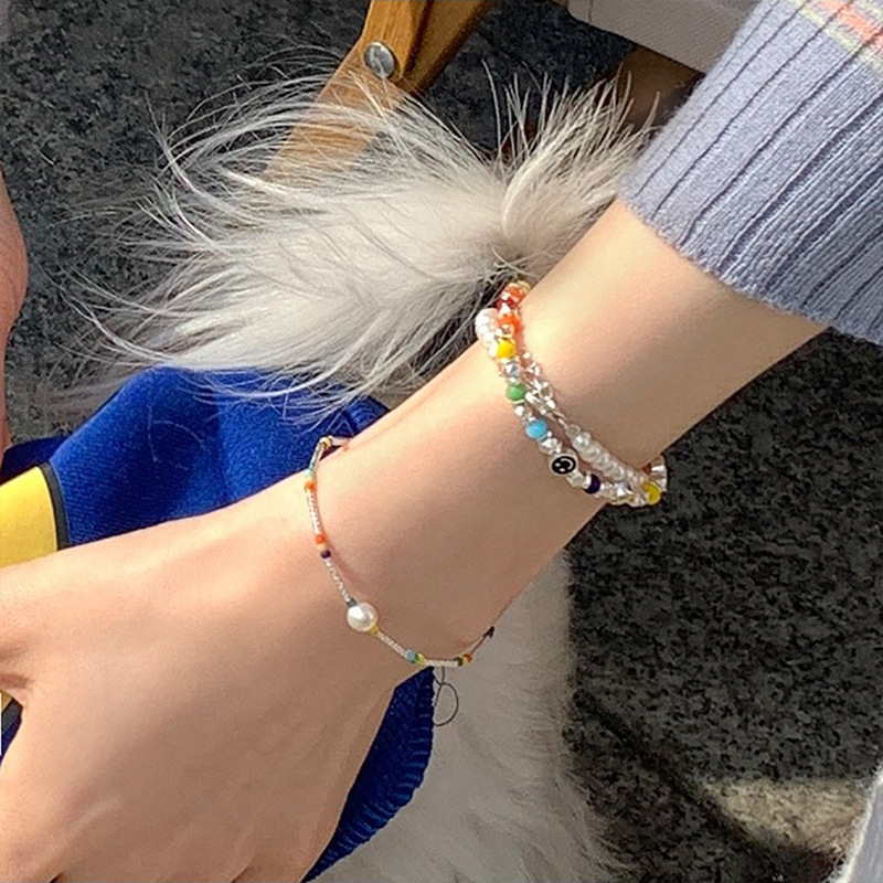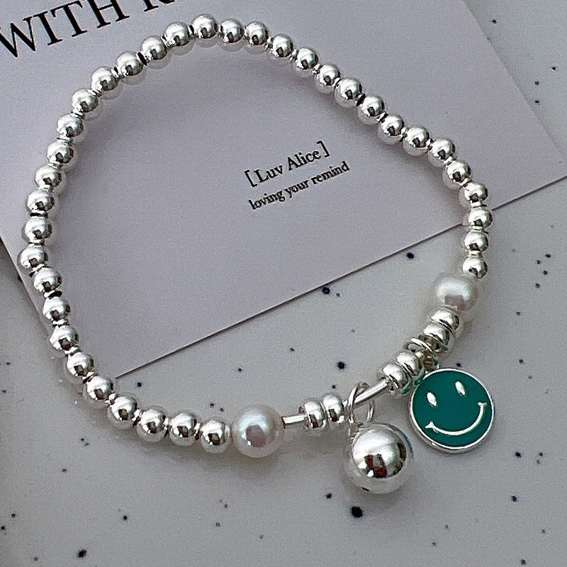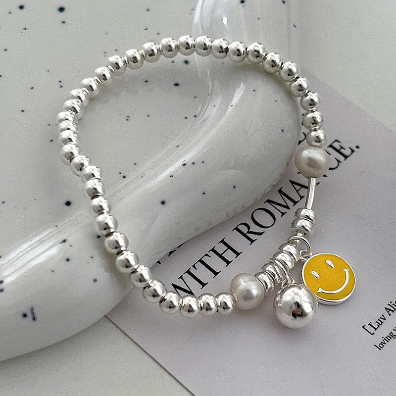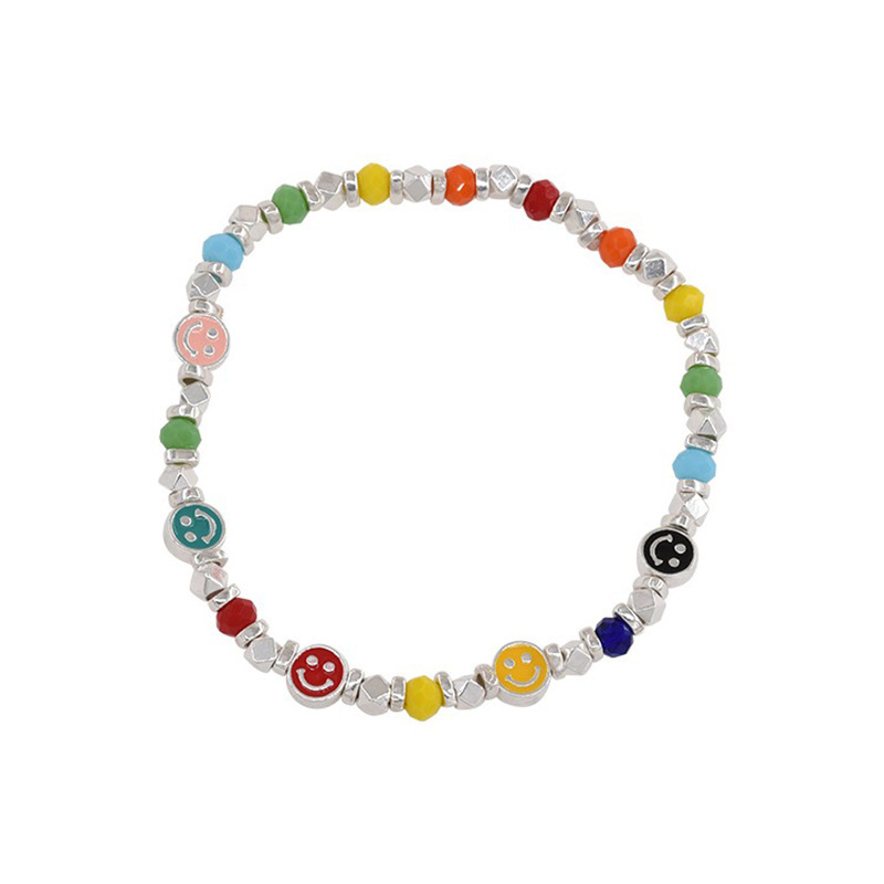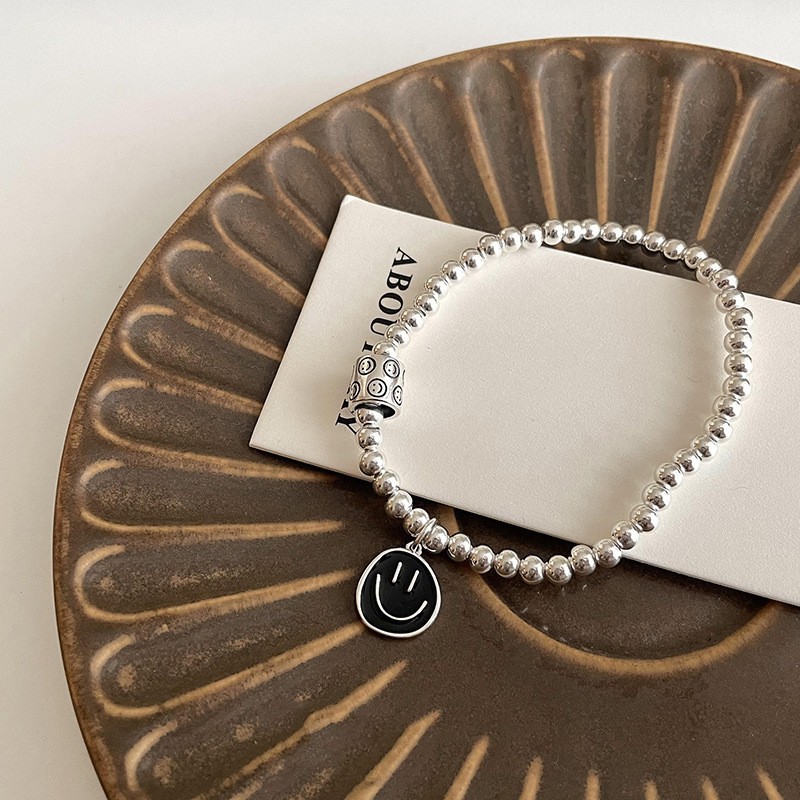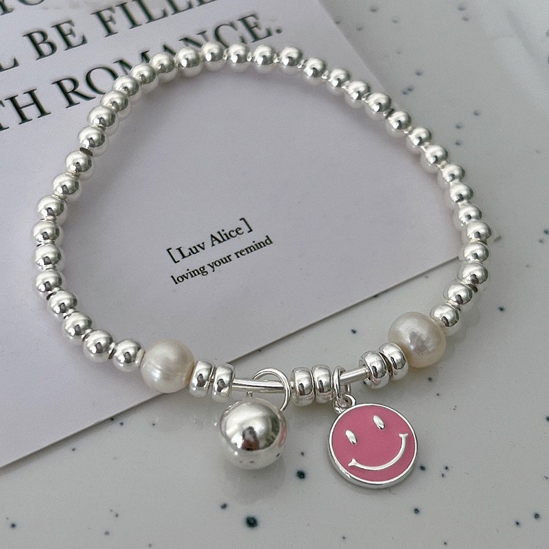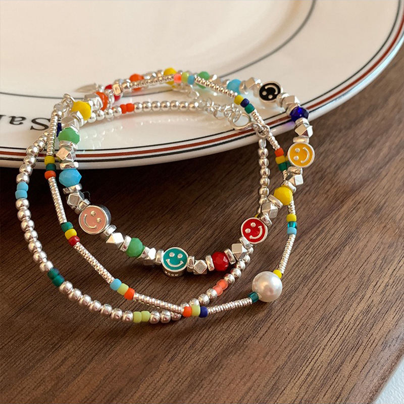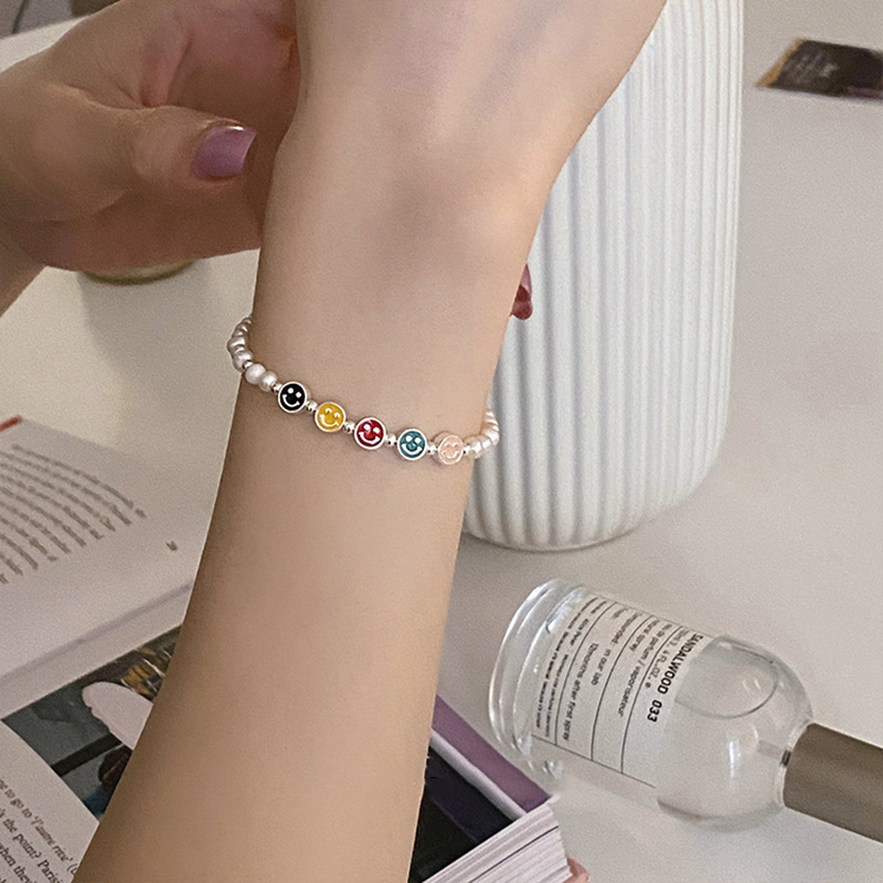 韩式韩版高级感小众感彩色串珠笑脸s925纯银手链2023年新款手饰女