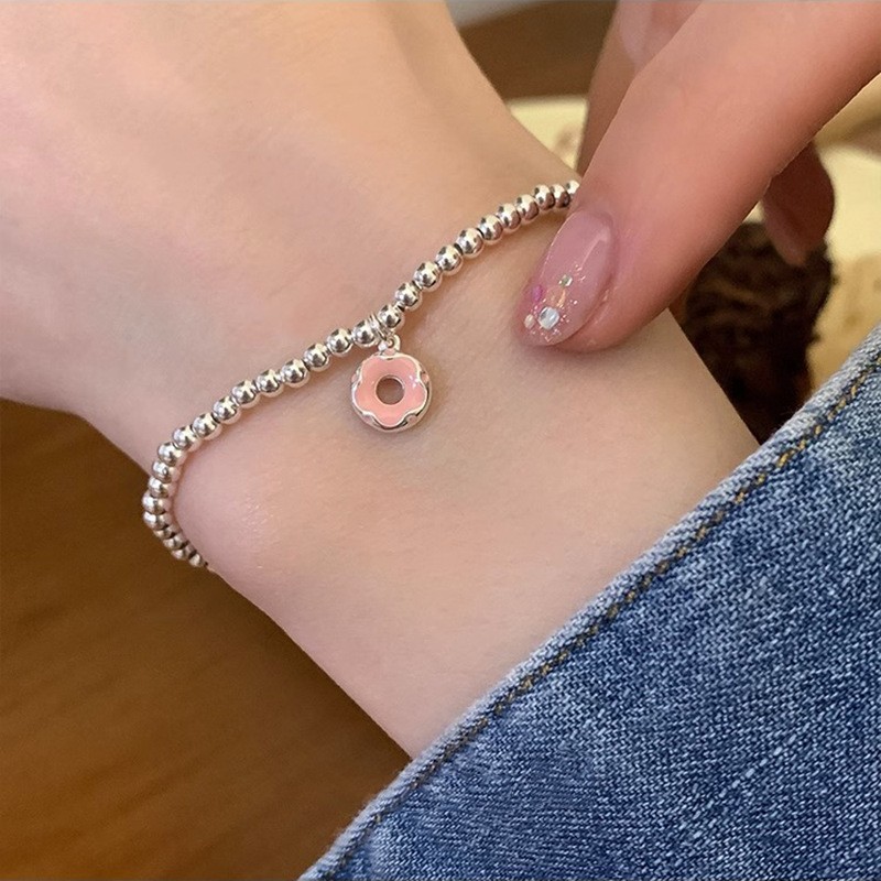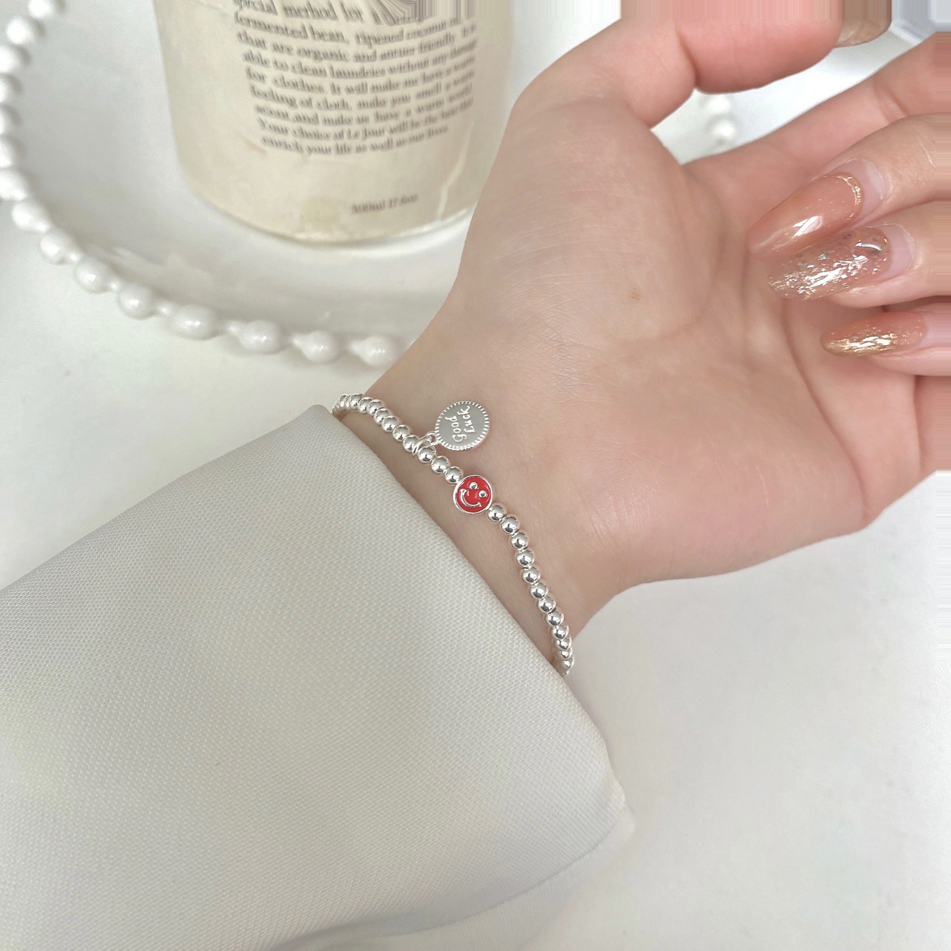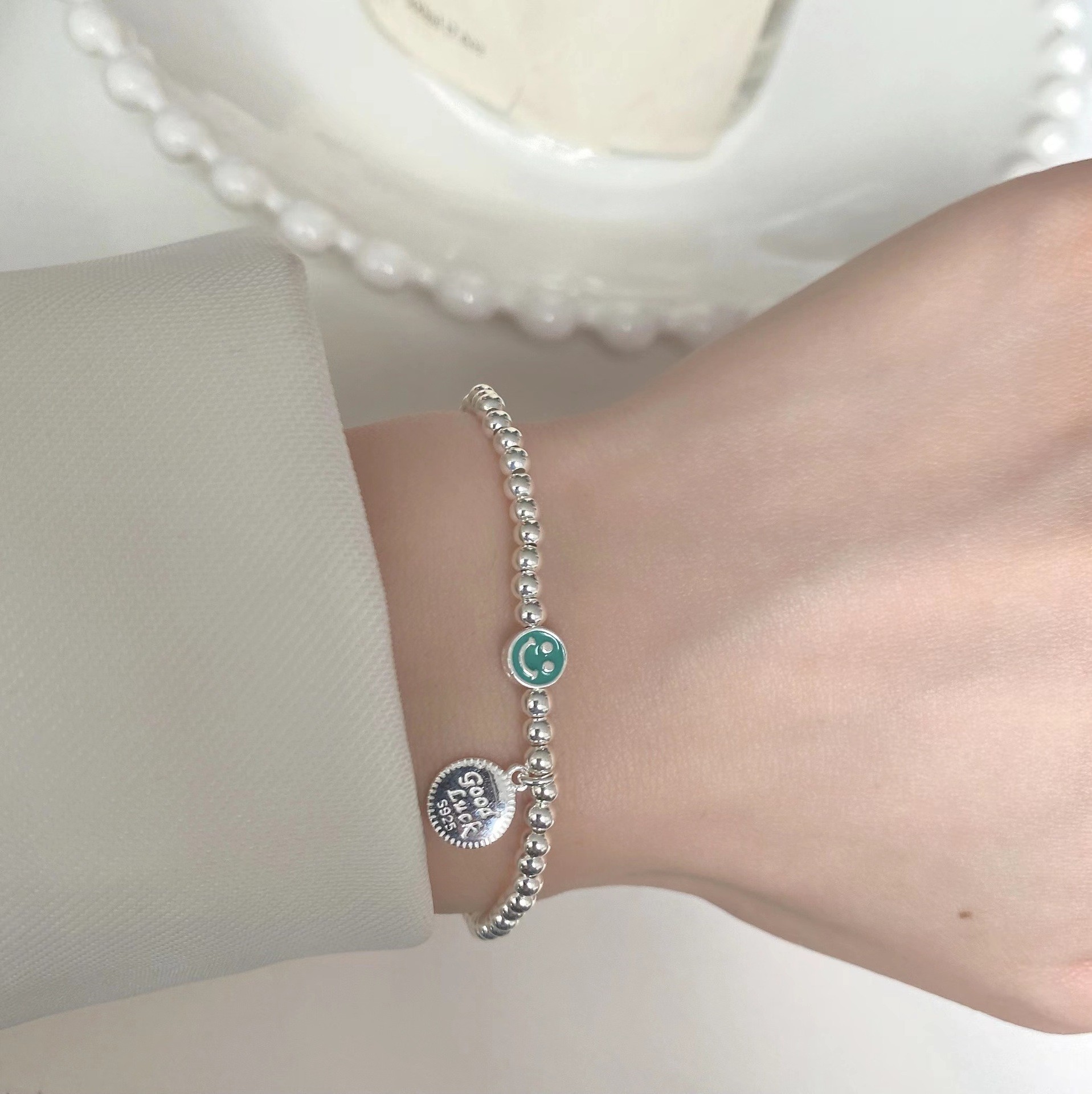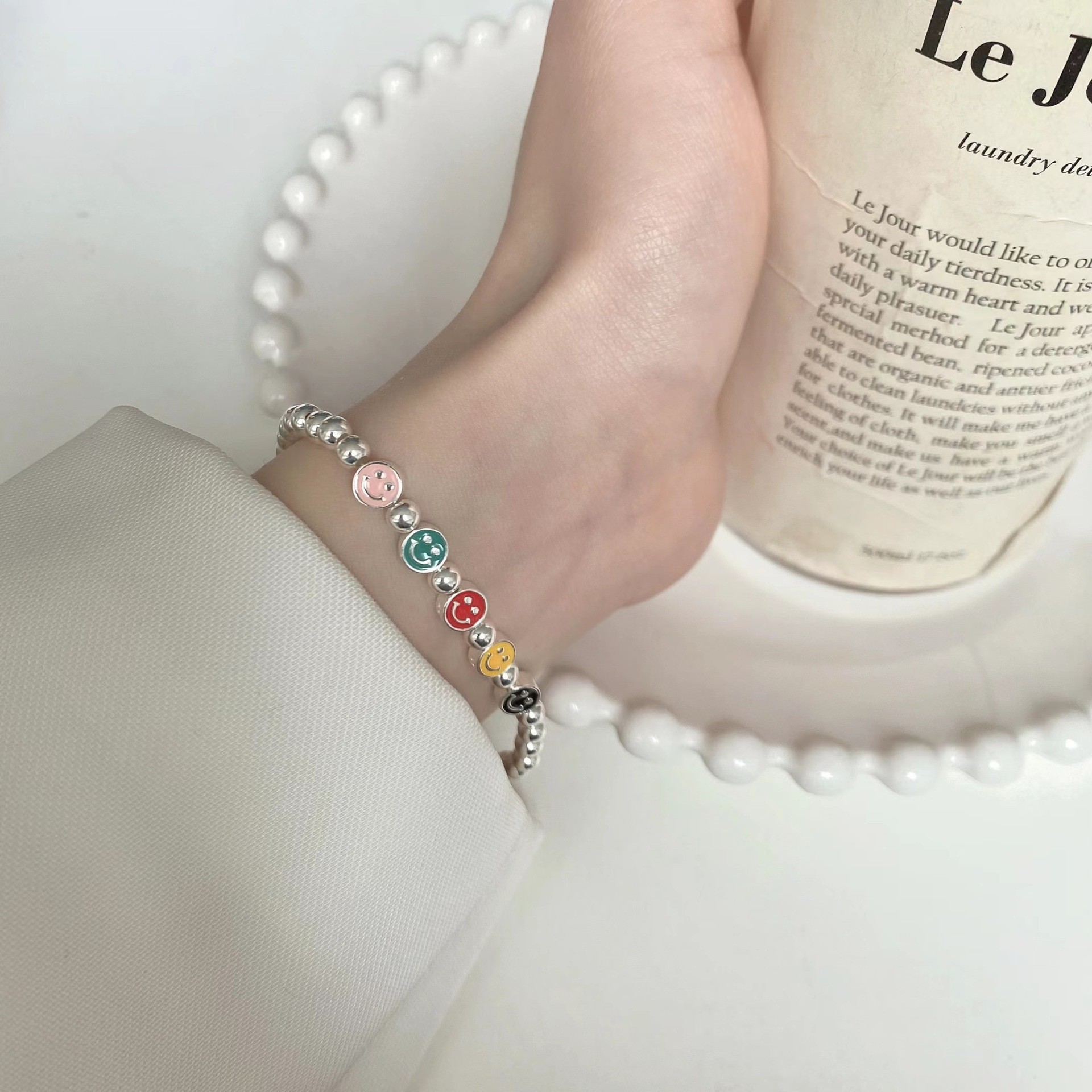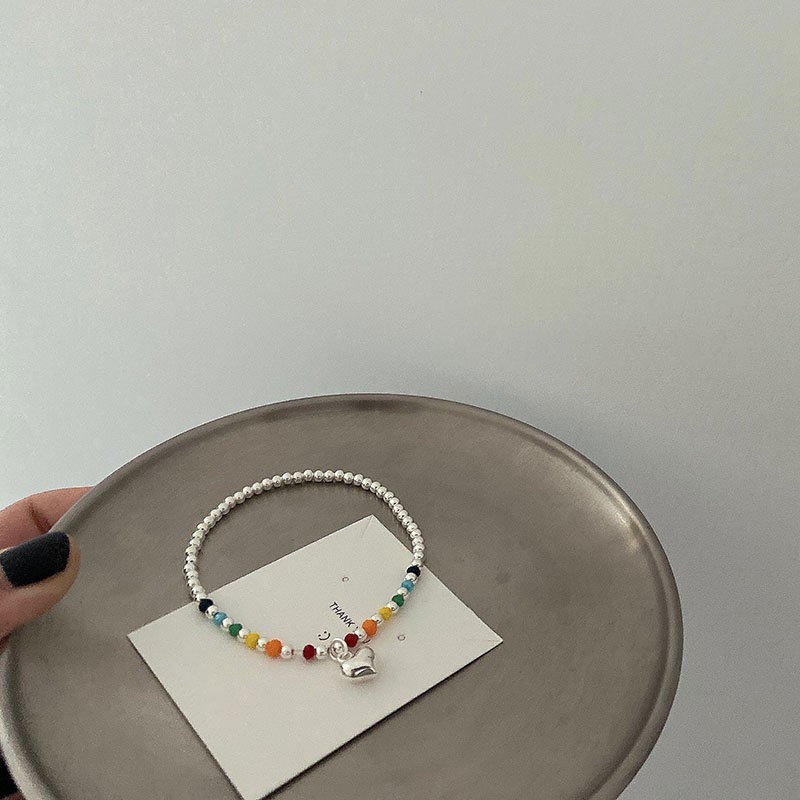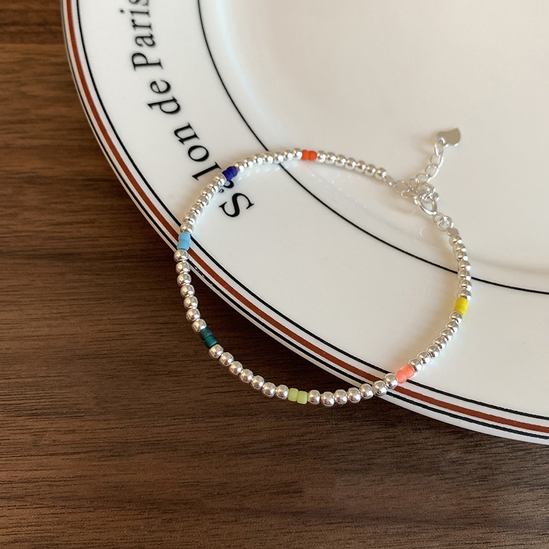韩式韩版高级感小众感彩色串珠笑脸s925纯银手链2023年新款手饰女