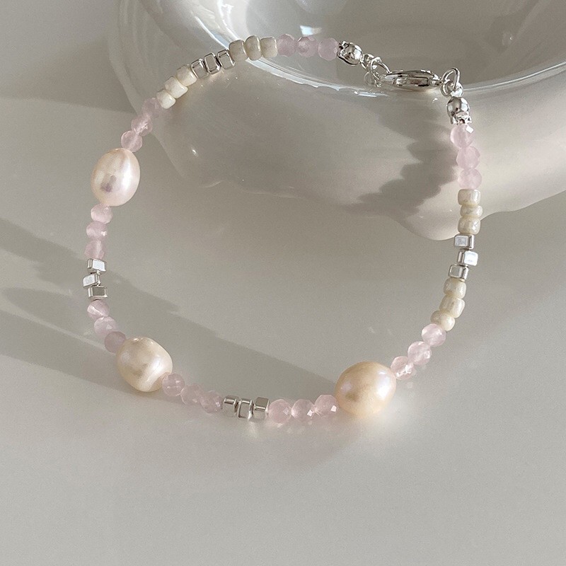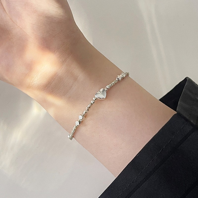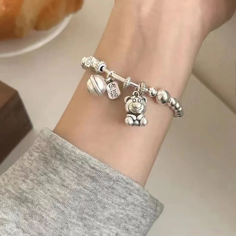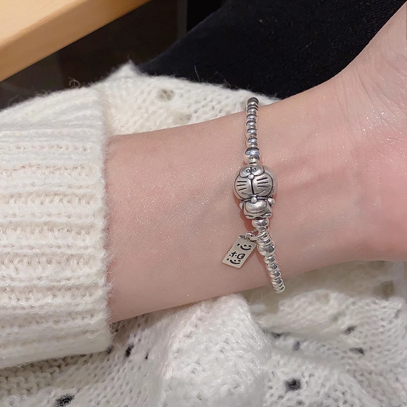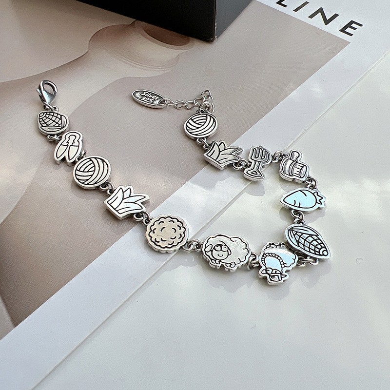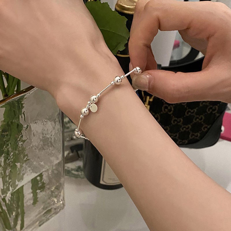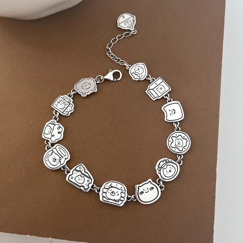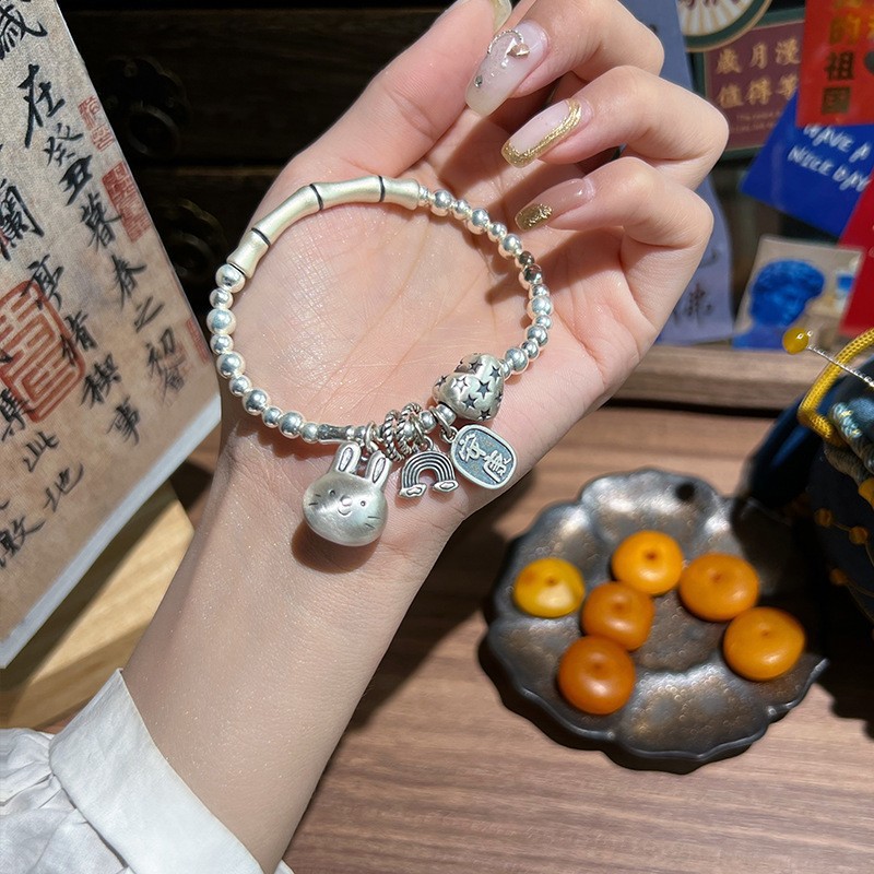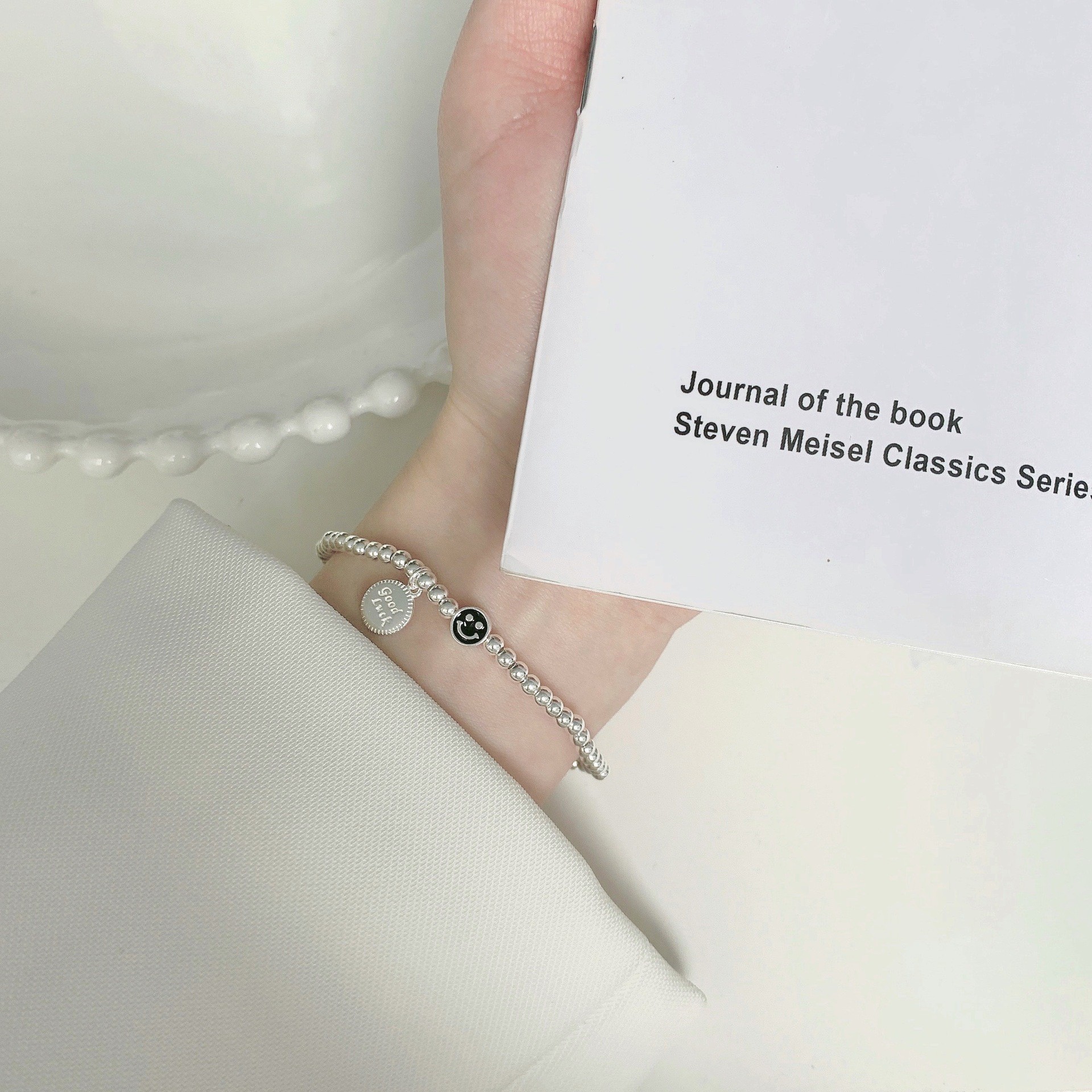 韩式韩版高级感小众感彩色串珠笑脸s925纯银手链2023年新款手饰女