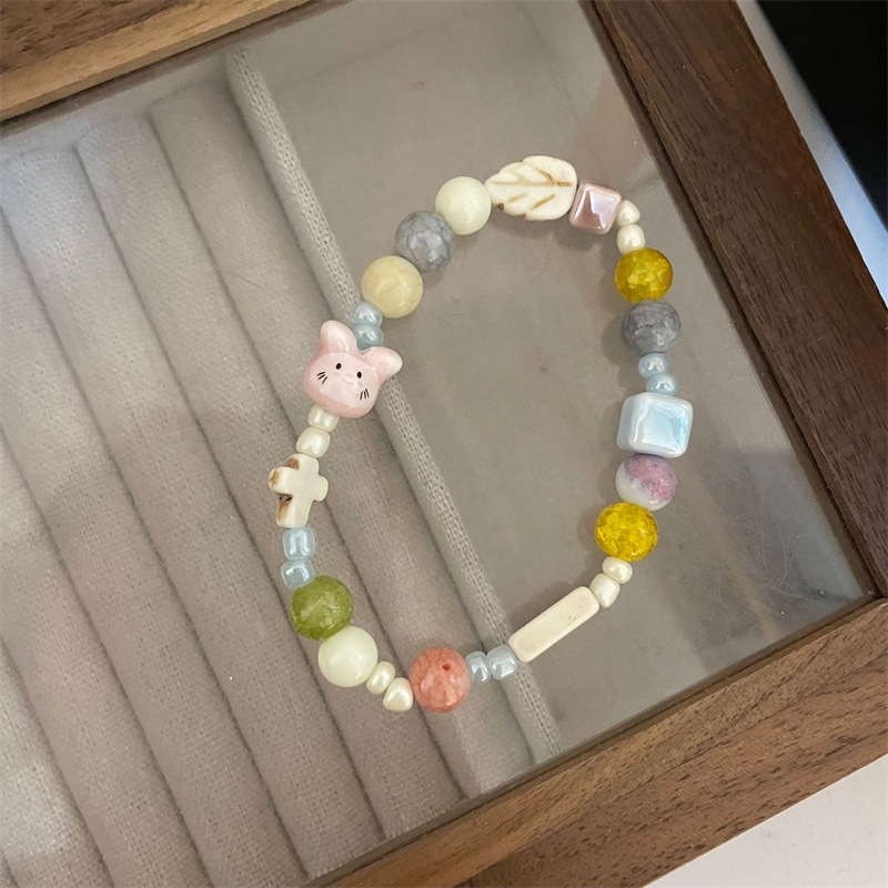 甜美清新海星小狗串珠手链女气质小众手串可爱卡通猫花朵手链批发