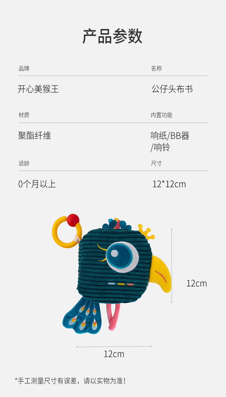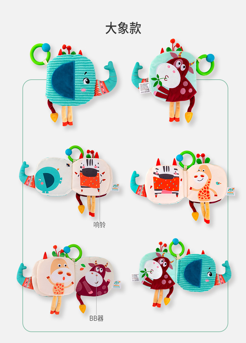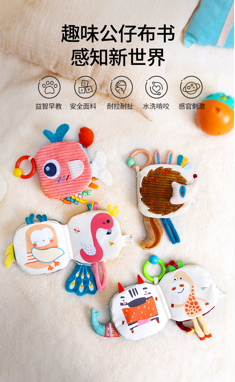 Happy monkey婴儿尾巴布书6月可啃咬撕不烂立体认知益智宝宝布书