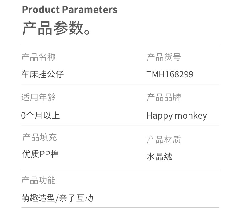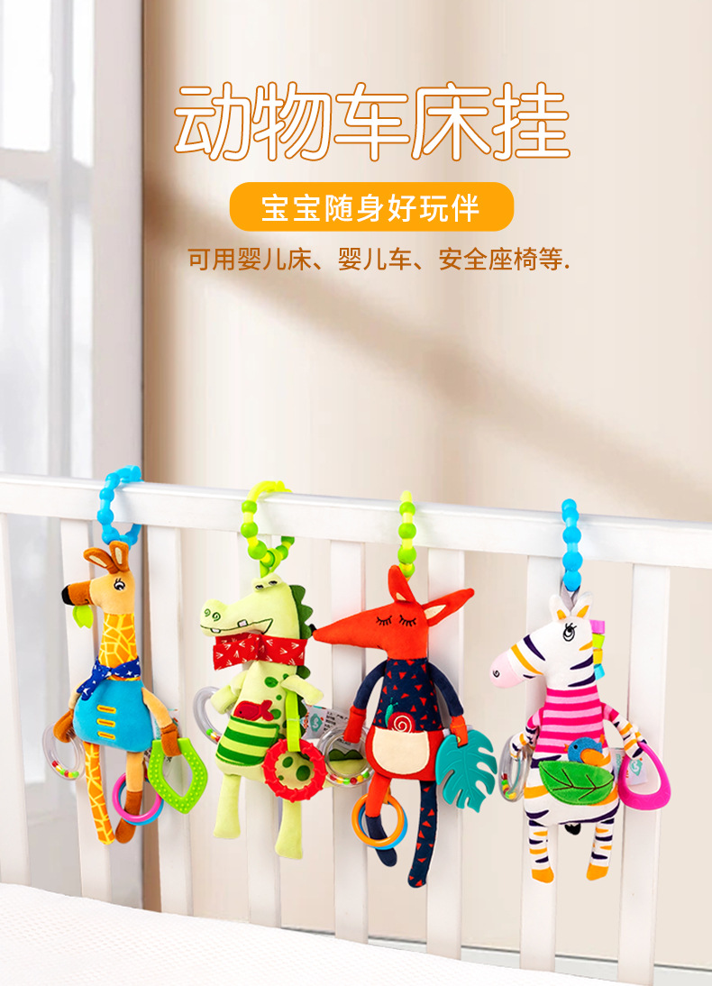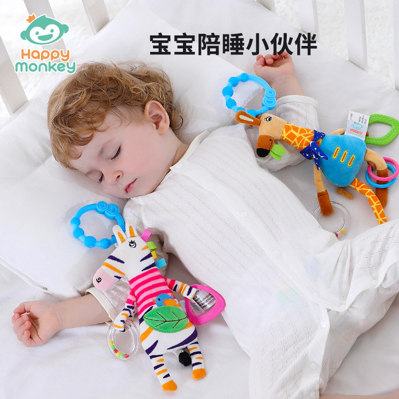 Happy monkey婴儿玩具车挂床挂咬咬乐安抚玩具训练宝宝抓握能力