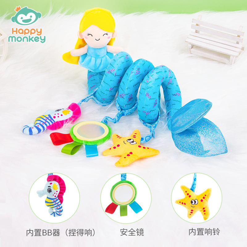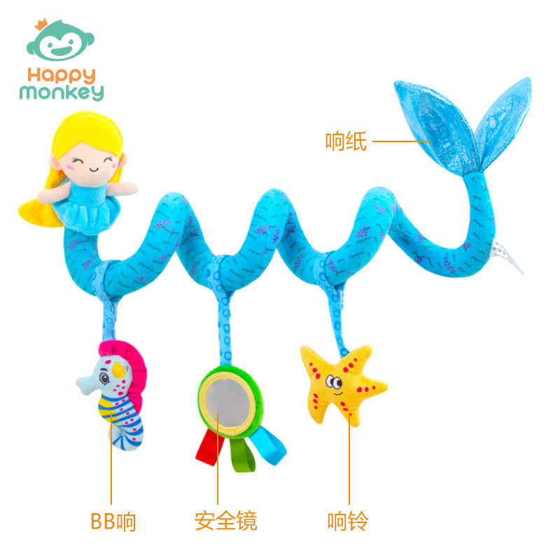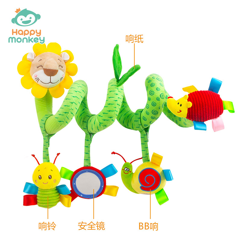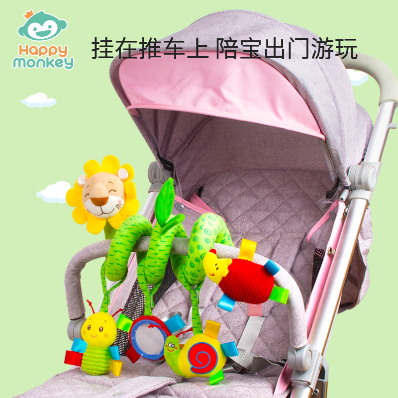 Happy monkey婴儿玩具卡通动物挂饰婴儿车挂件宝宝安抚玩具毛绒