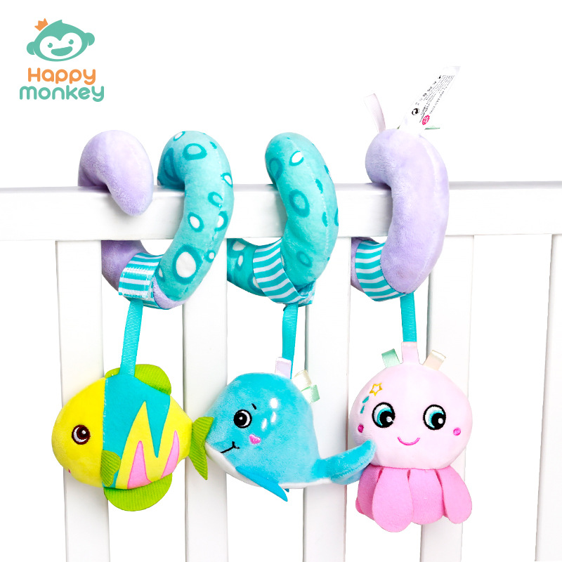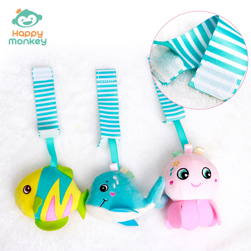 Happy monkey婴儿床挂饰婴儿车挂件摇铃遛娃神器安抚宝宝玩具厂家