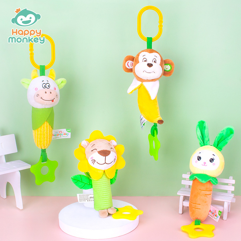 Happy monkey婴儿玩具卡通风铃摇铃床铃推车挂件安抚宝宝玩具
