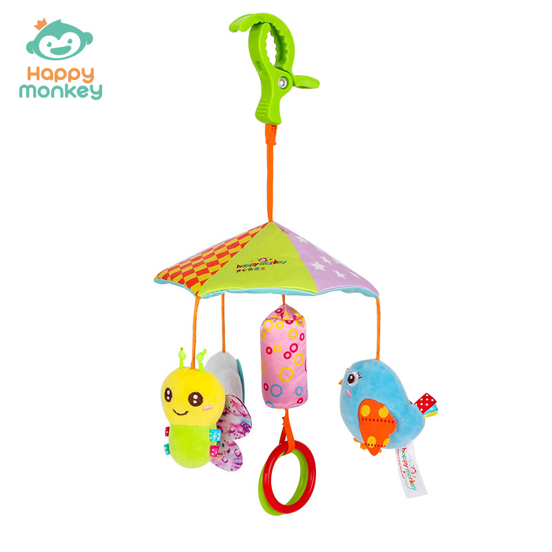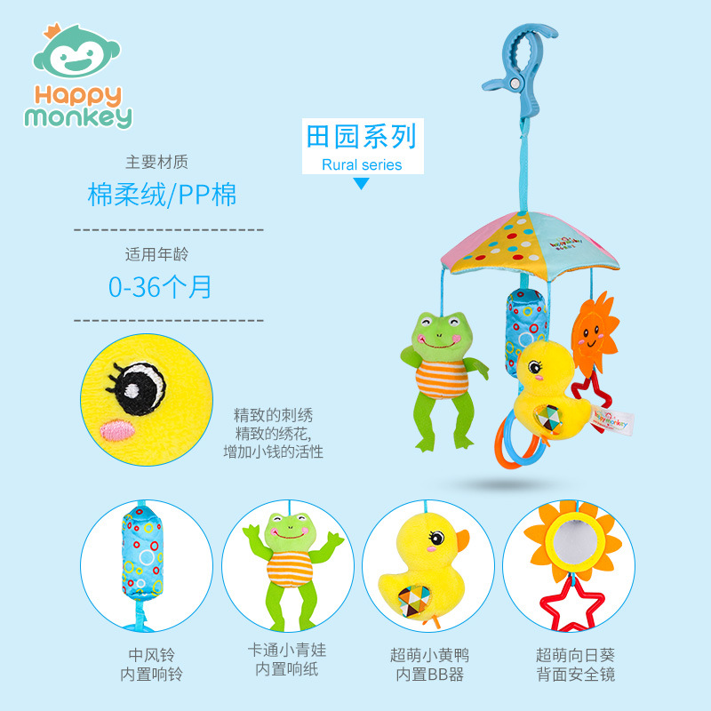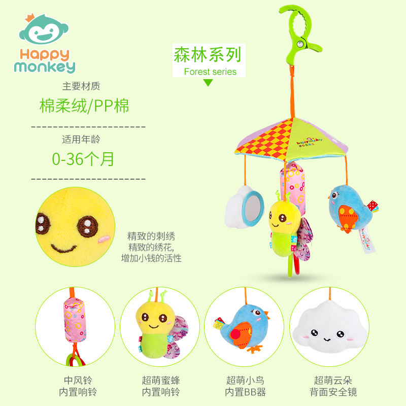 Happy monkey婴儿玩具0-1岁可旋转动物床铃婴儿车挂件摇铃玩具