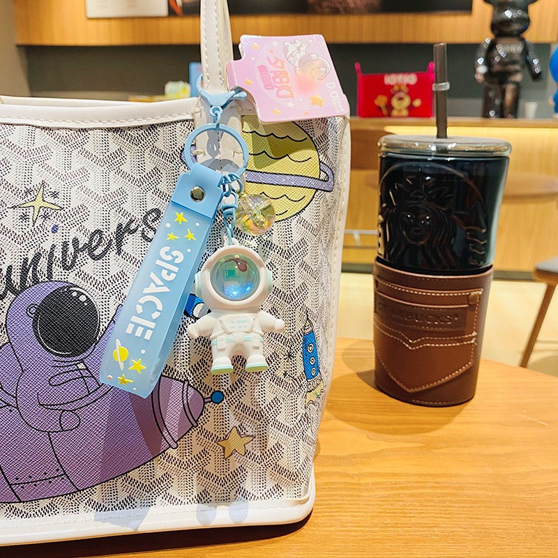 正版创意宇航员夕阳灯钥匙扣女生拍照灯光神器高奢太空人包钥匙链