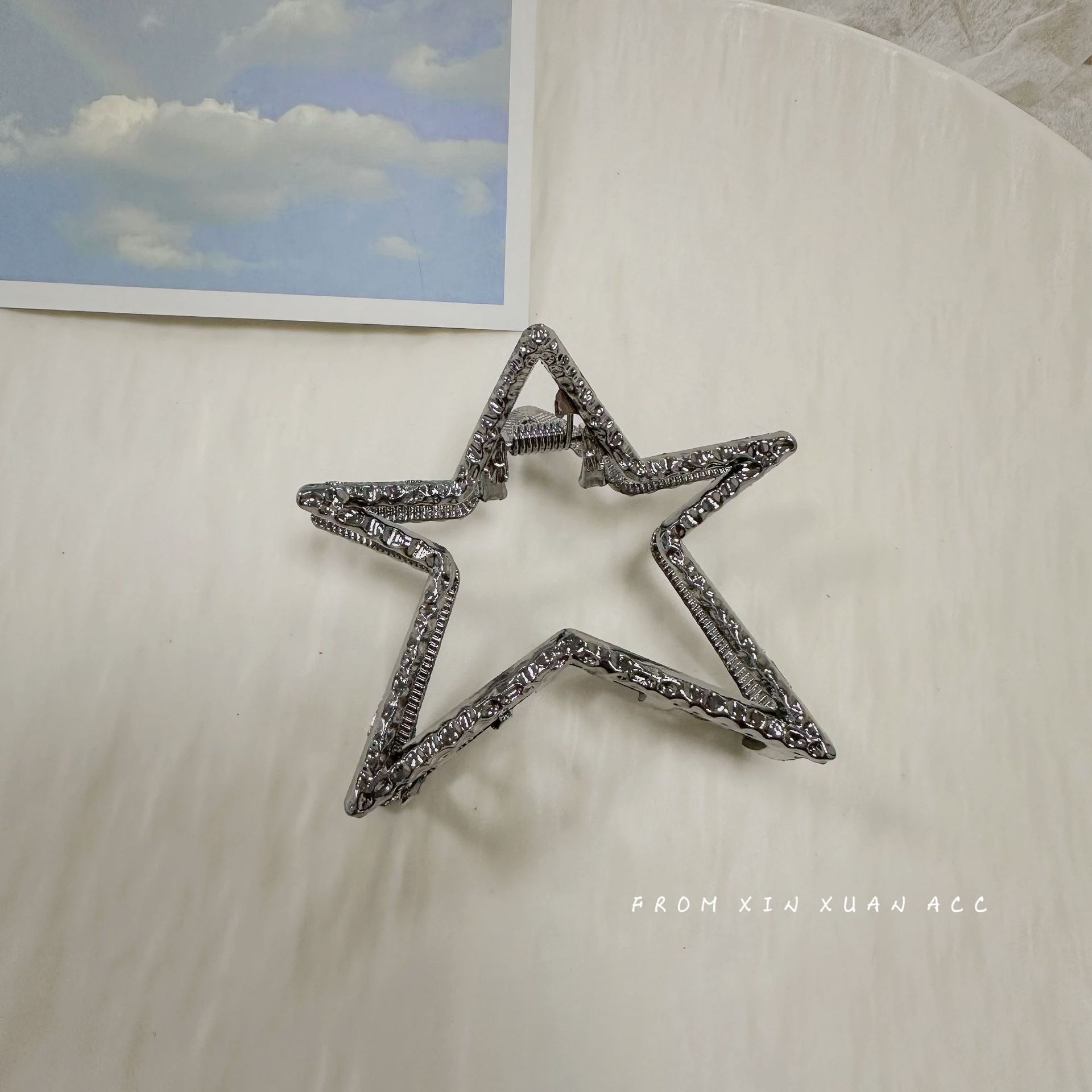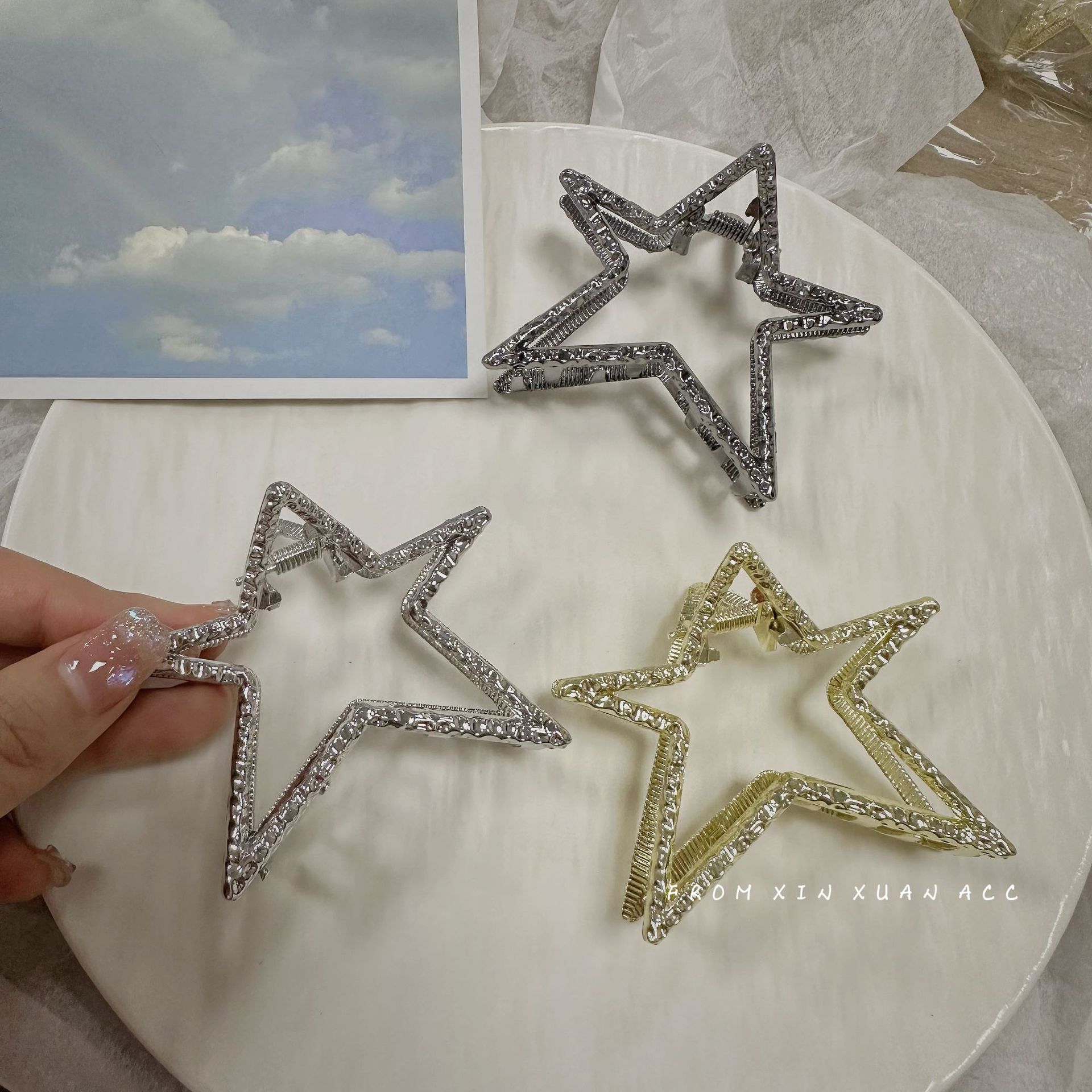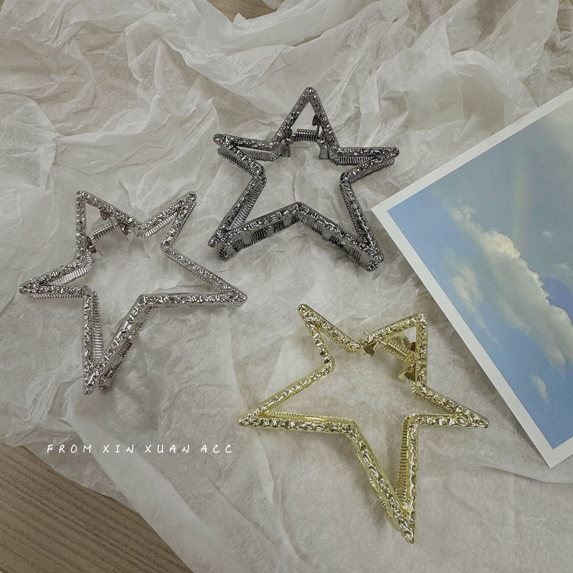 韩国简约五角星抓夹女夏季辣妹发量少发饰后脑勺半扎发鲨鱼夹发夹