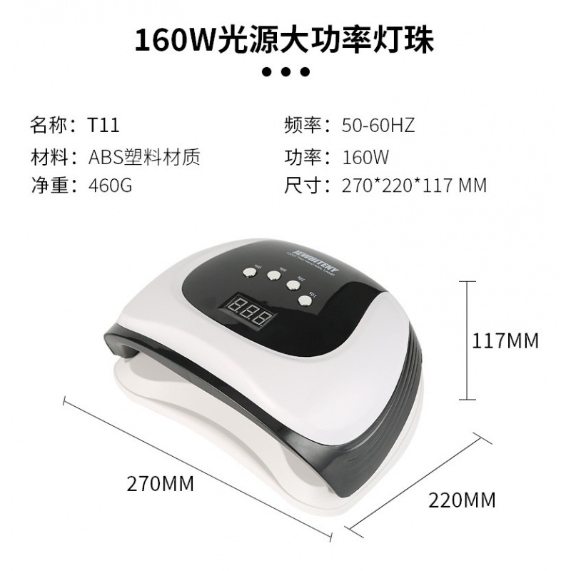 防黑手T11指甲胶美甲灯 跨境160W智能感应指甲油速干美甲光疗机