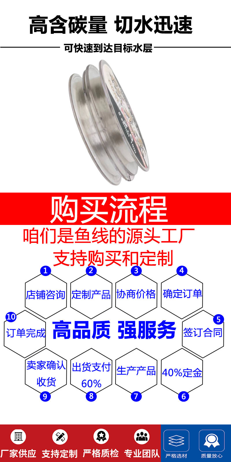 义乌鱼具碳素线子线路亚湖库远投筏钓矶钓专用线工厂批发软碳鱼线
