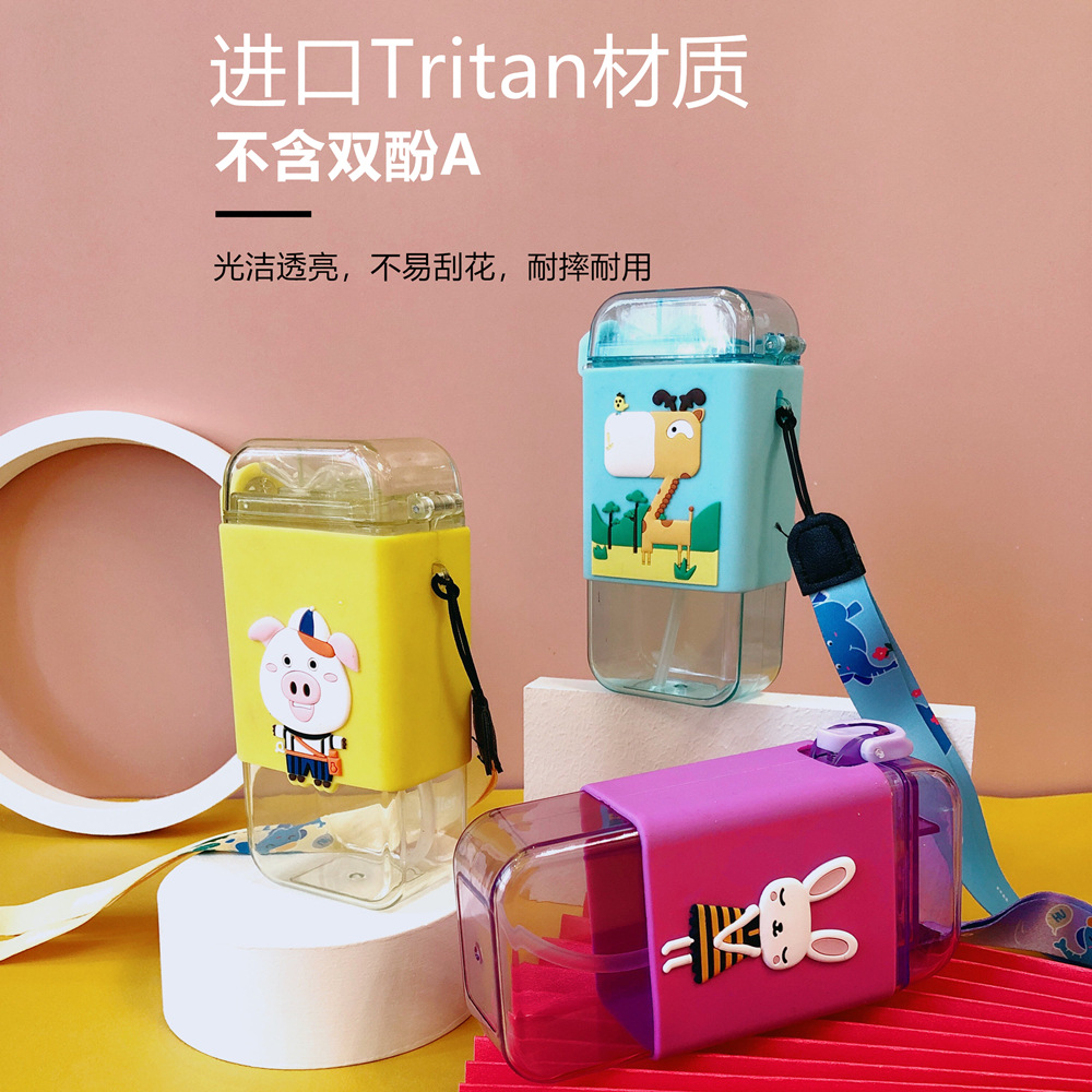 儿童水壶雪糕杯方形儿童吸管杯外出便携运动水壶运动水杯儿童宝宝