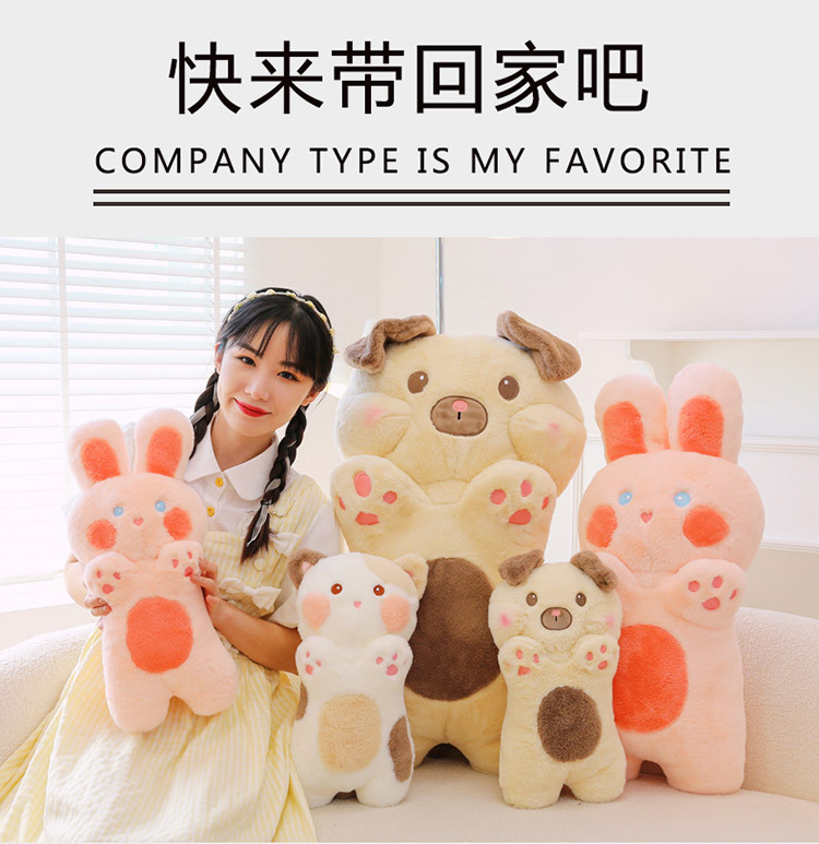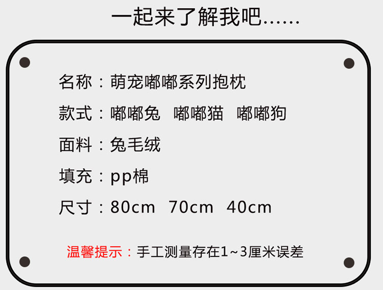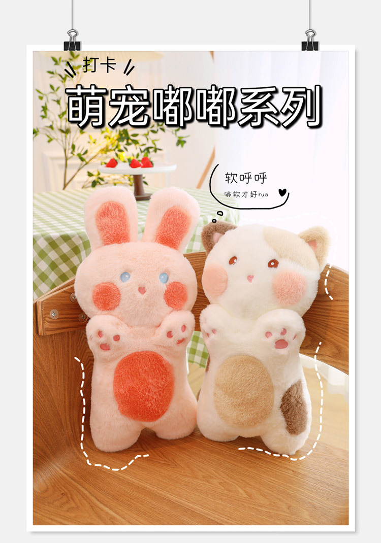 萌宠嘟嘟系列毛绒玩具可爱狗狗卡通兔子公仔猫咪长条抱枕礼物