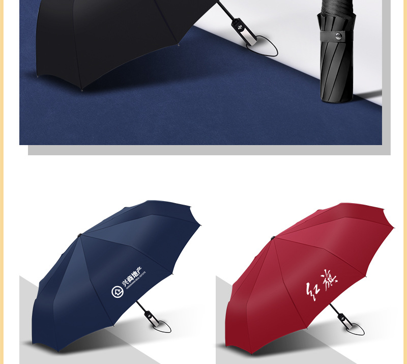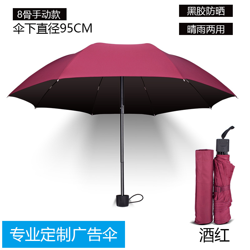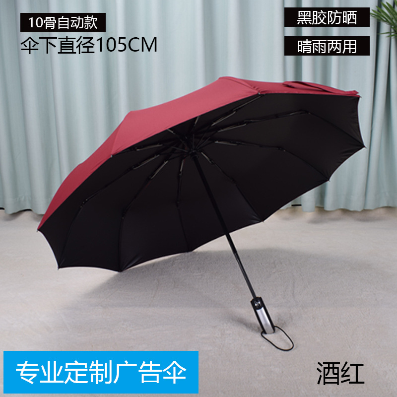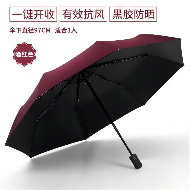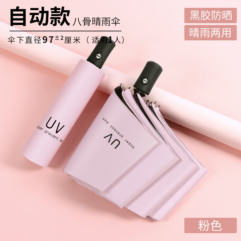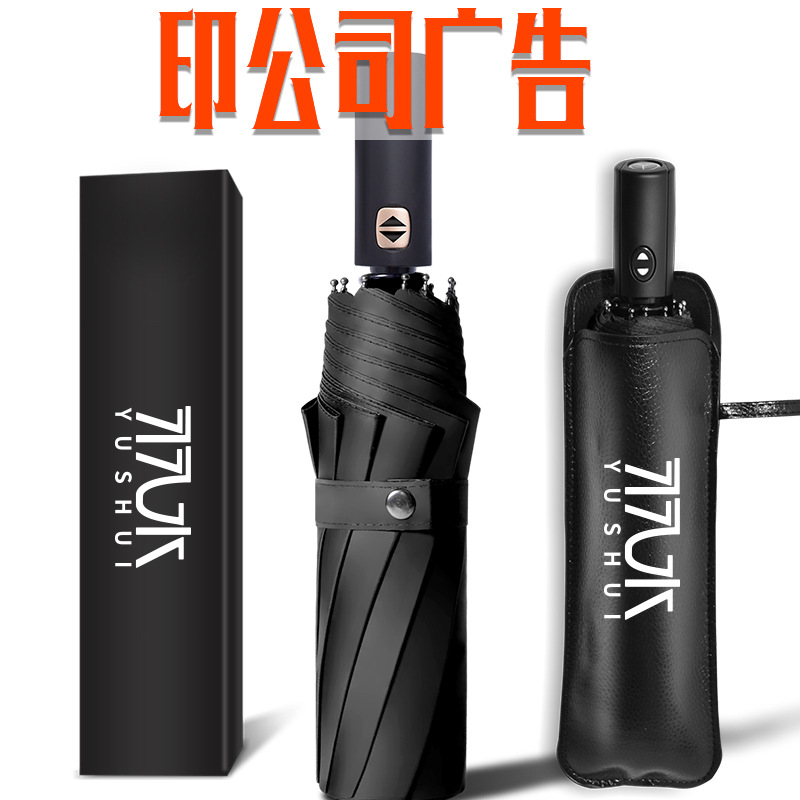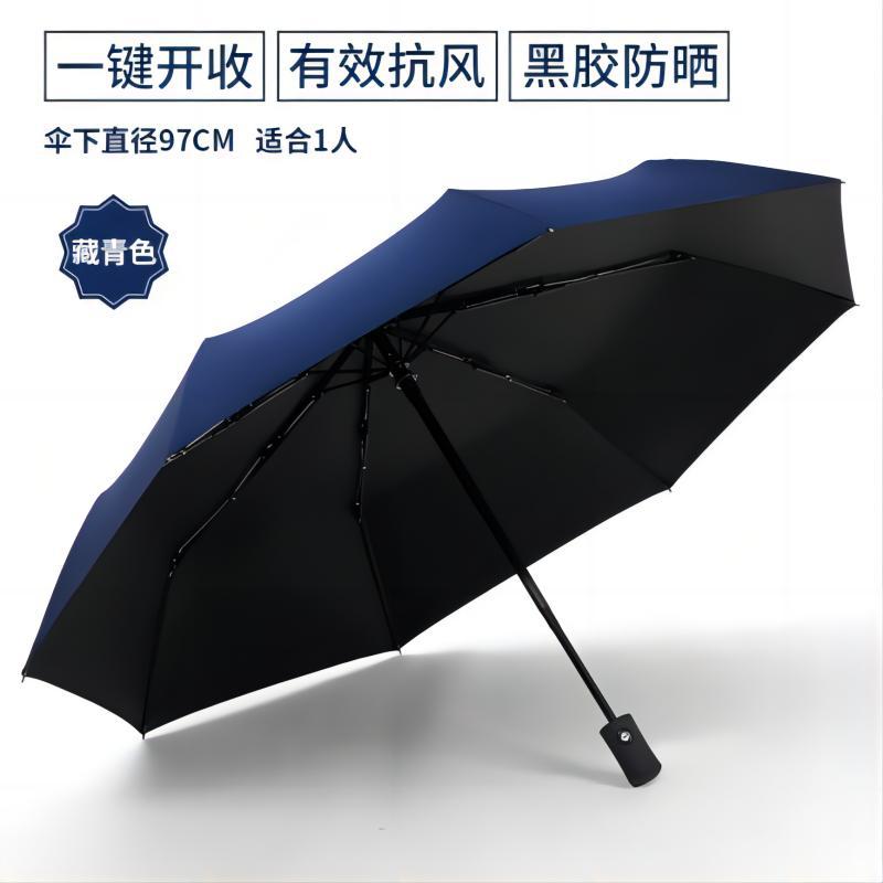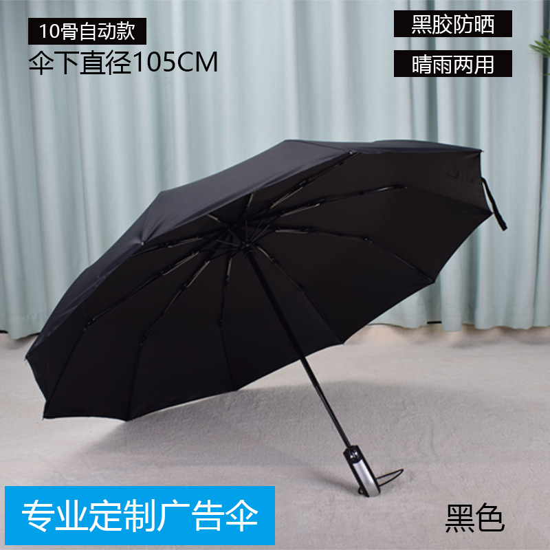 雨伞广告伞印logo三折加厚黑胶全自动防晒伞晴雨两用伞uv折叠遮阳