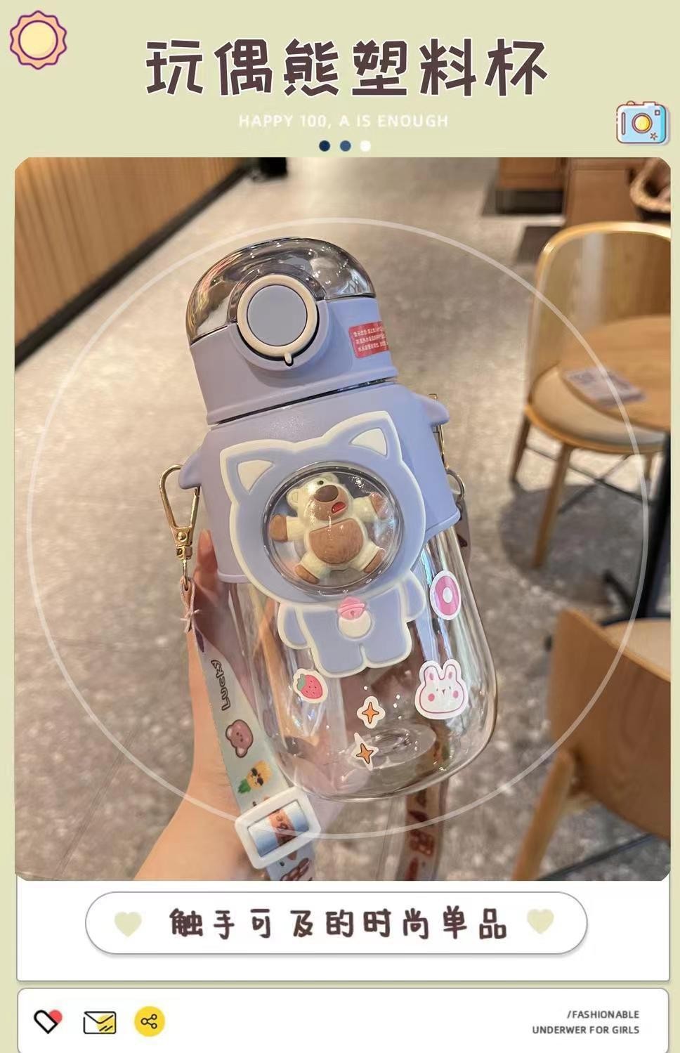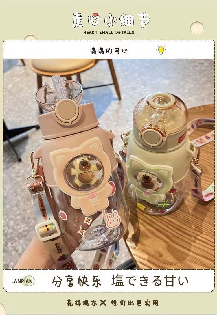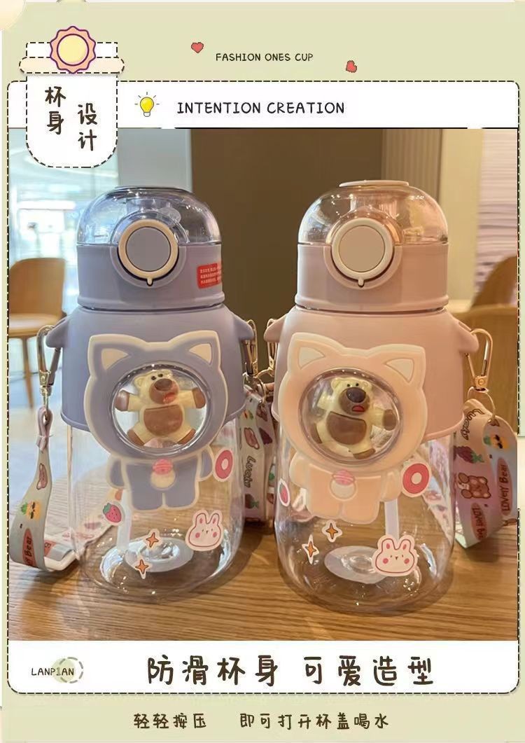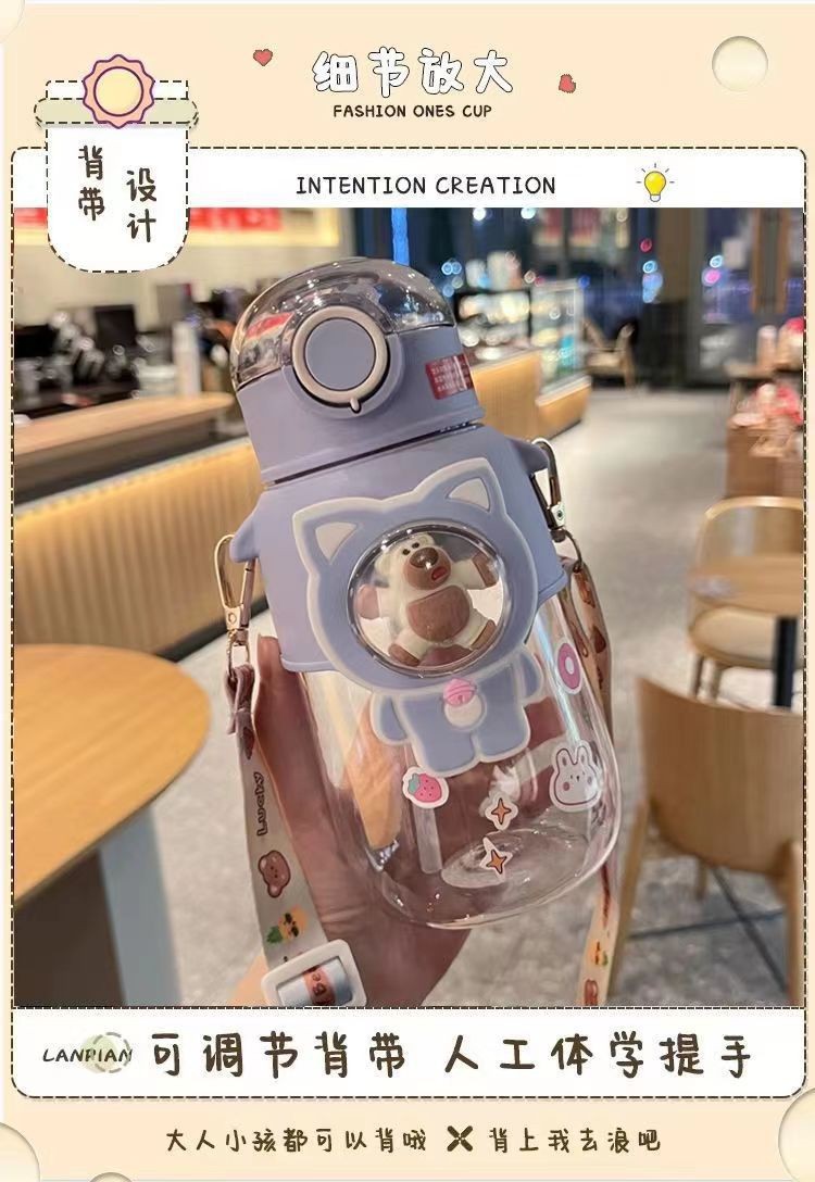儿童水杯吸管杯大容量卡通水杯高颜值塑料杯学生男女便携塑料杯子