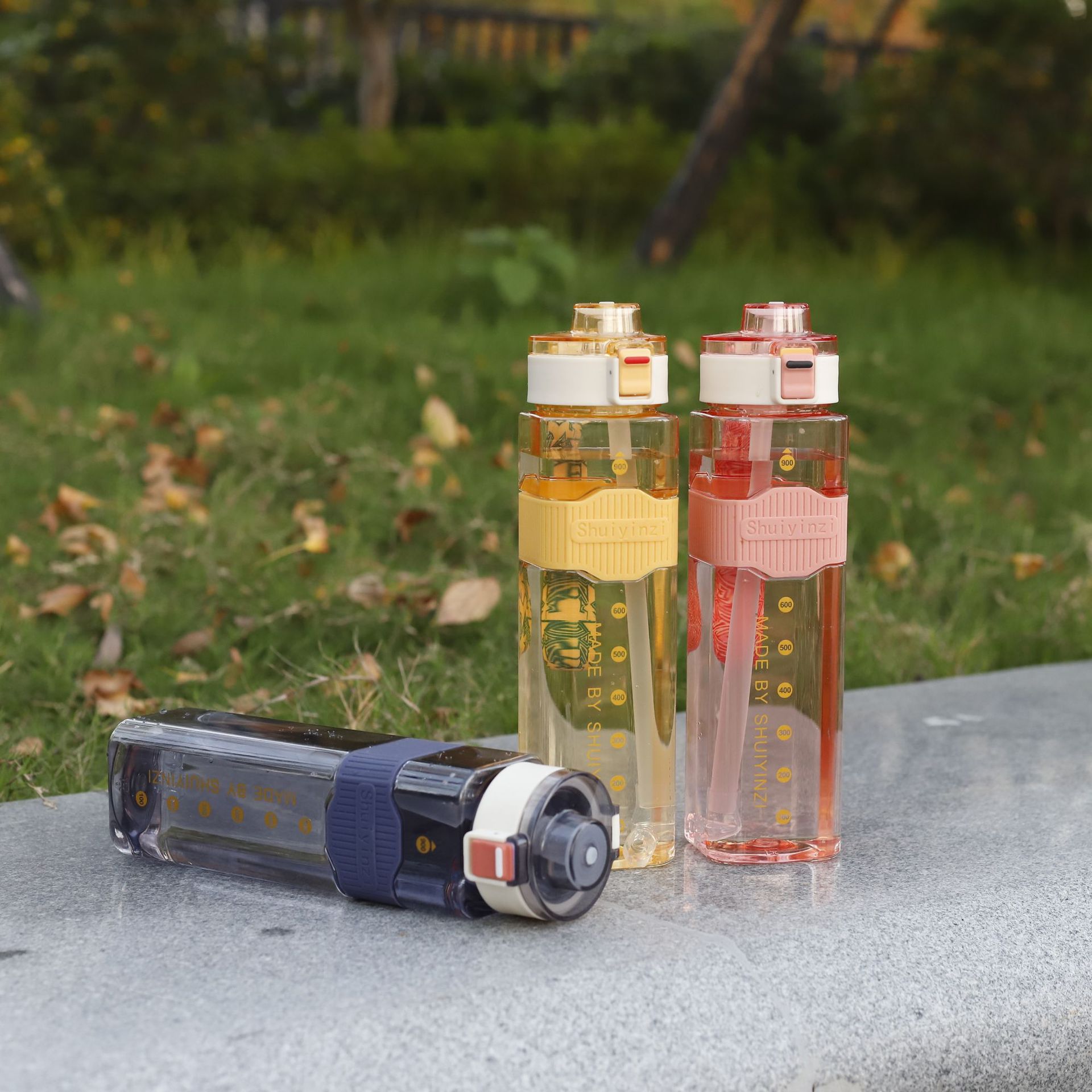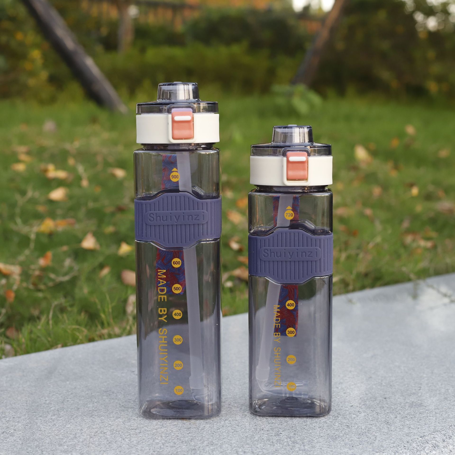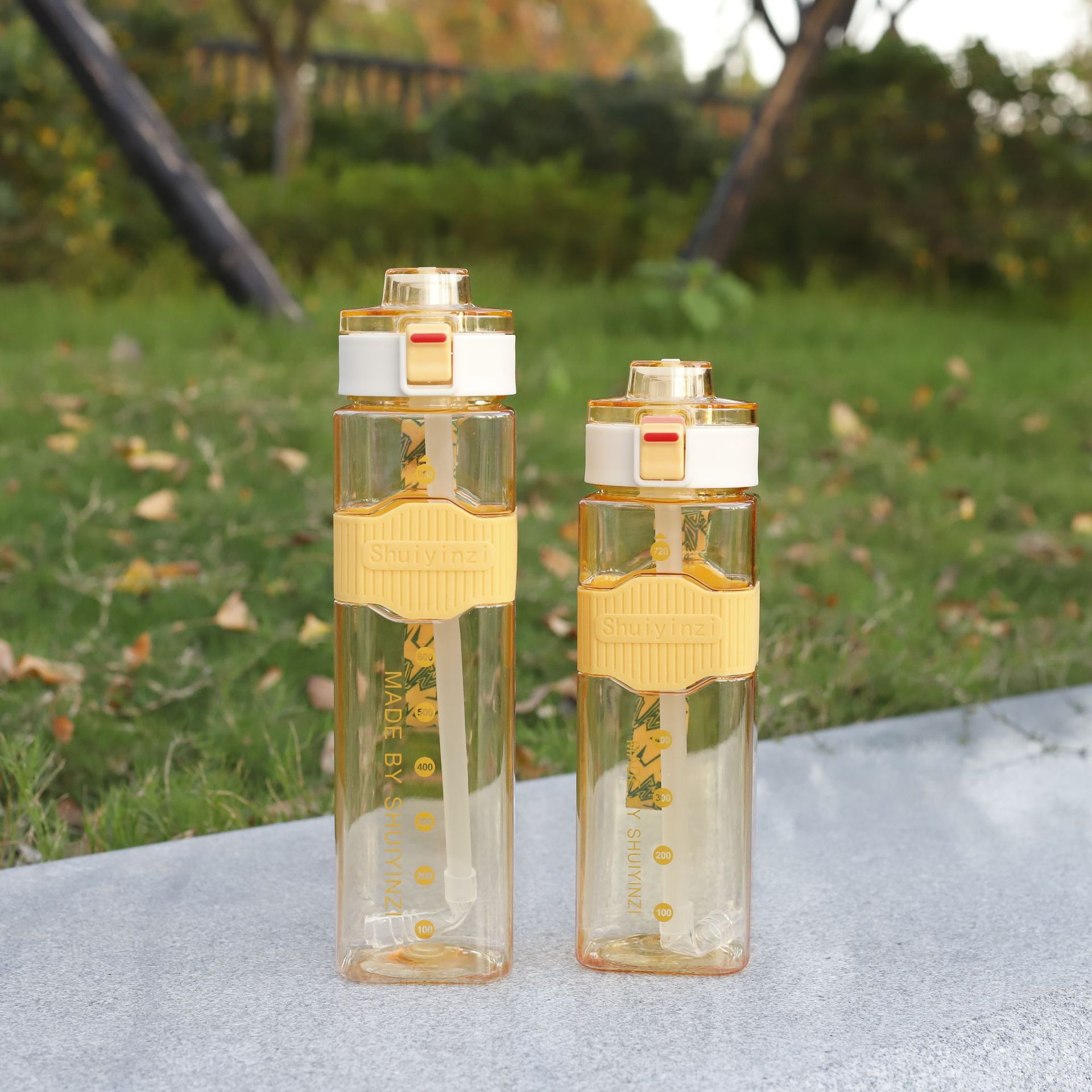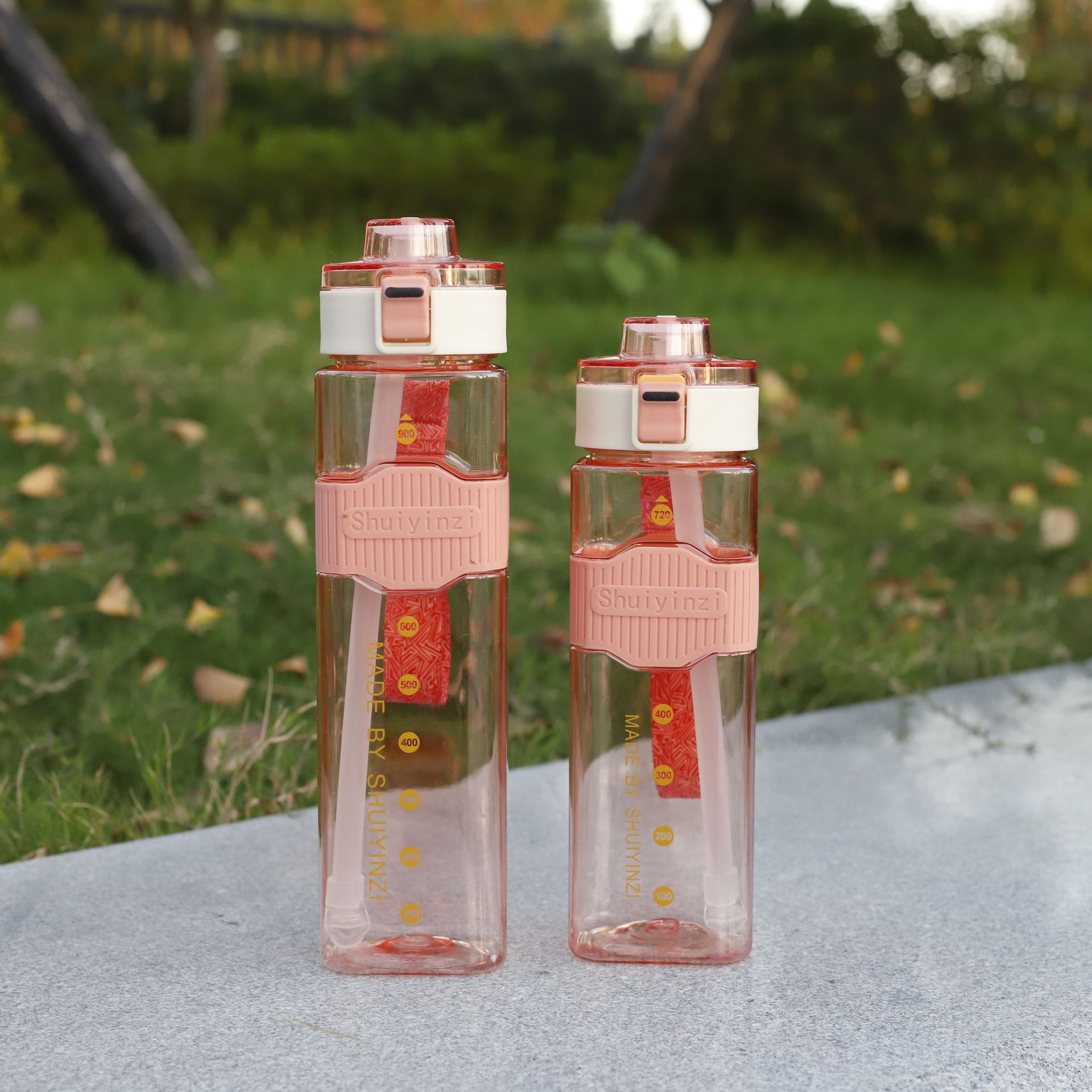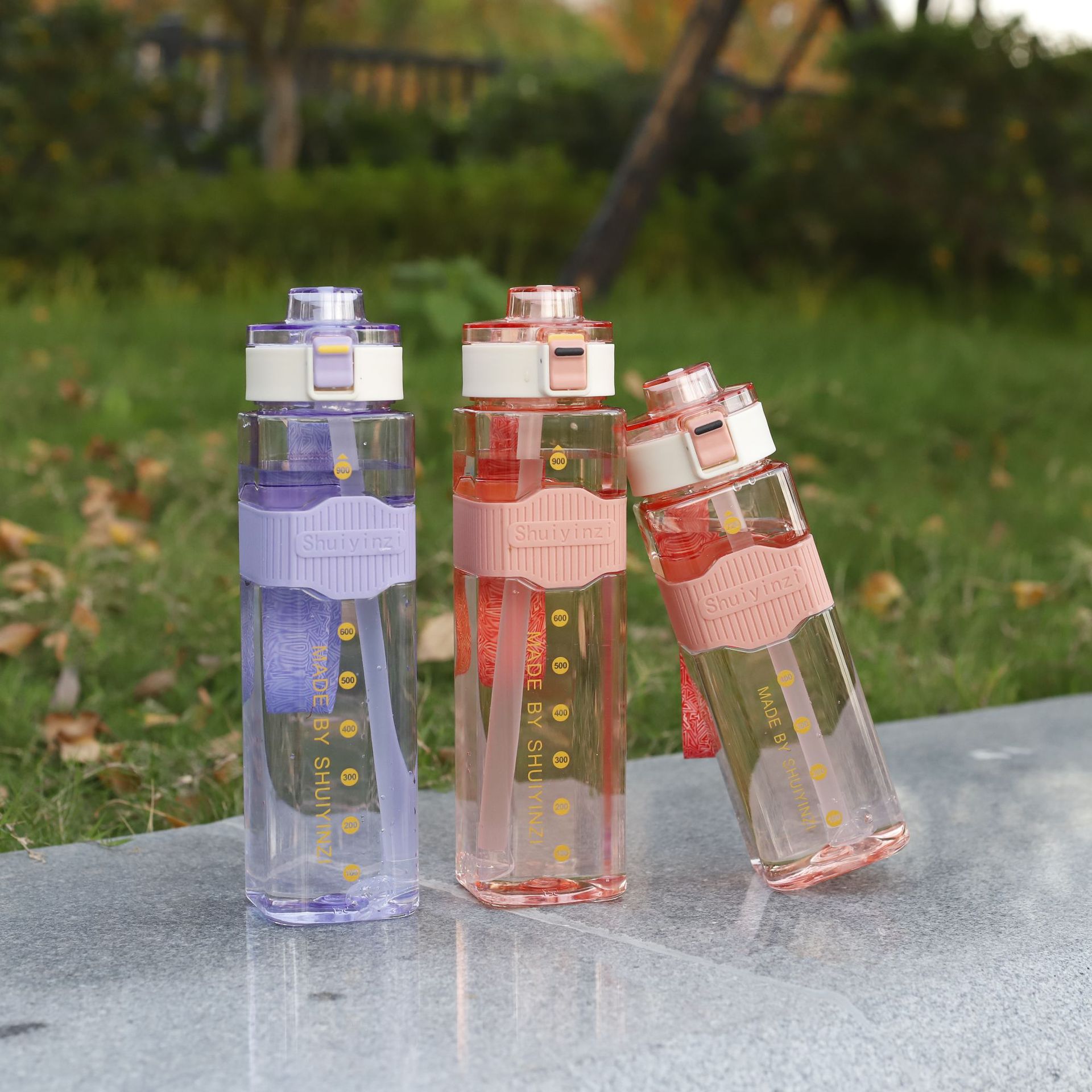 网红新款方形跳弹塑料杯简约带刻度透明水杯便携手提杯子批发