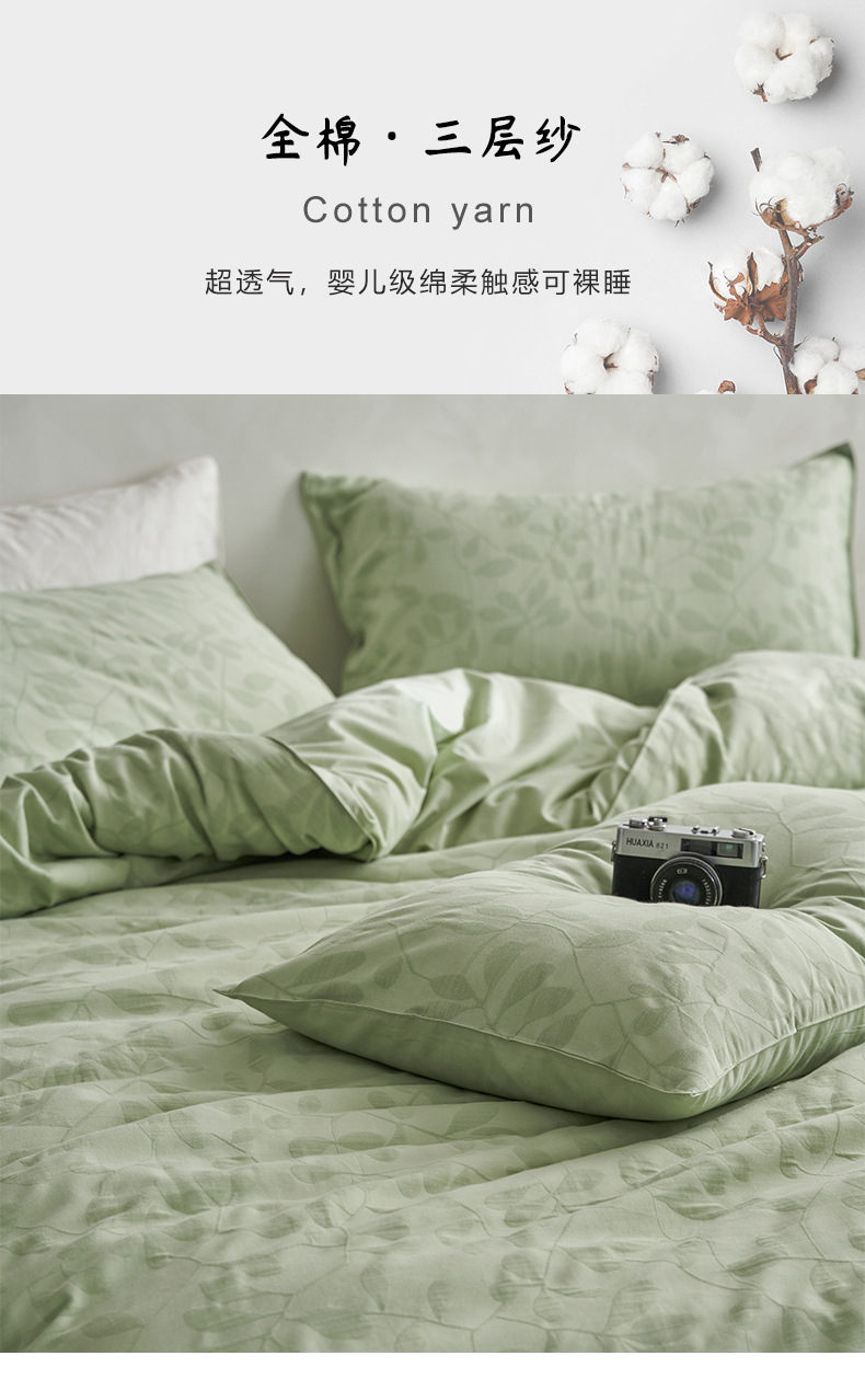 日式A类三层纱四件套纯棉全棉60支提花被套床单民宿套件家纺批发