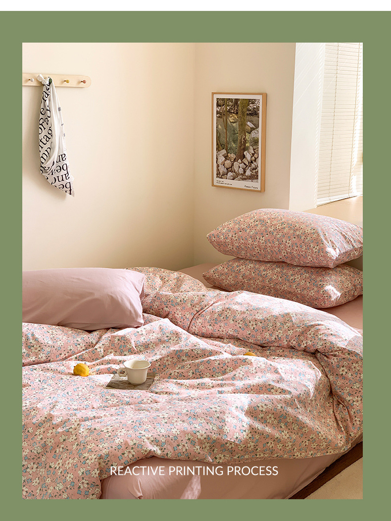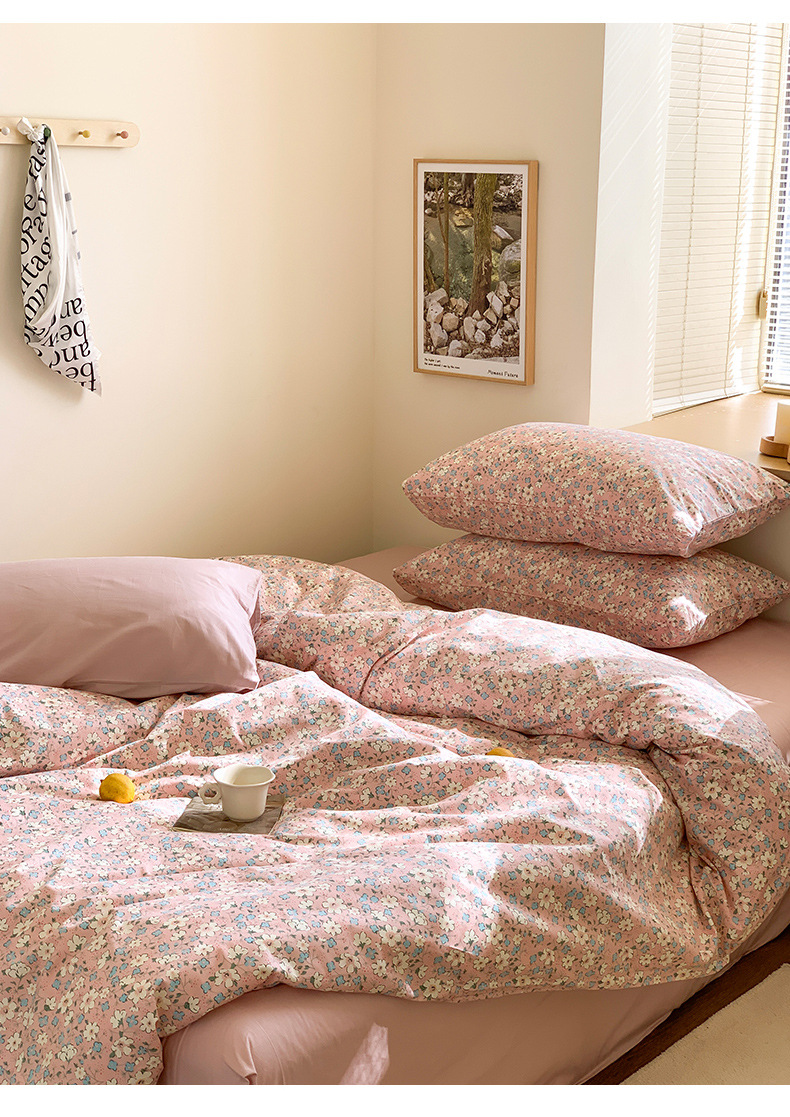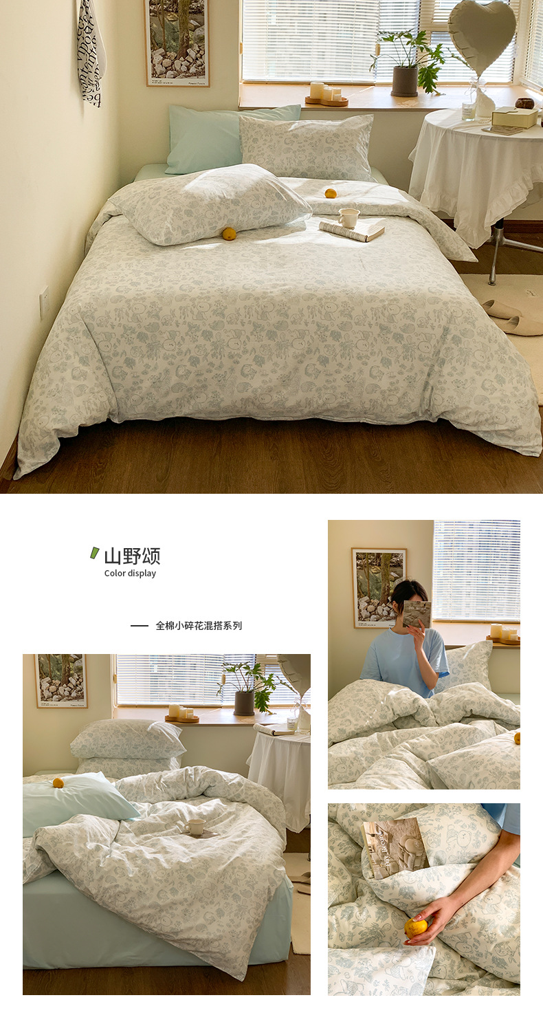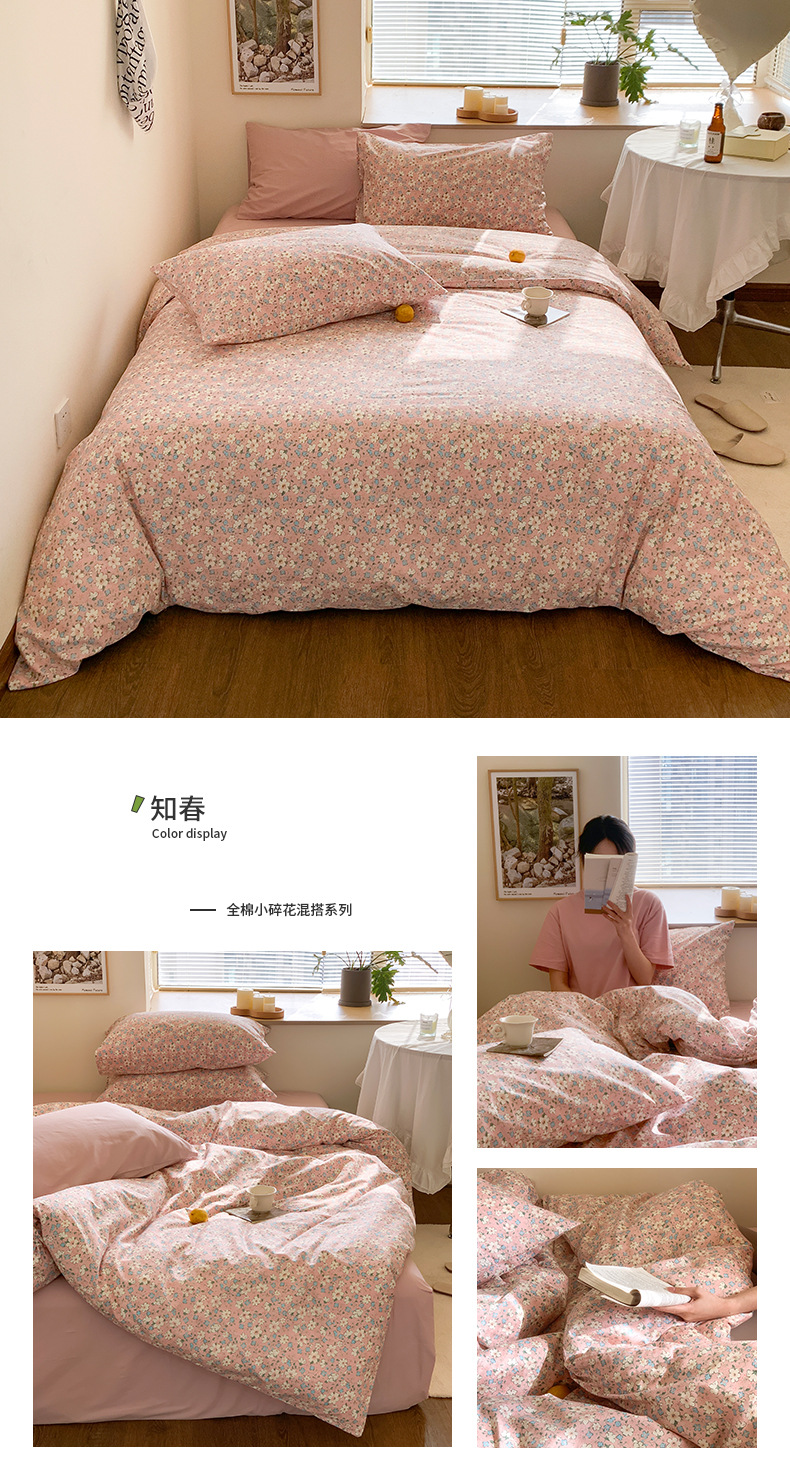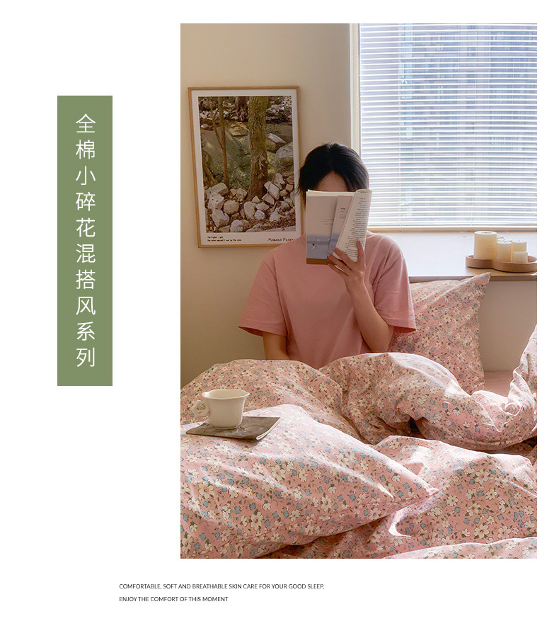 直播代理 ins小清新四件套纯棉全棉40支小碎花单双人床单套件批发