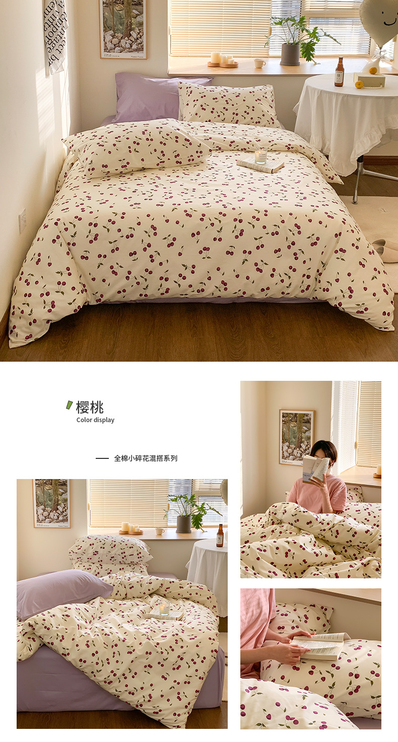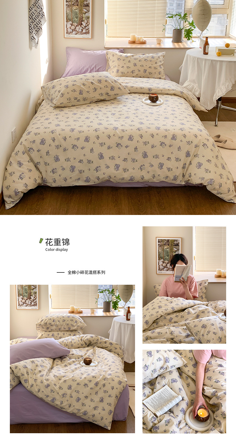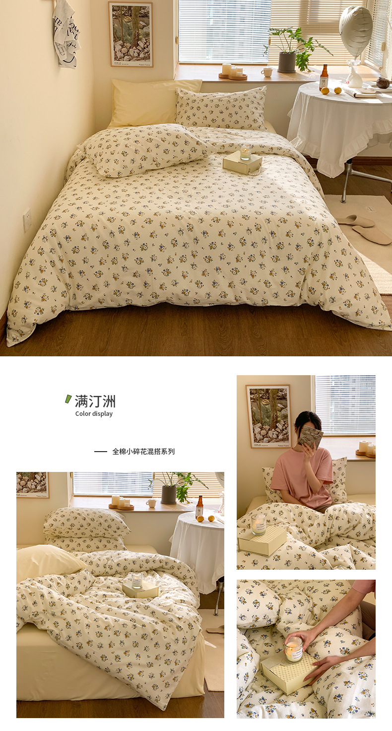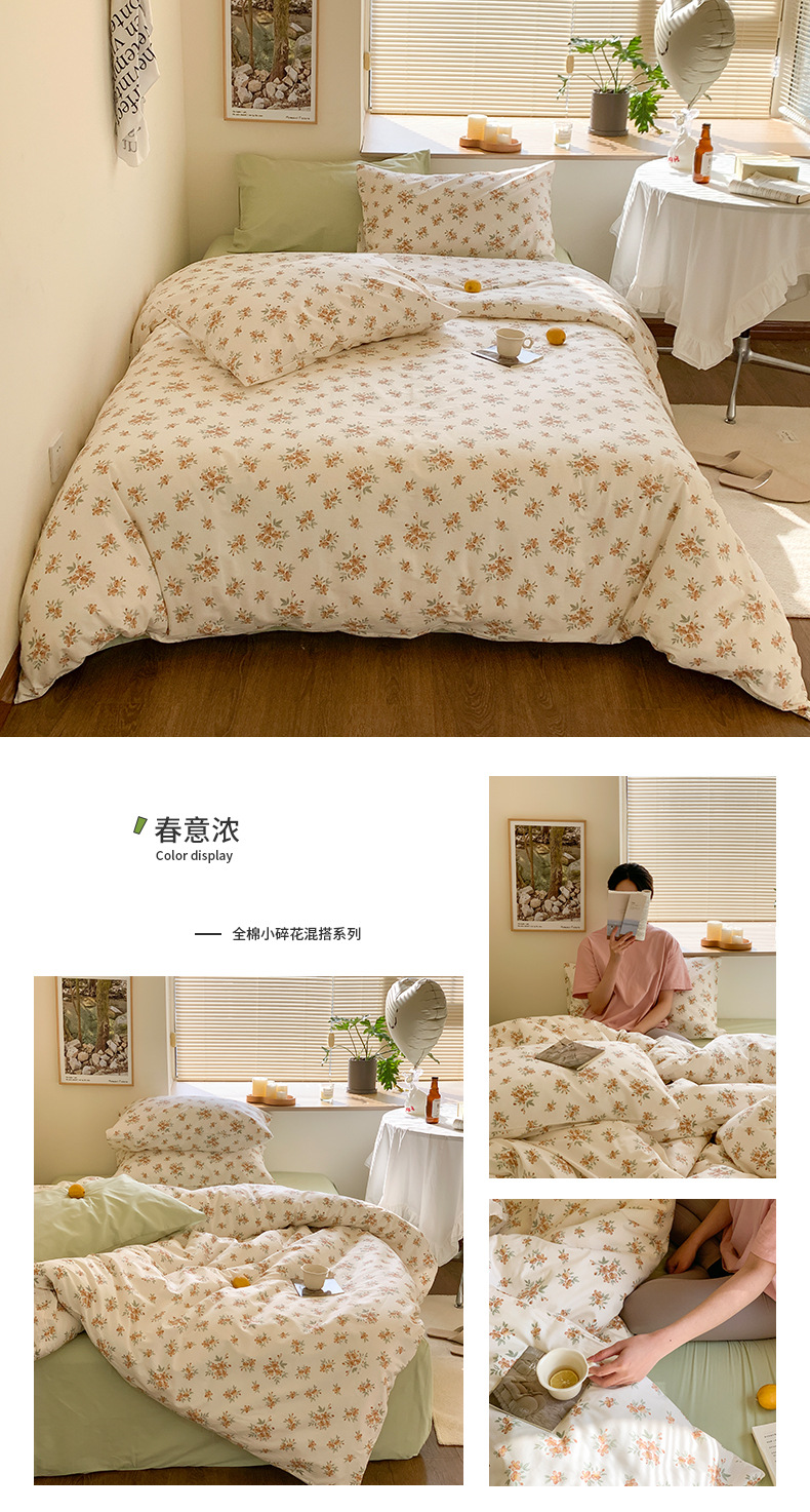 直播代理 ins小清新四件套纯棉全棉40支小碎花单双人床单套件批发