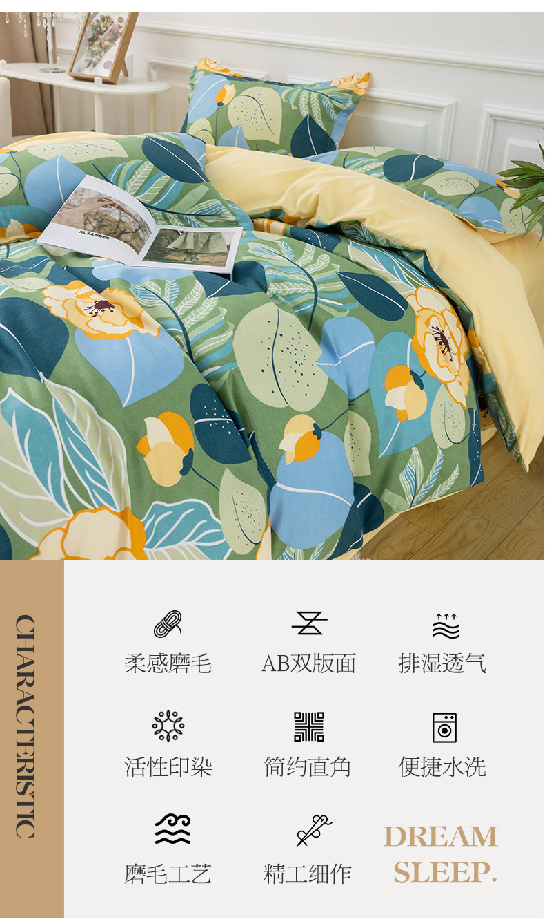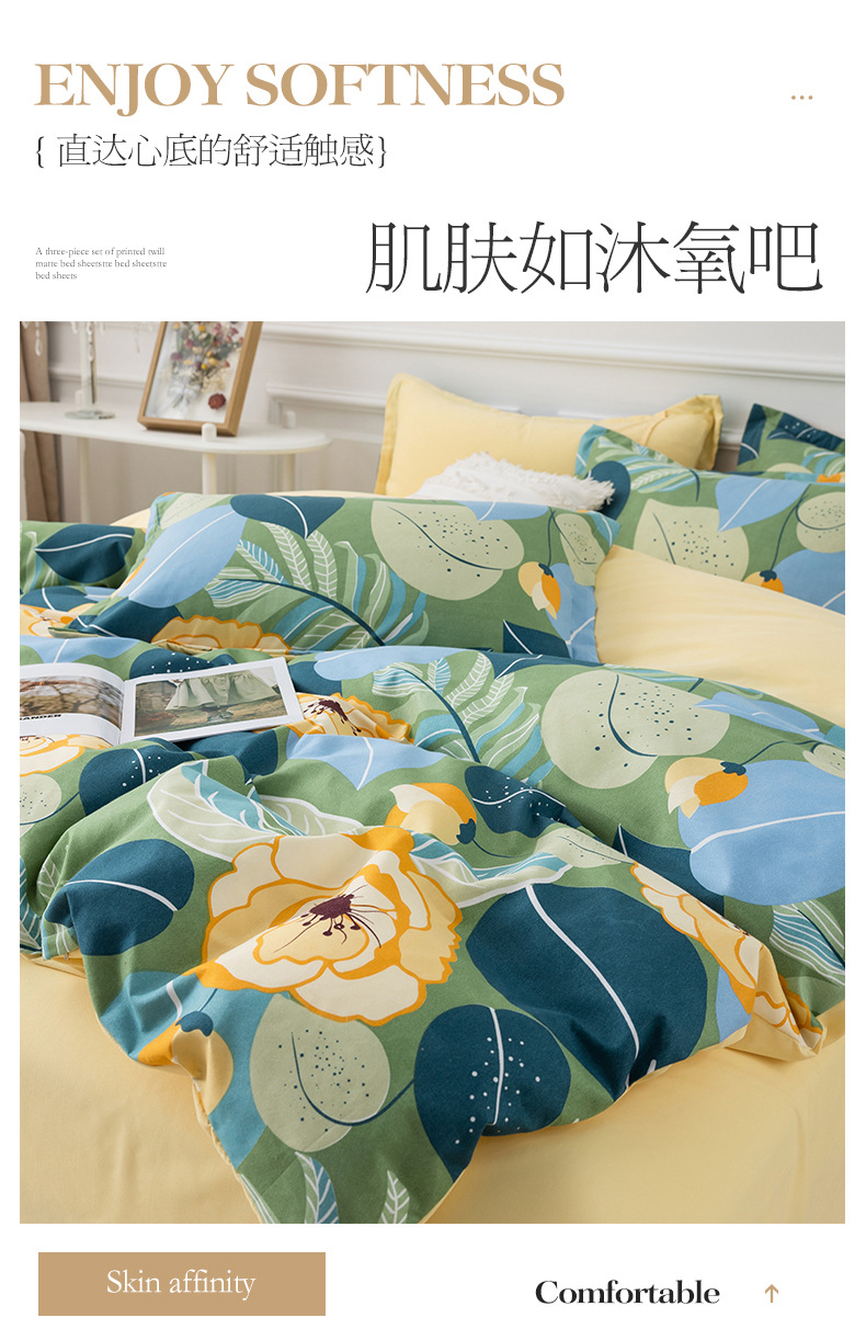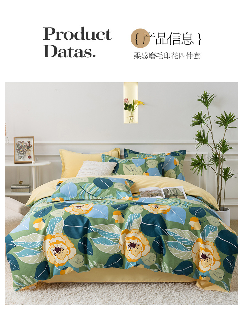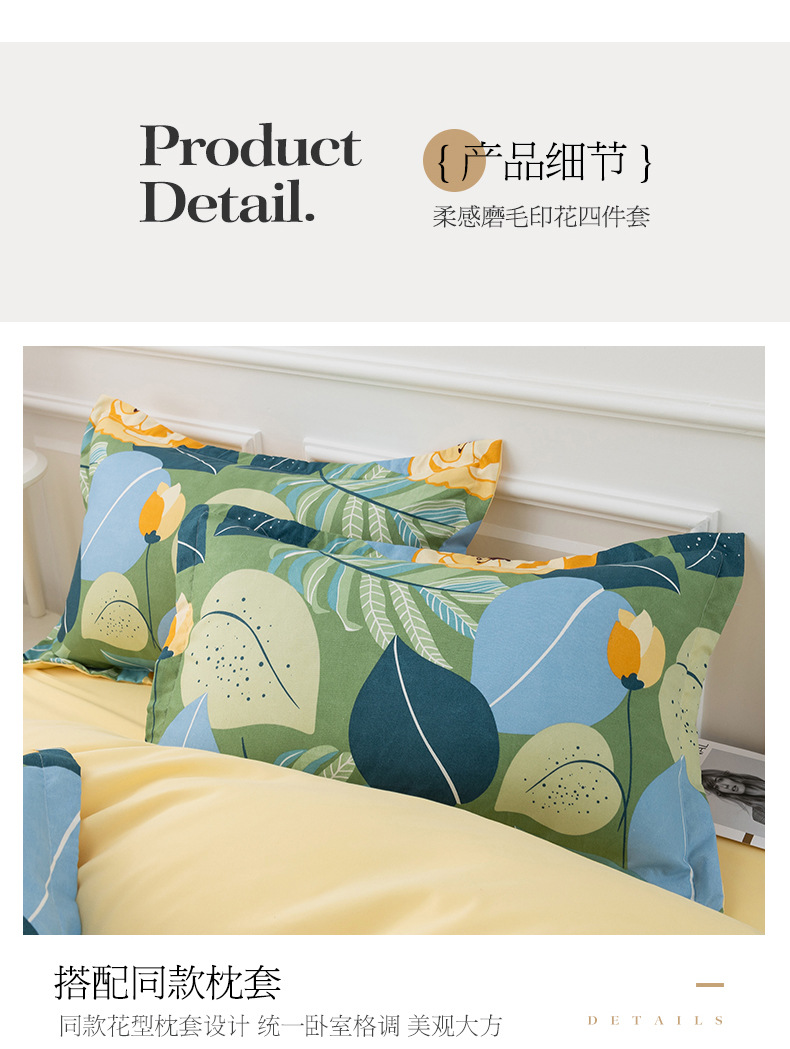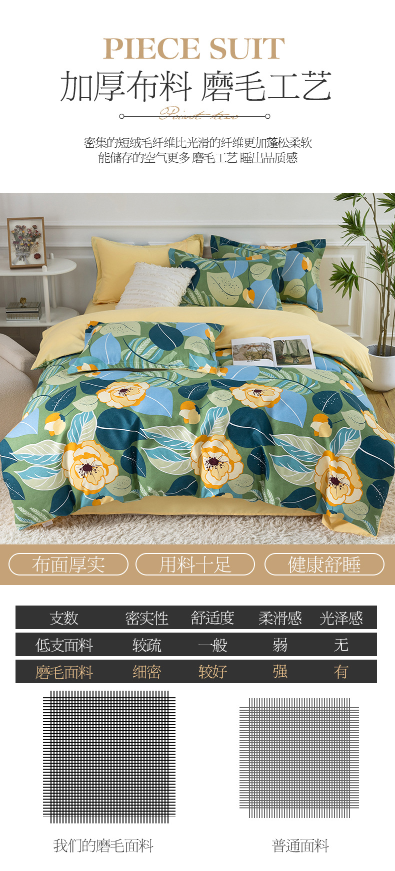 厂家直播批发新款田园床上四件套磨毛加厚斜纹被套床单三件套家纺