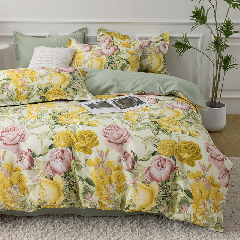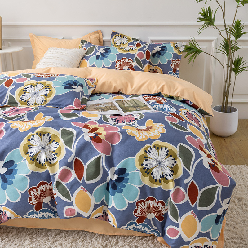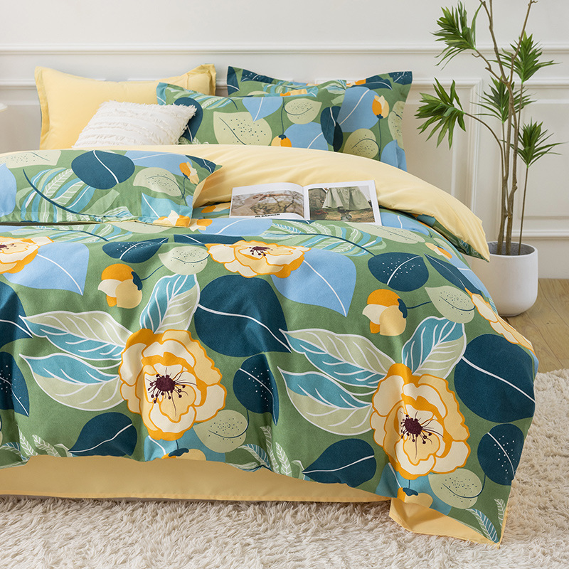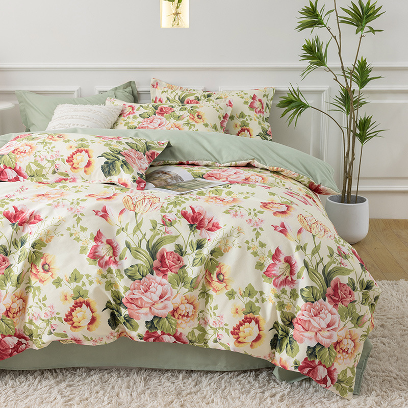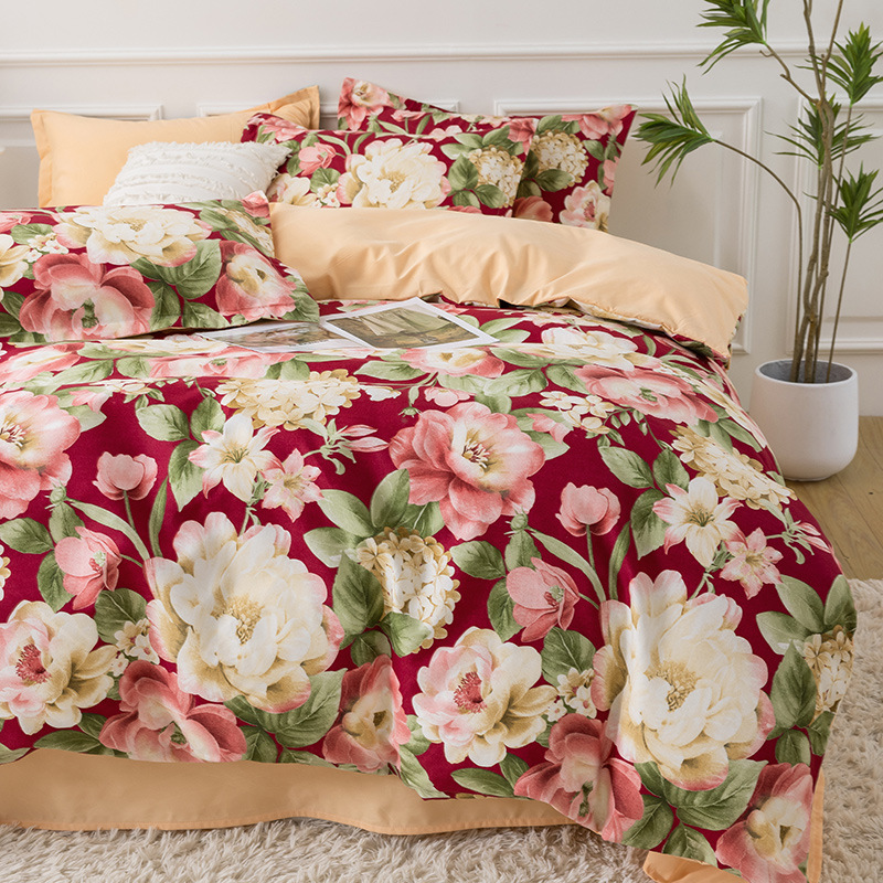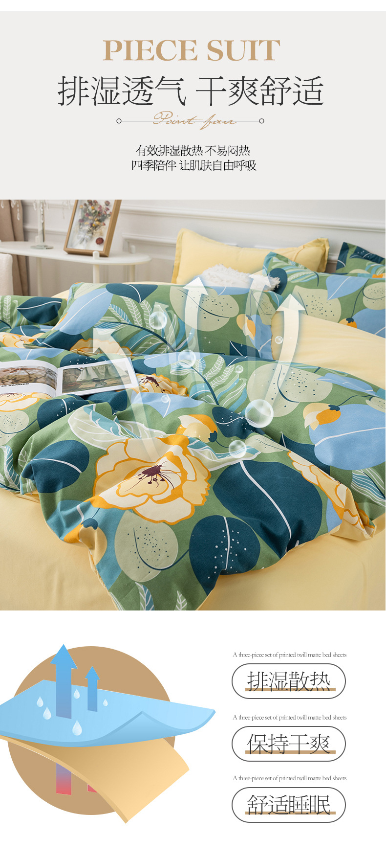 厂家直播批发新款田园床上四件套磨毛加厚斜纹被套床单三件套家纺