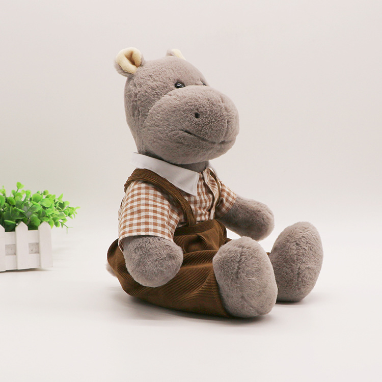 穿衣河马毛绒玩具公仔坐版河马玩偶创意卡通布娃娃厂家直供