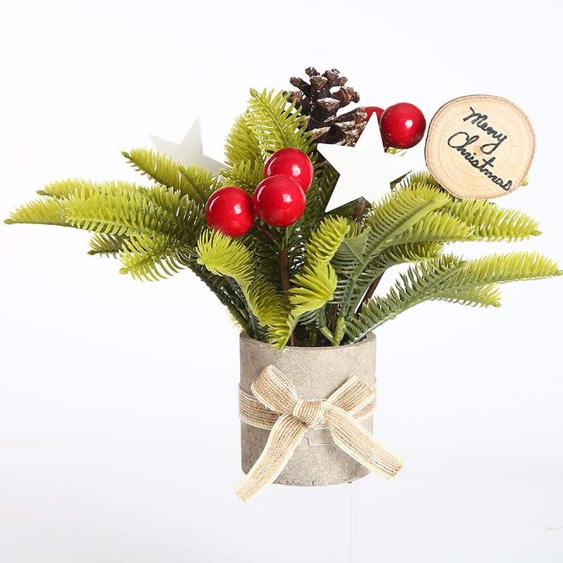 20CM圣诞节装饰品桌面迷你小树仿真PE红果纸浆底座跨境亚马逊新款