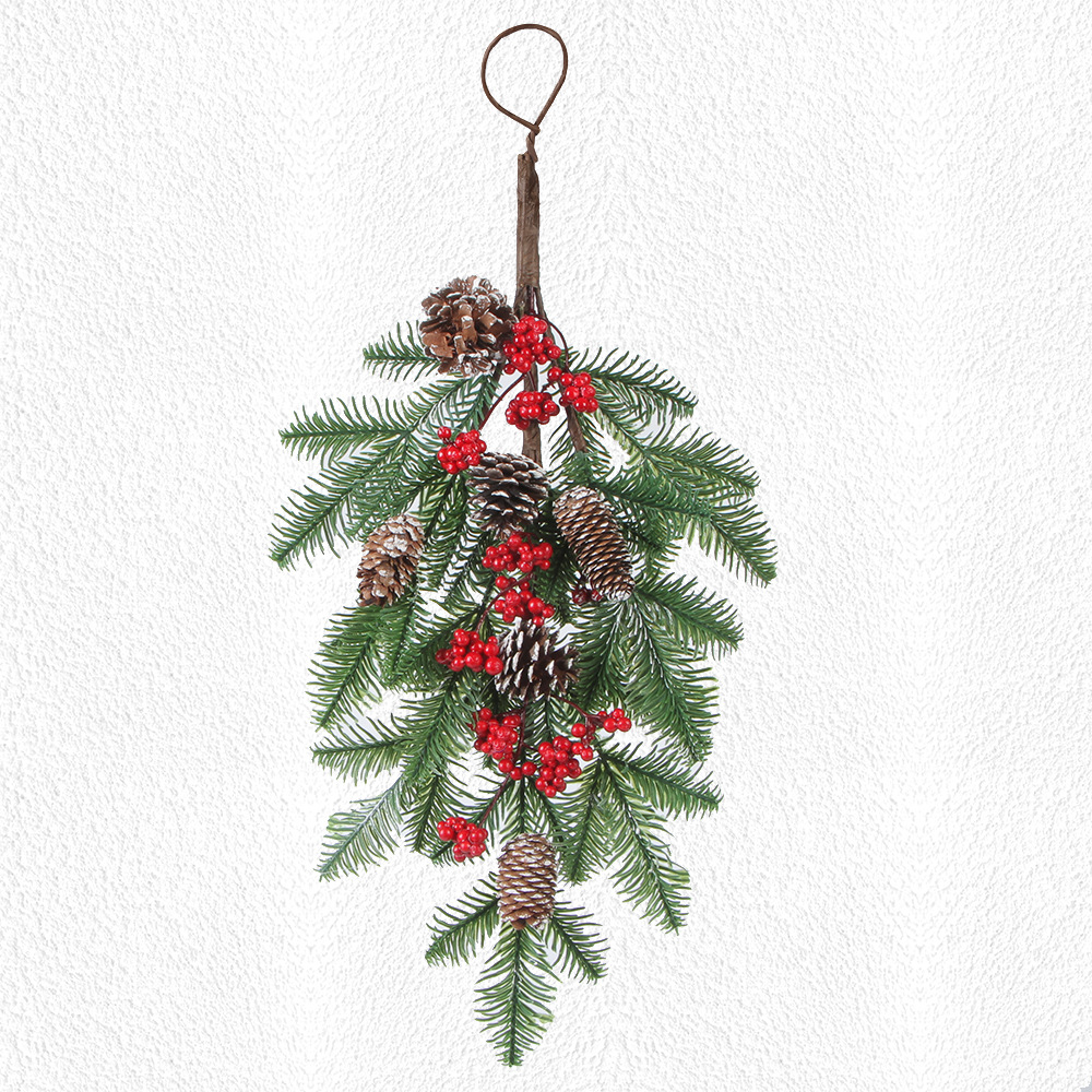 60cm家居墙面圣诞节壁挂PE松果倒挂圣诞树装饰品红果松果挂饰现货