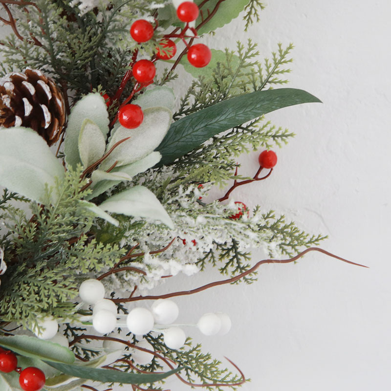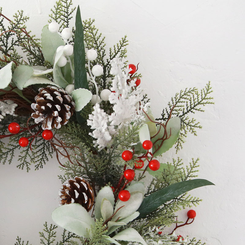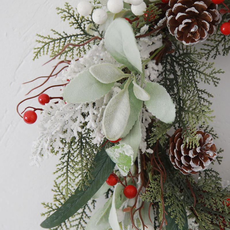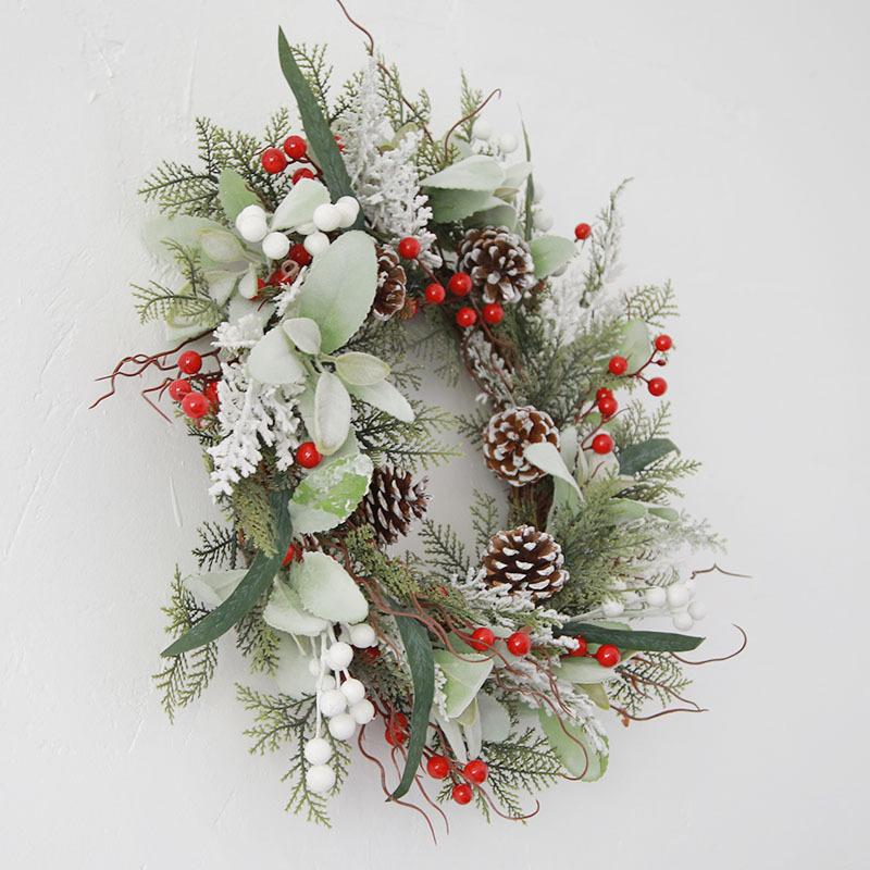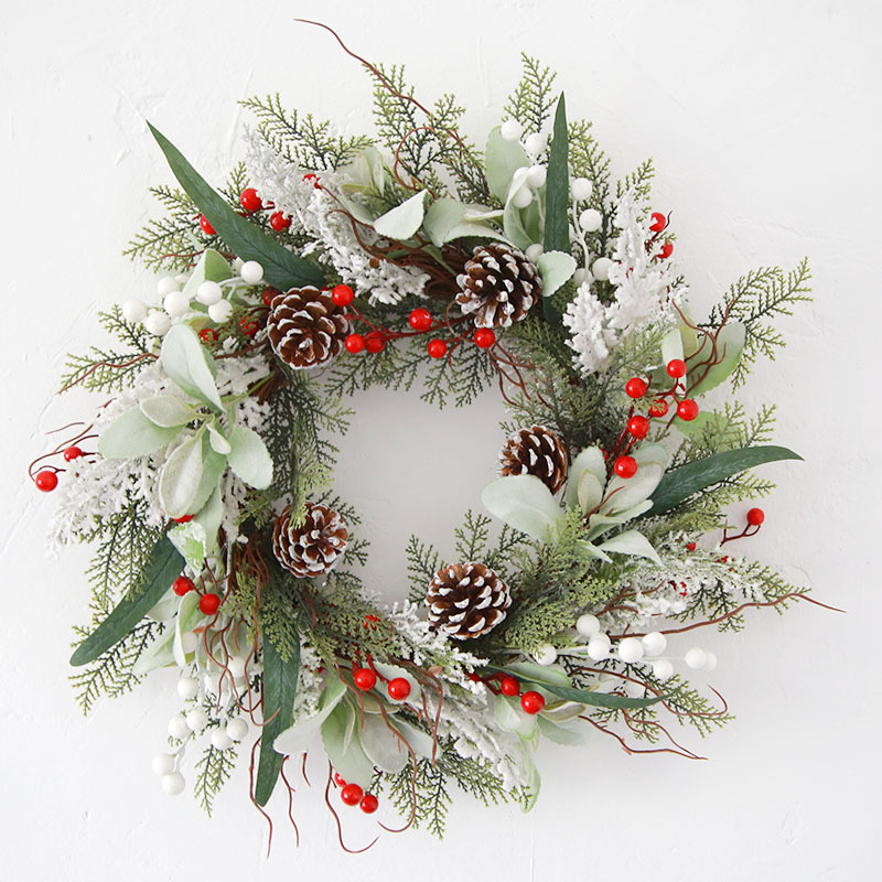 50CM圣诞节装饰品花环PE仿真柏叶欧美风格藤圈松果亚马孙跨境原创