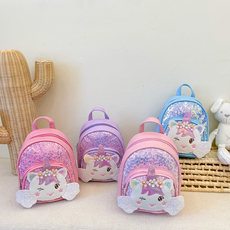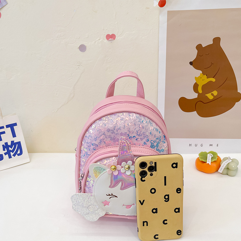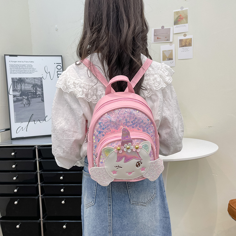 幸运小猪新款2至5岁儿童亮片公主双肩背包幼儿园书包可爱女童包