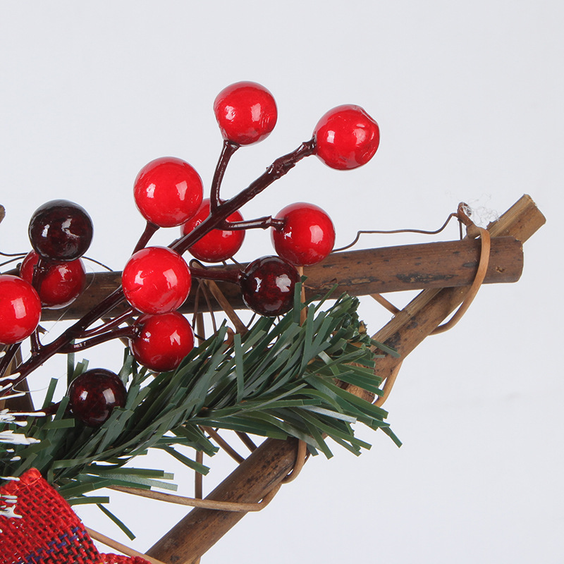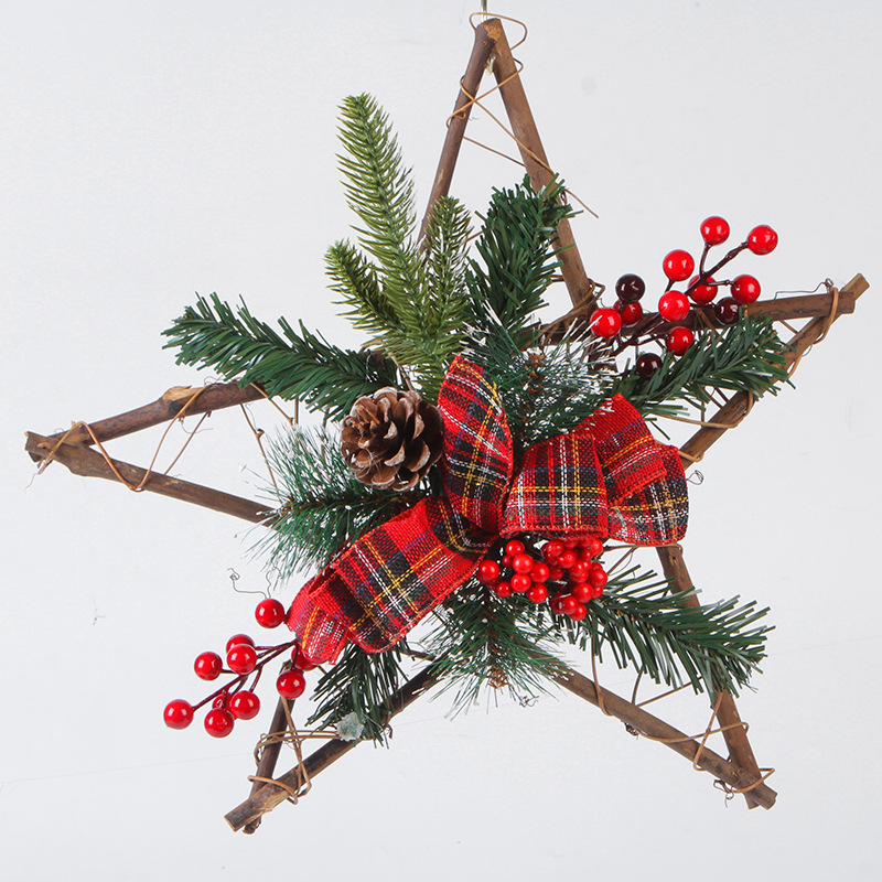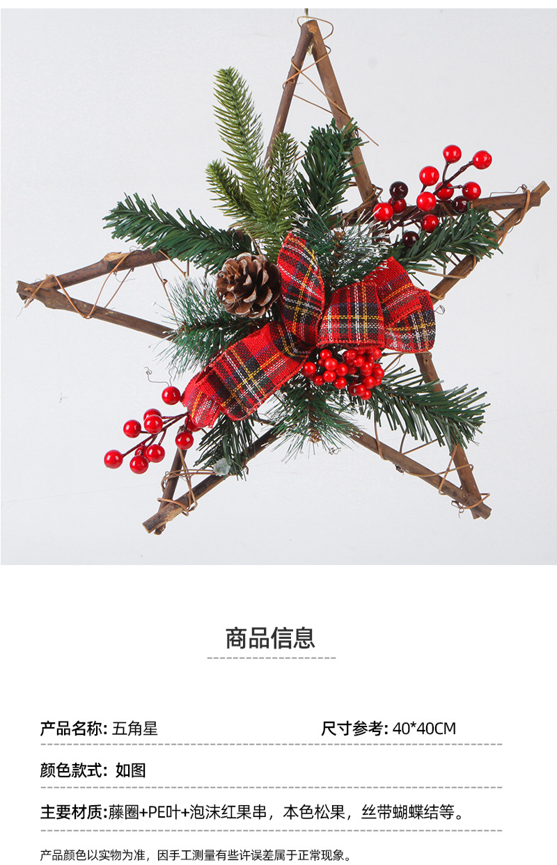 跨境40CM藤圈松枝红果花环装饰品 墙挂橱窗门挂pe 圣诞节五角星