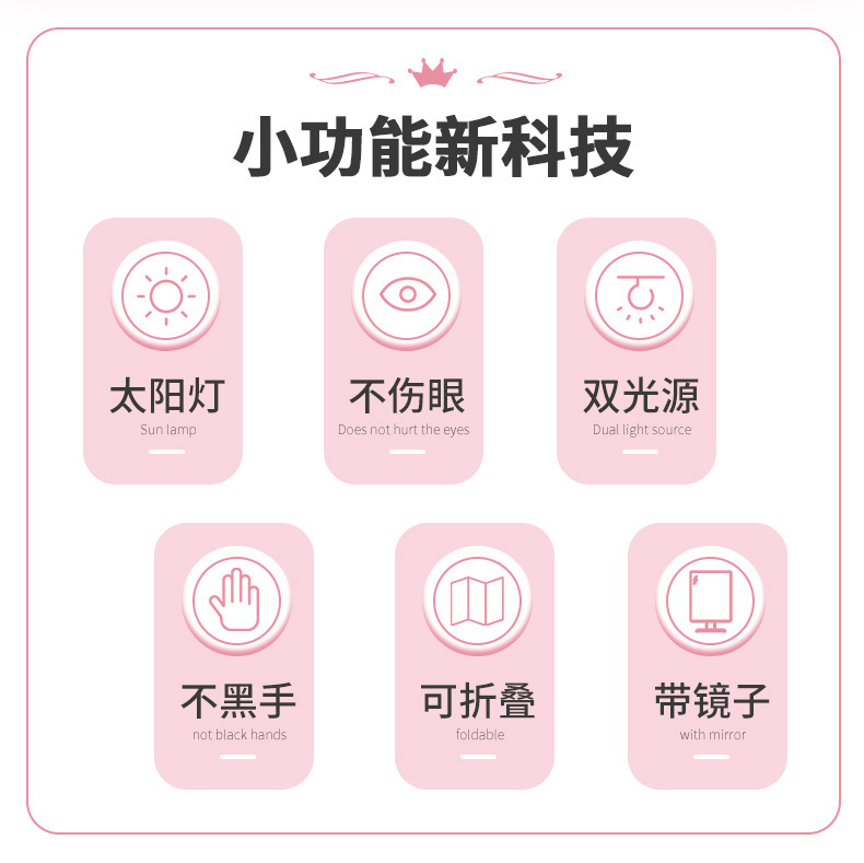 跨境新款8w化妆镜美甲灯折叠美甲光疗灯UV固化甲油迷你鼠标美甲灯
