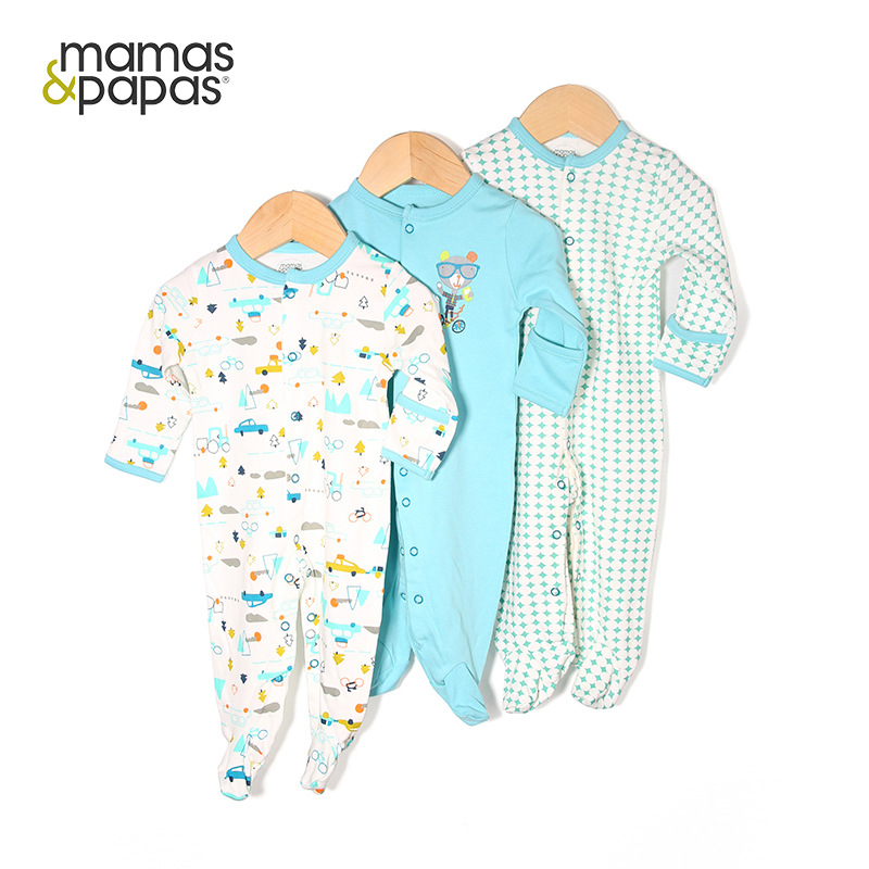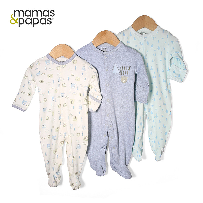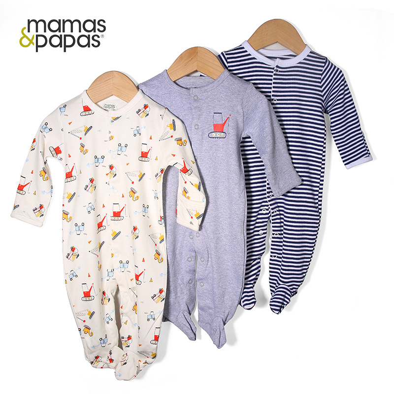 mamas&papas男宝宝冬款纯棉包脚连体衣婴儿哈衣儿童爬服三件套