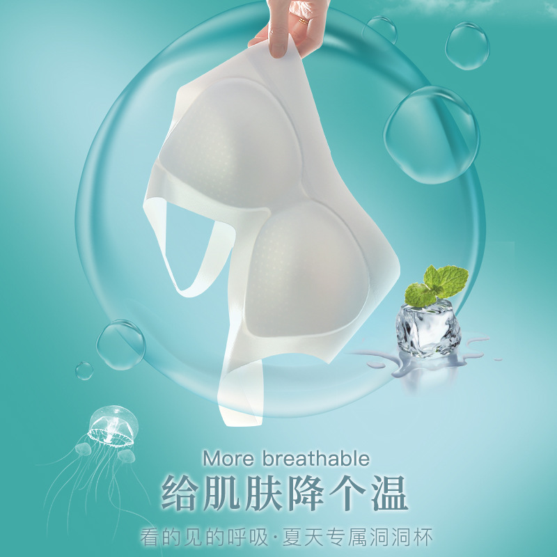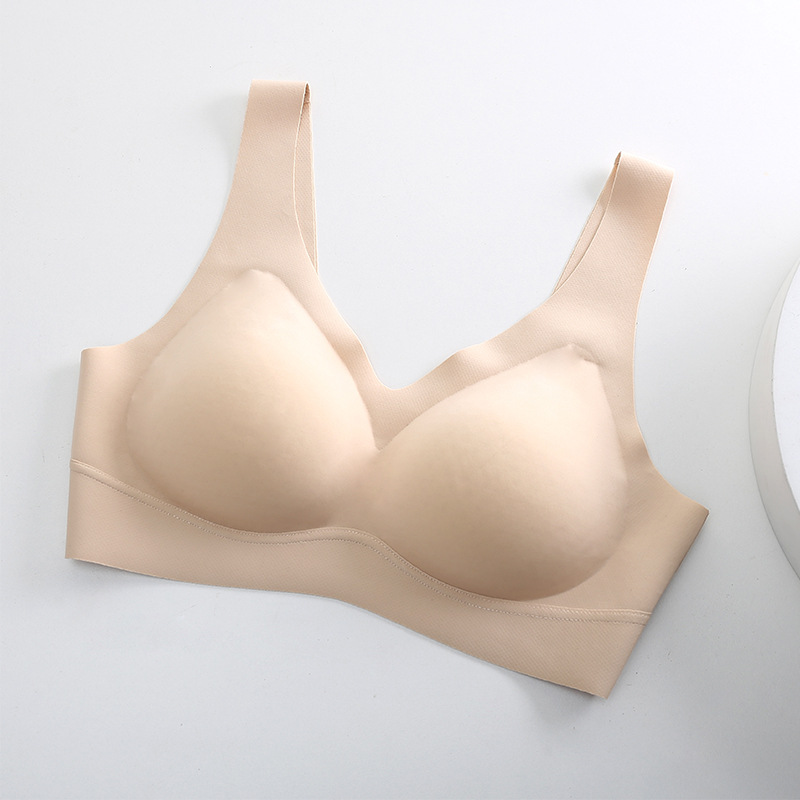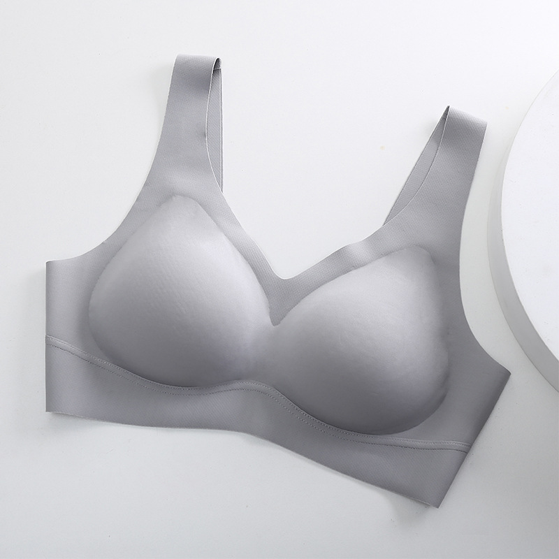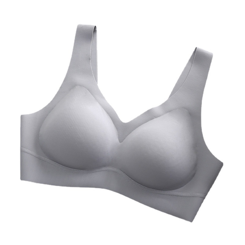 冰丝无痕无钢圈固定杯乳胶内衣女大胸显小聚拢背心式养护文胸薄款