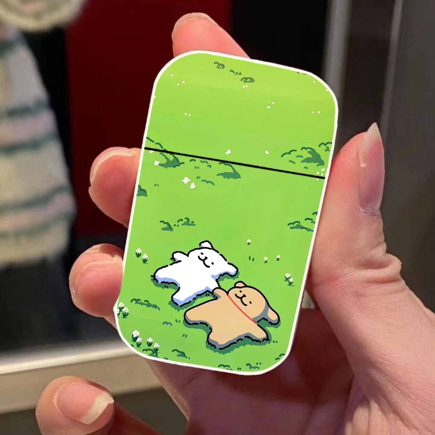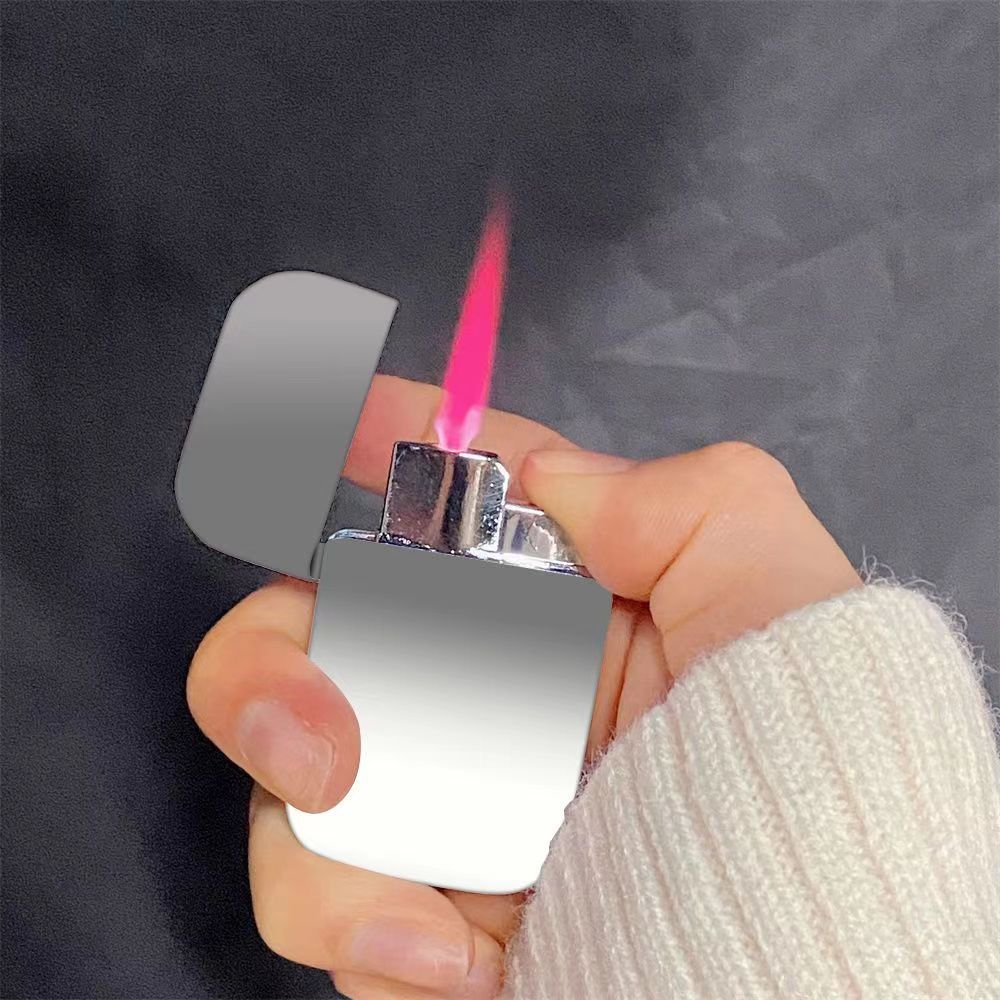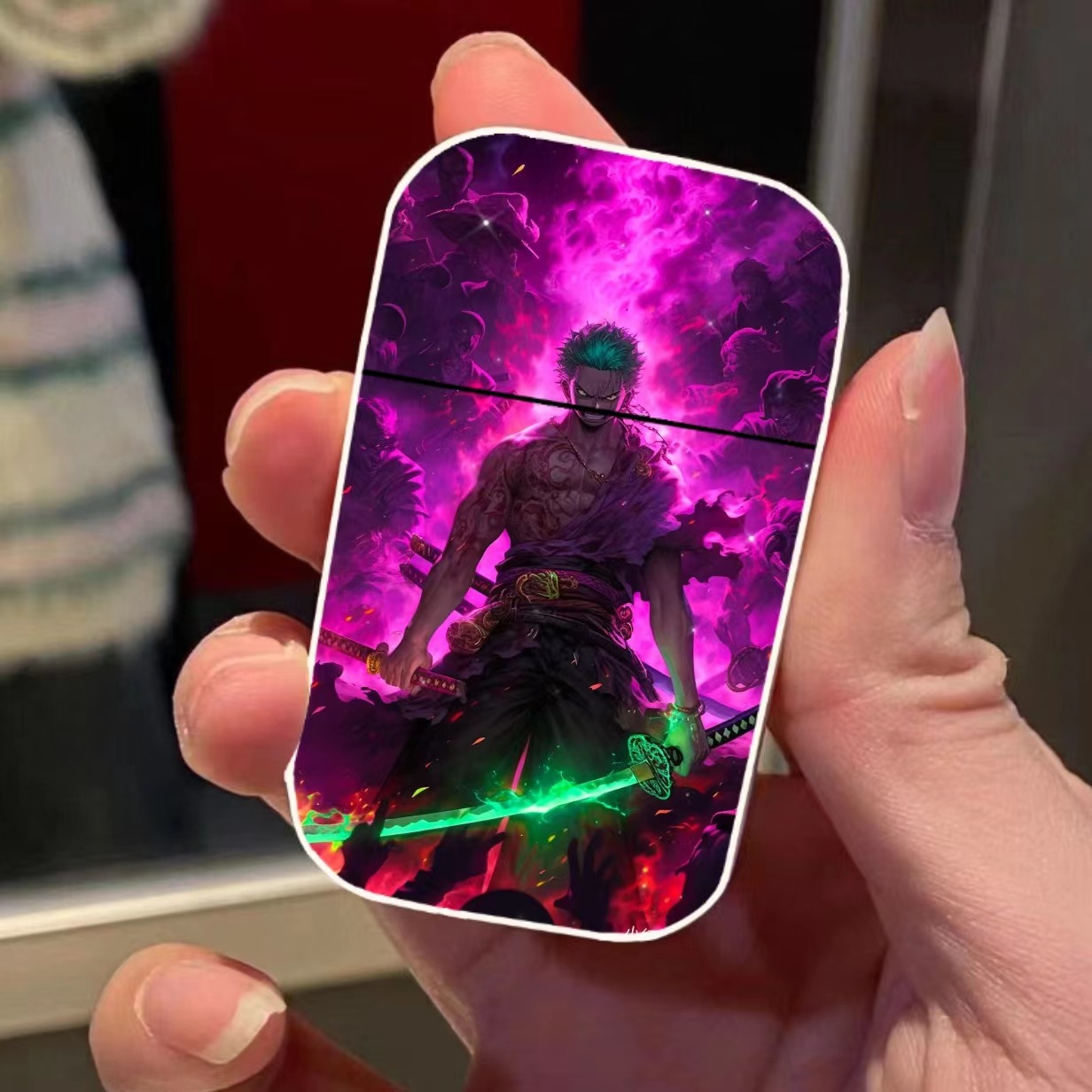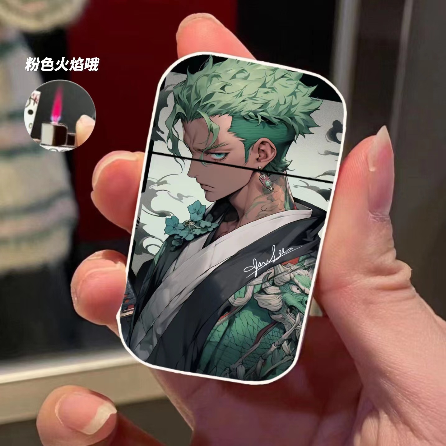 粉色火焰创意防风打火机 金属充气打火机 动漫卡通海贼王广告机