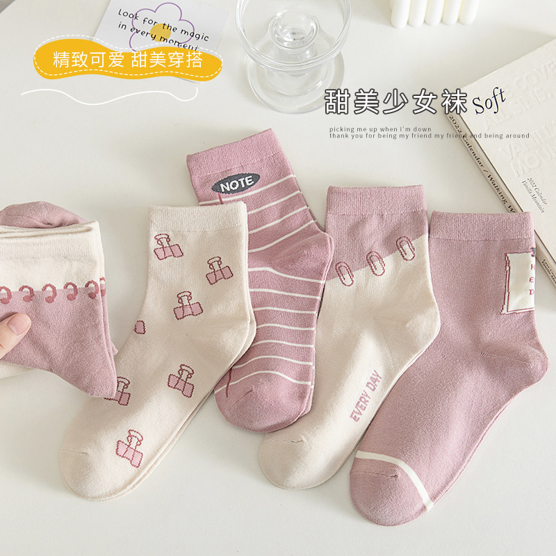 袜子女士中筒袜春秋棉网红款秋季长筒袜外穿潮ins可爱日系长袜