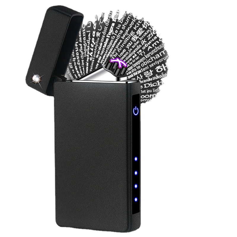 微雕投影一百种爱USB充电双火电弧打火机礼品跨境广告礼品代发
