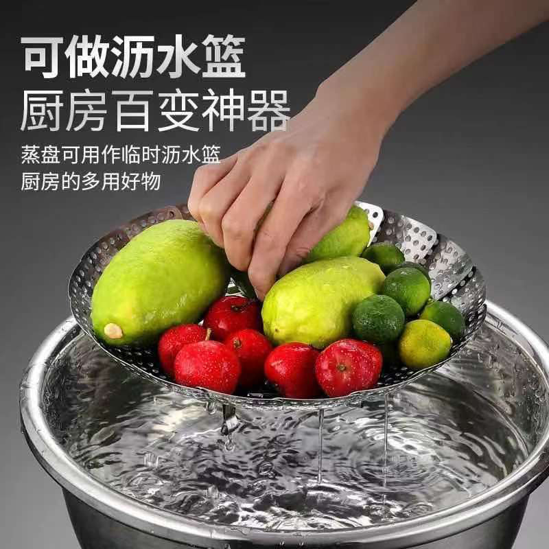 不锈钢折叠蒸笼盘 多功能收缩蒸笼蒸格水果盘沥水篮家用厨房蒸屉