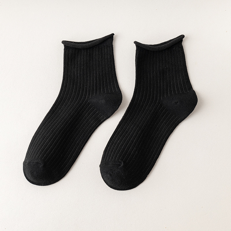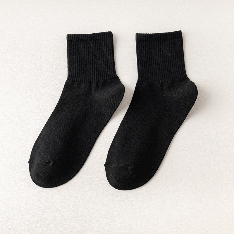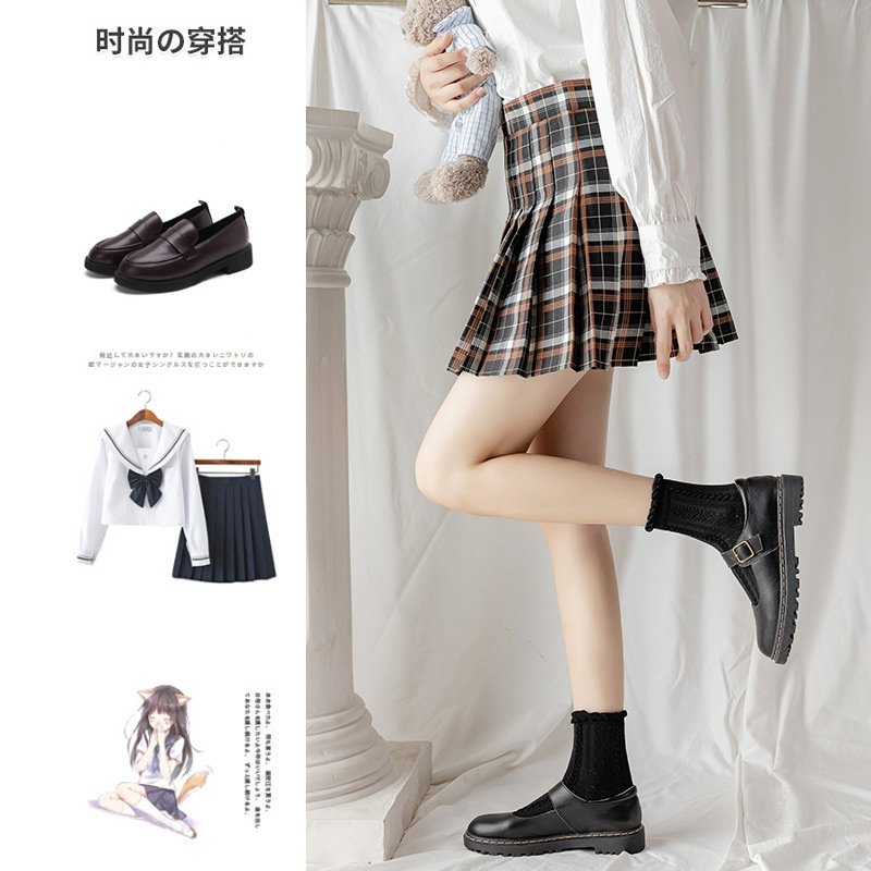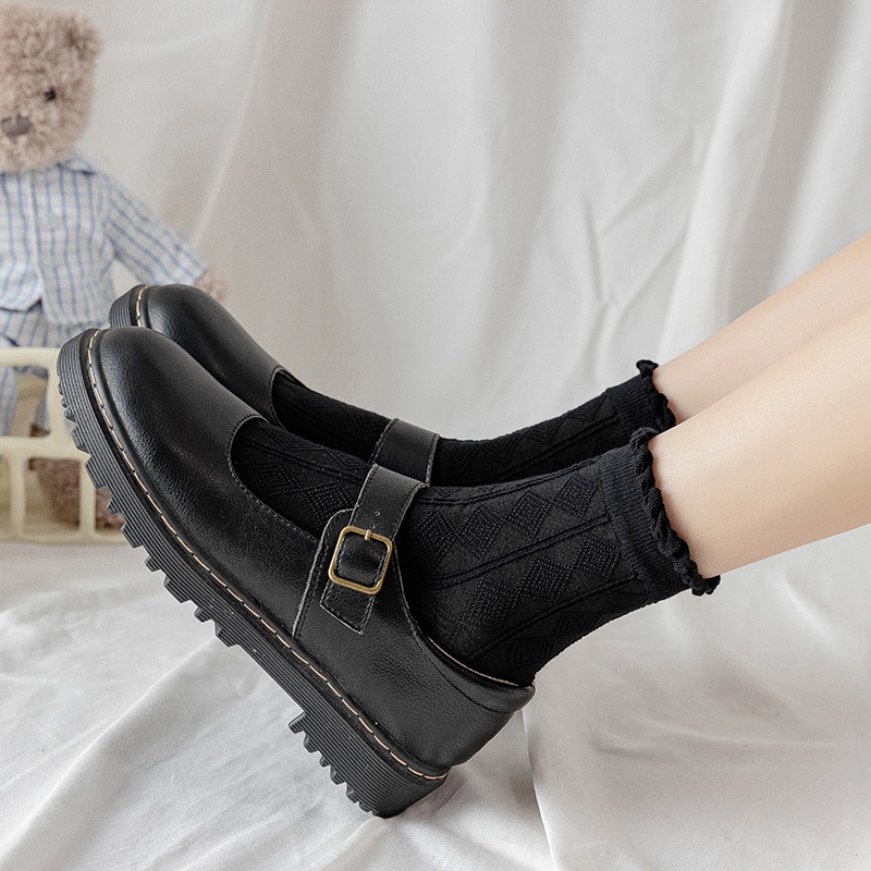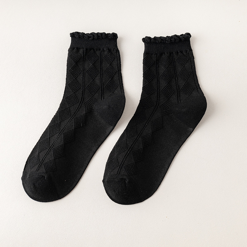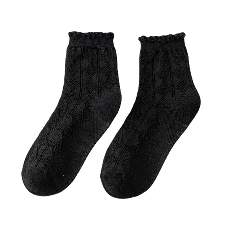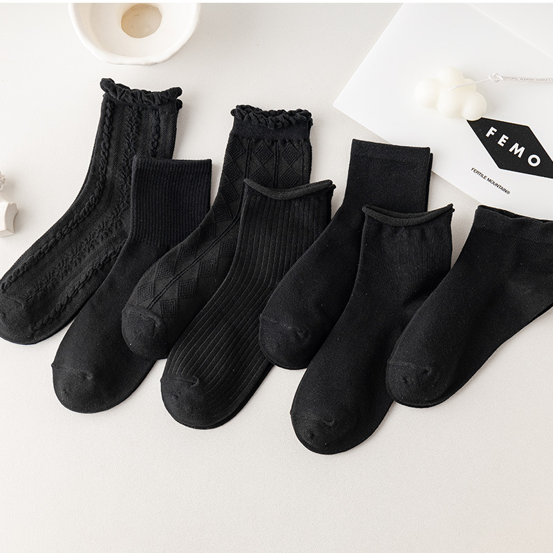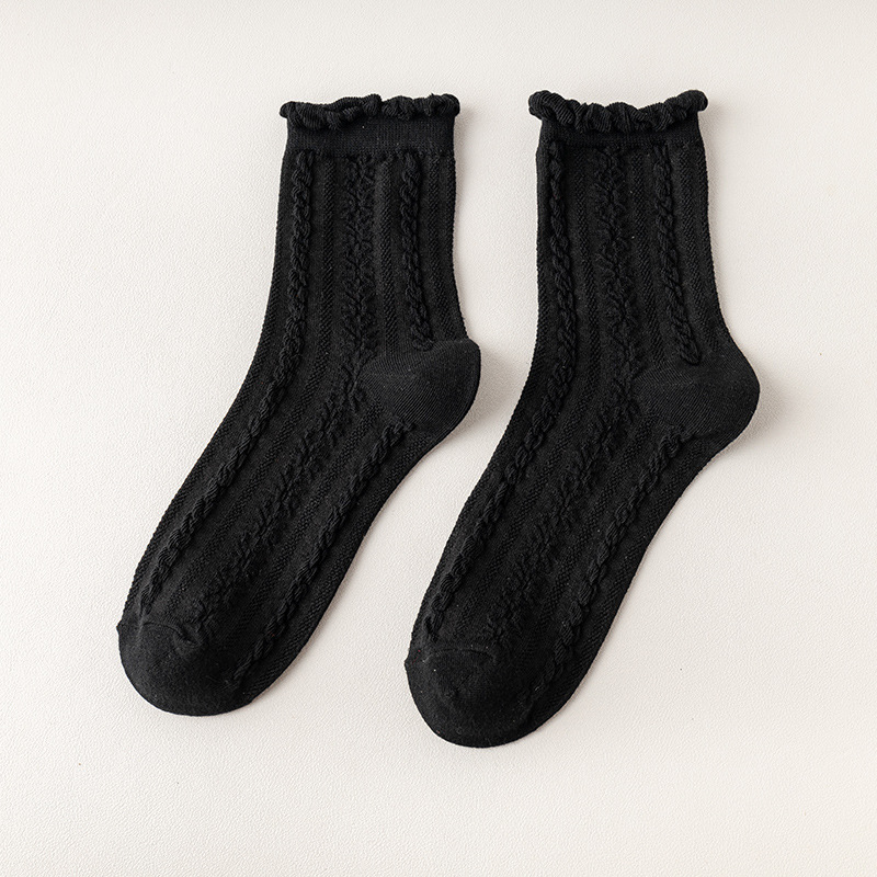 袜子女中筒袜春秋款纯色棉jk花边刺绣长筒袜夏季薄款黑色秋季长袜