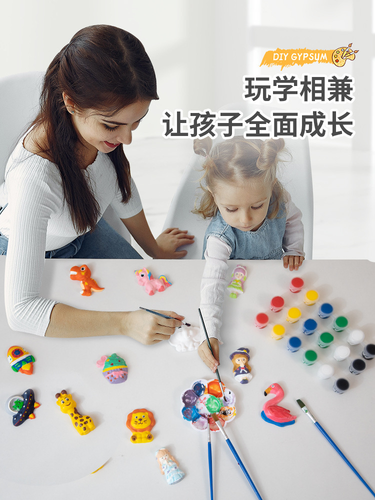迷你小号石膏娃娃涂色小熊白胚彩绘石豪公仔diy玩具涂鸦儿童批发