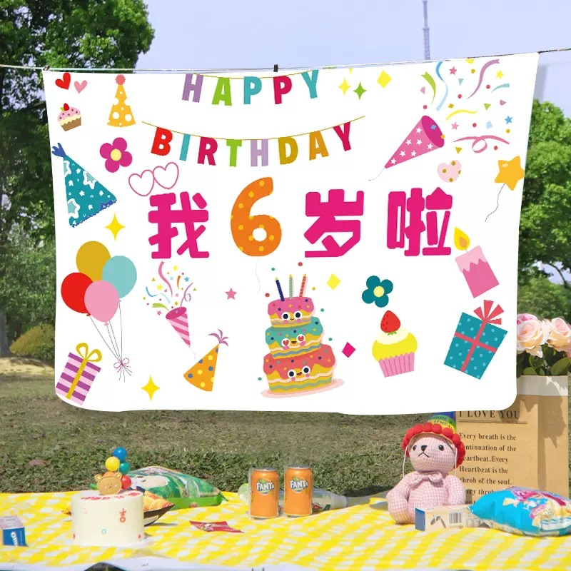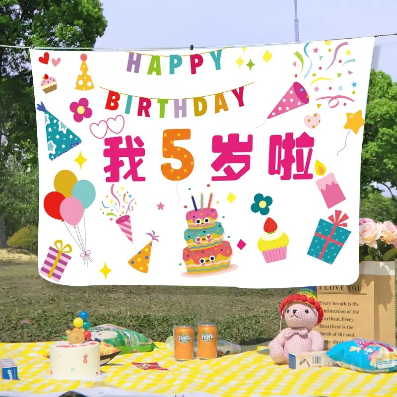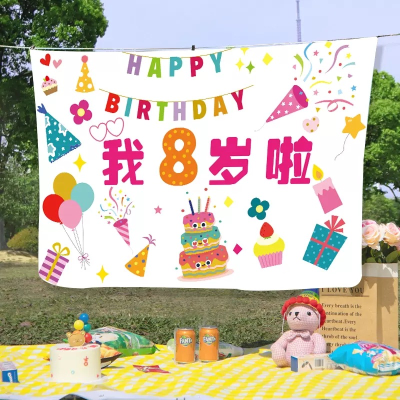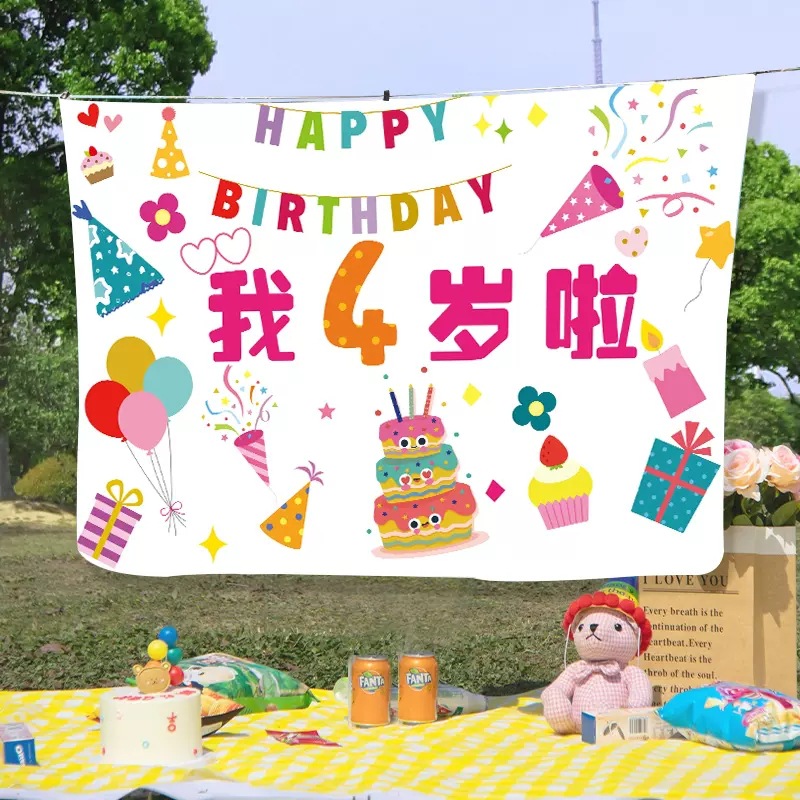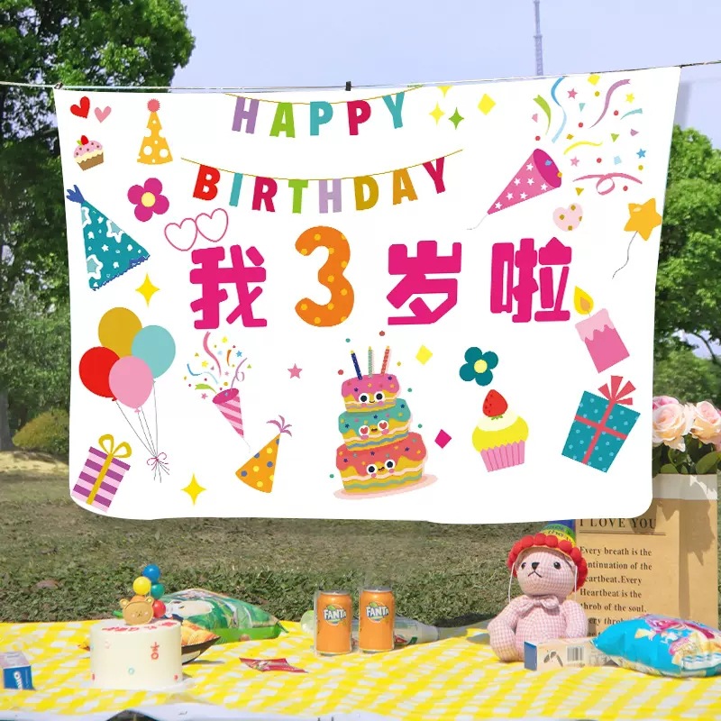 小红书ins儿童周岁生日快乐背景布男女孩3宝宝2挂布布置场景装饰