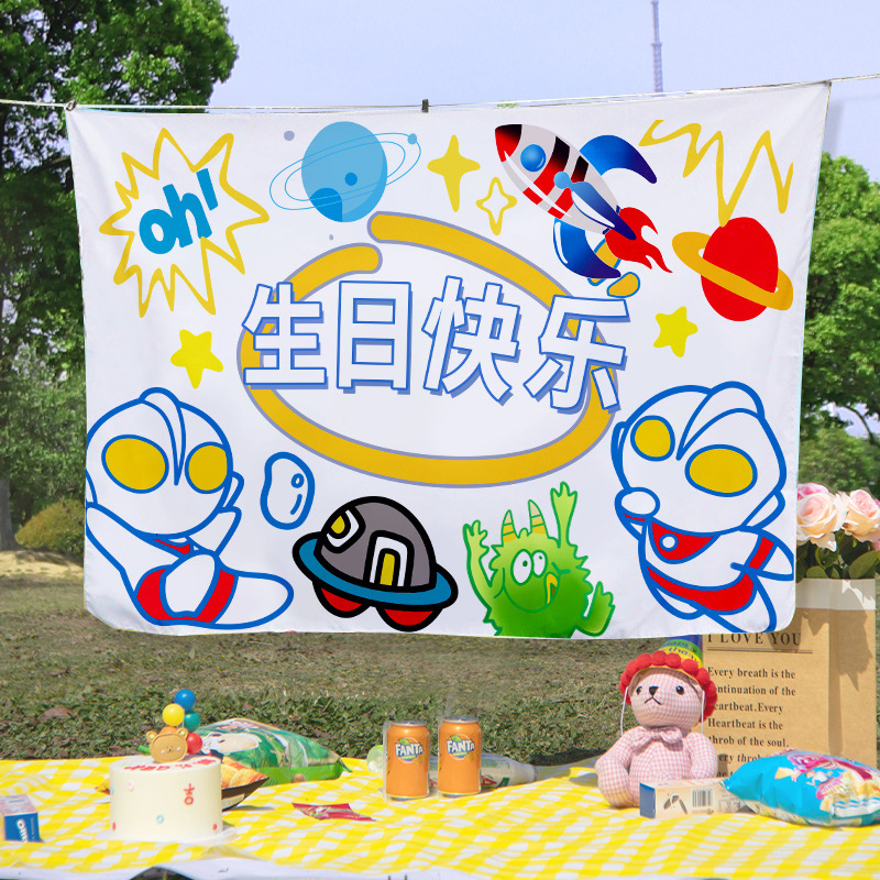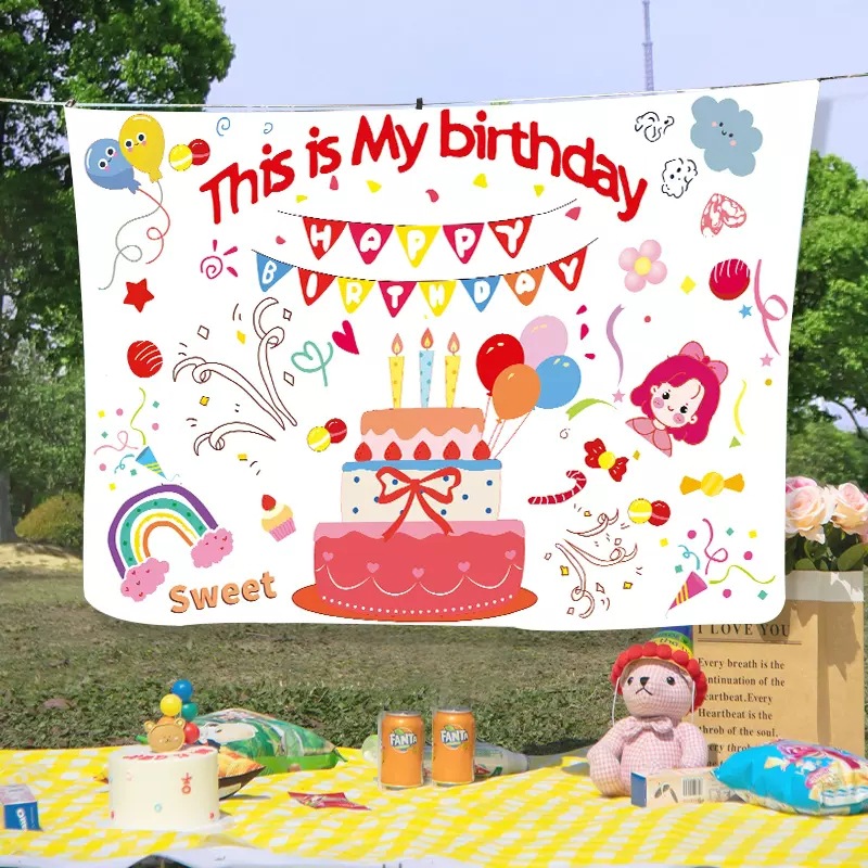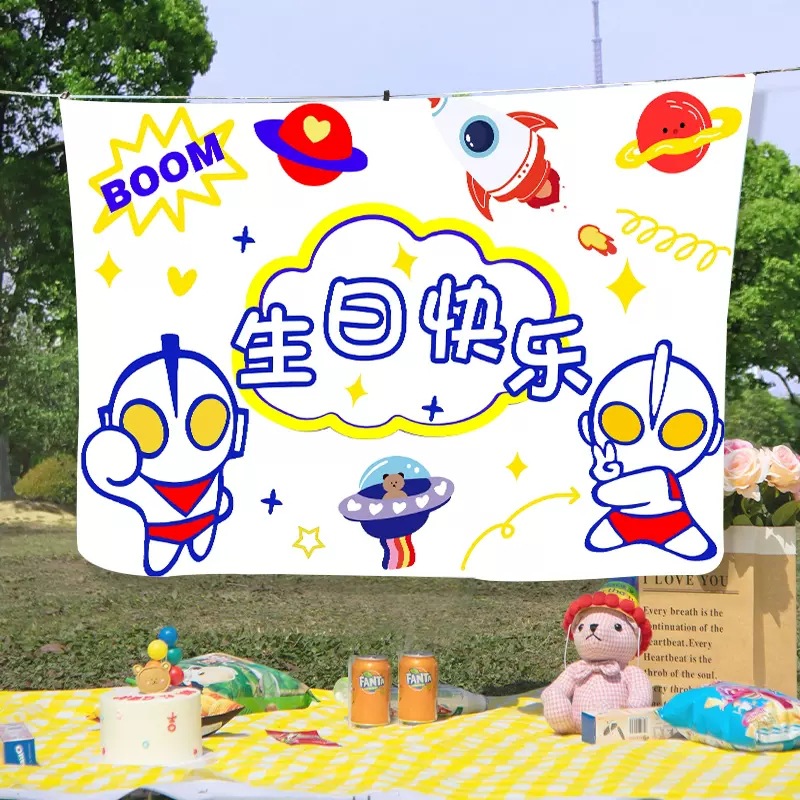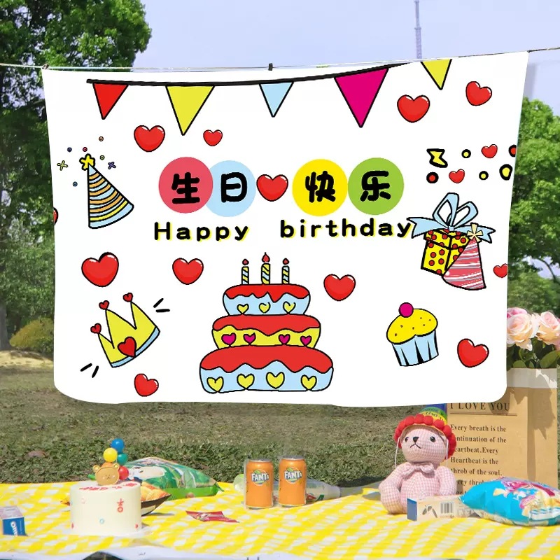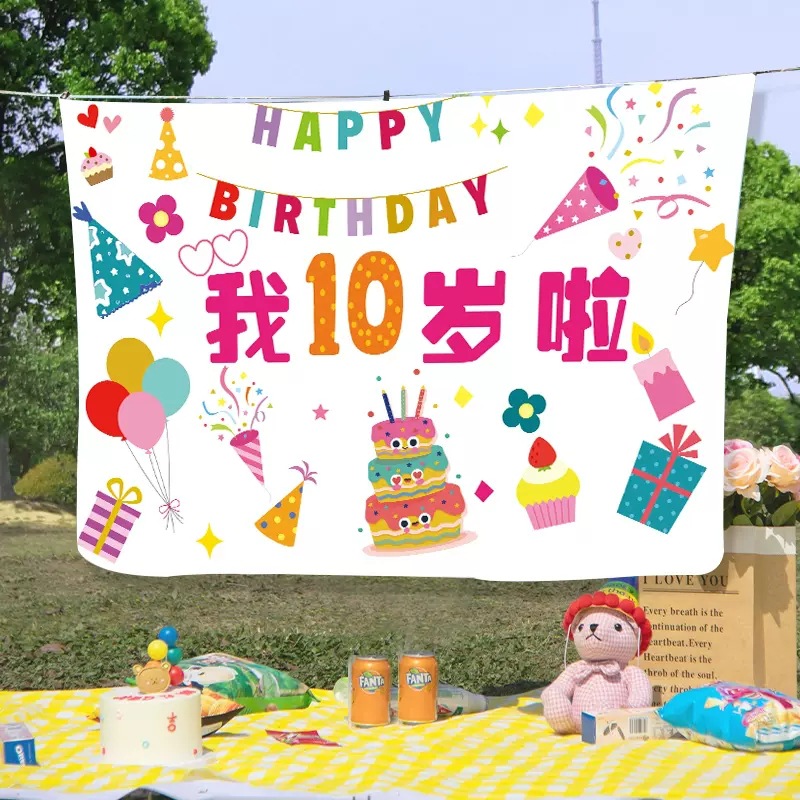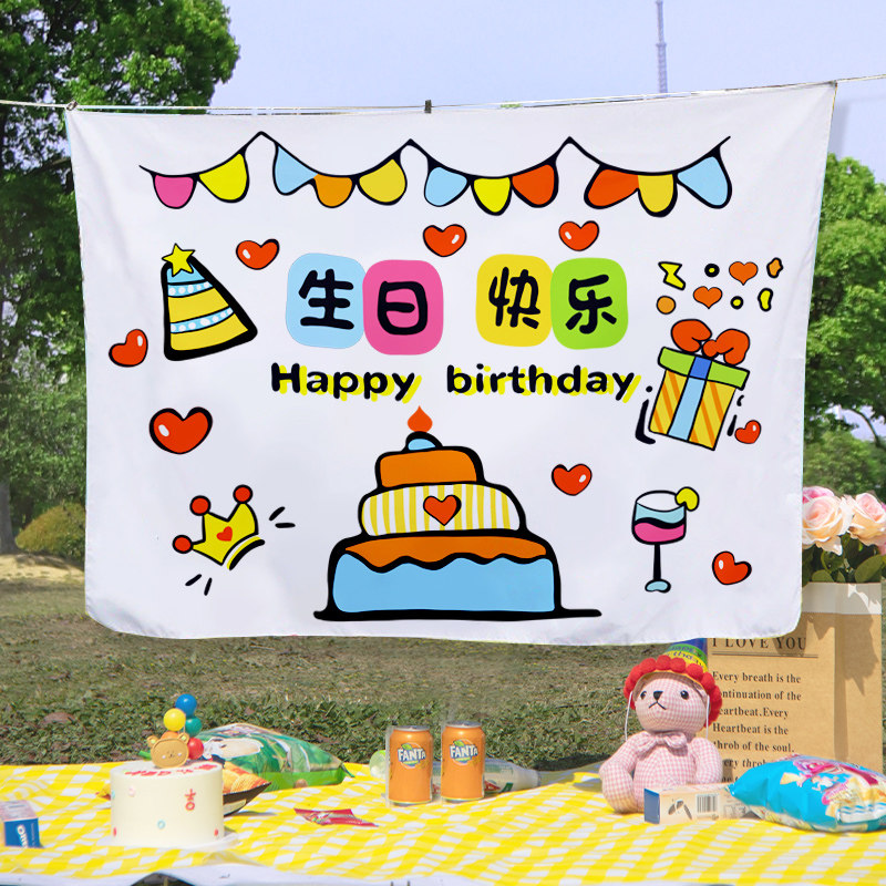 小红书ins儿童周岁生日快乐背景布男女孩3宝宝2挂布布置场景装饰