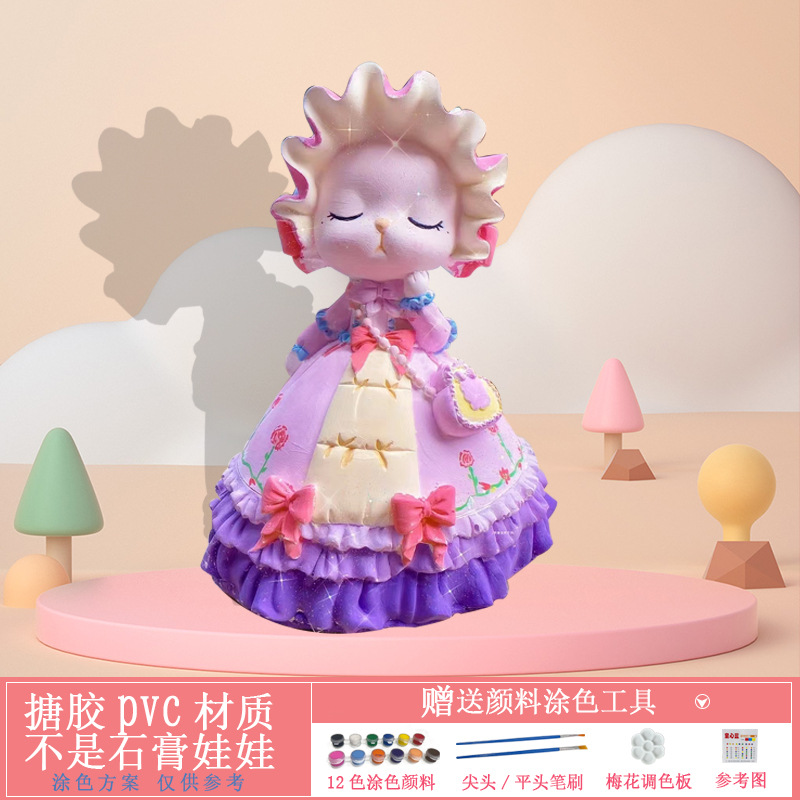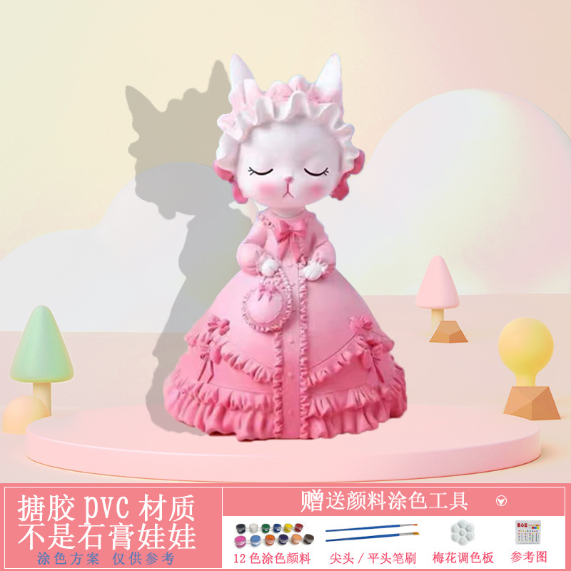 2023苏菲兔公主搪胶非石膏娃娃涂色diy存钱罐摆摊白胚上色公仔玩