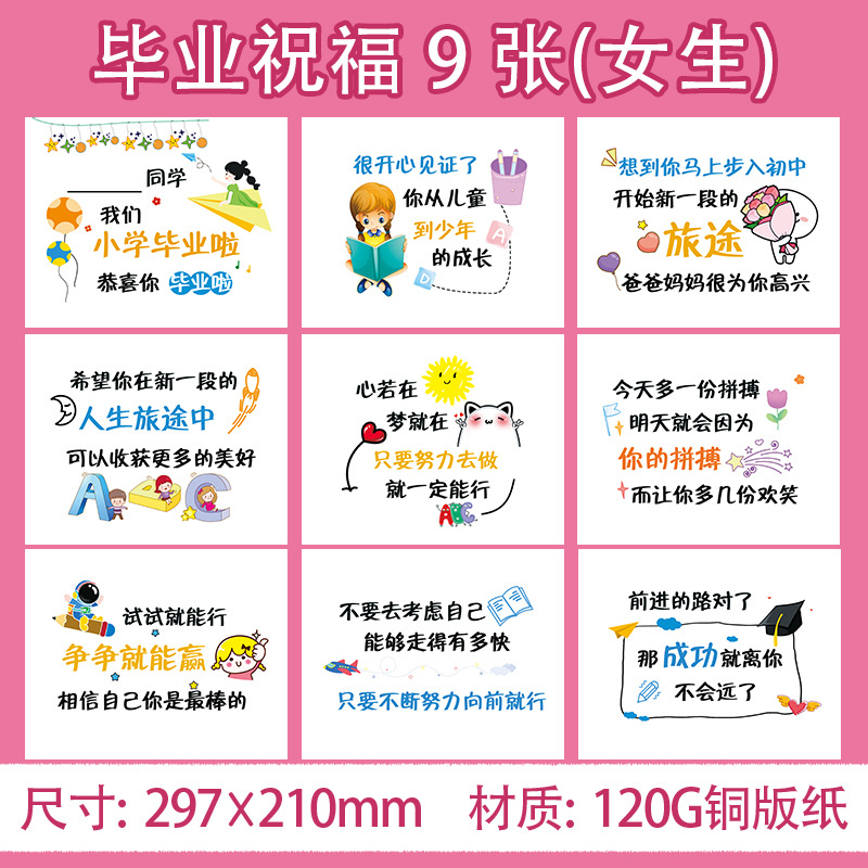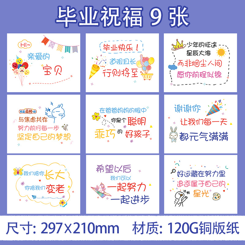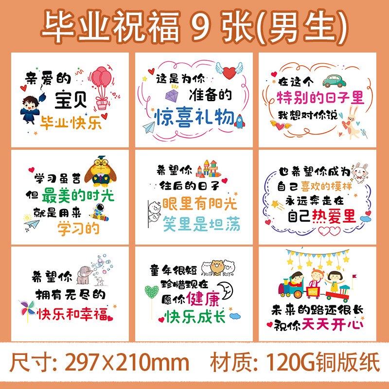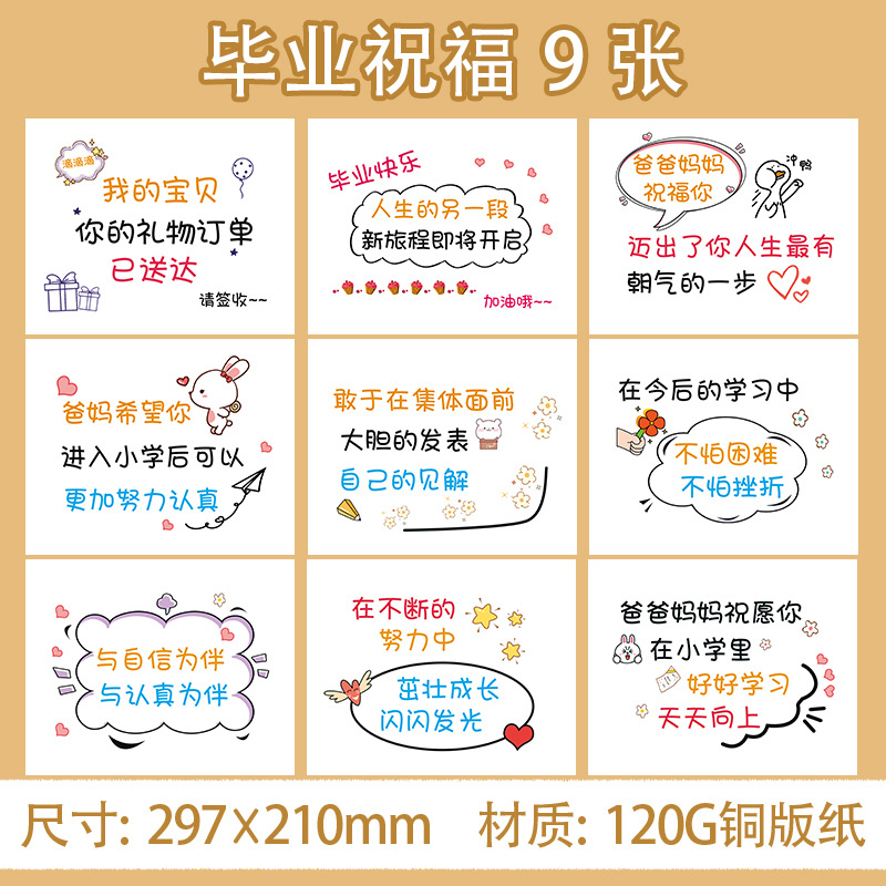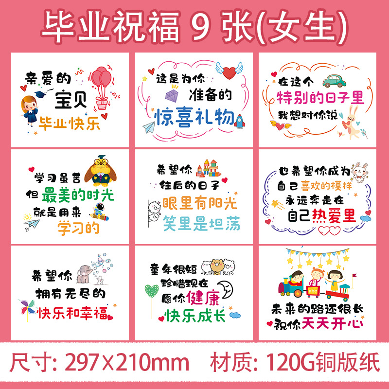 小学生幼儿园毕业贺卡送同学宝贝仪式感个性卡片女孩卡通男生A4高