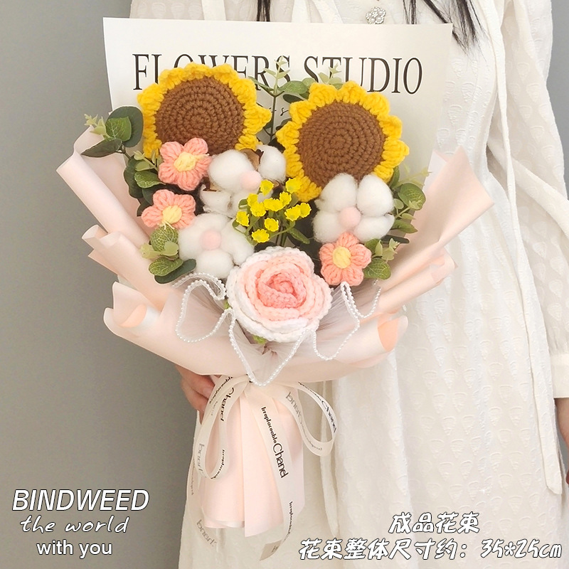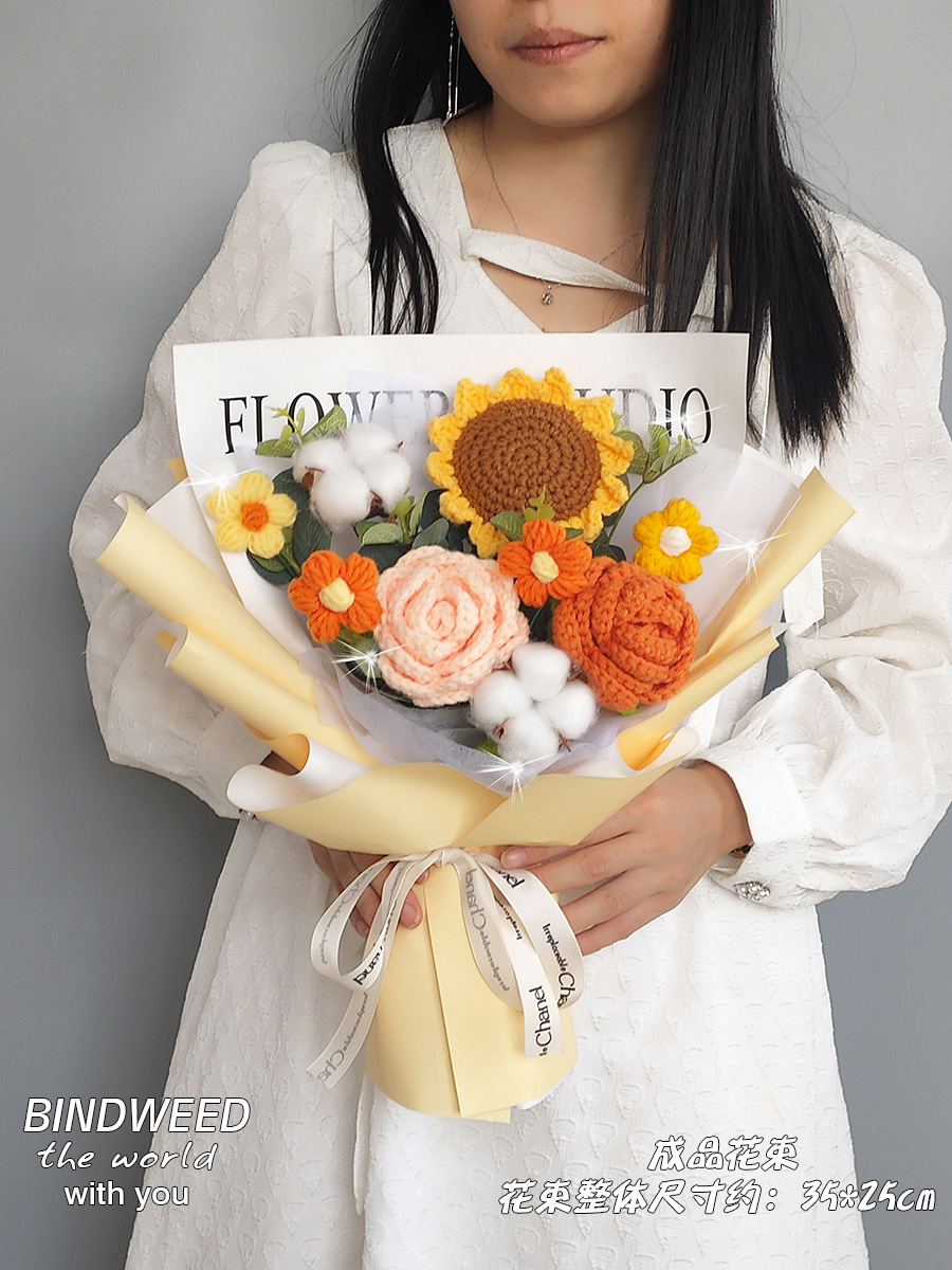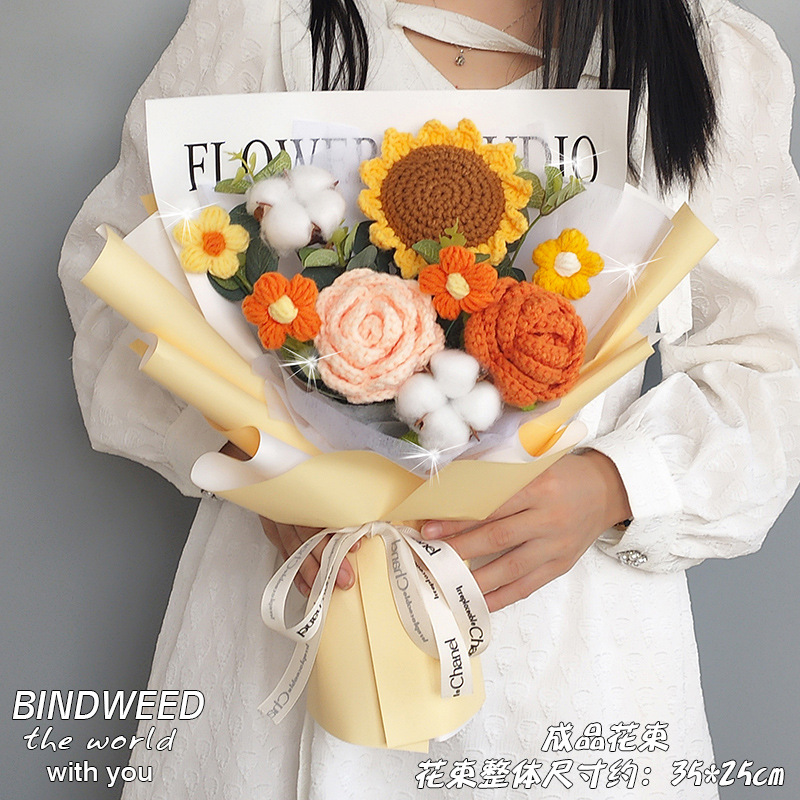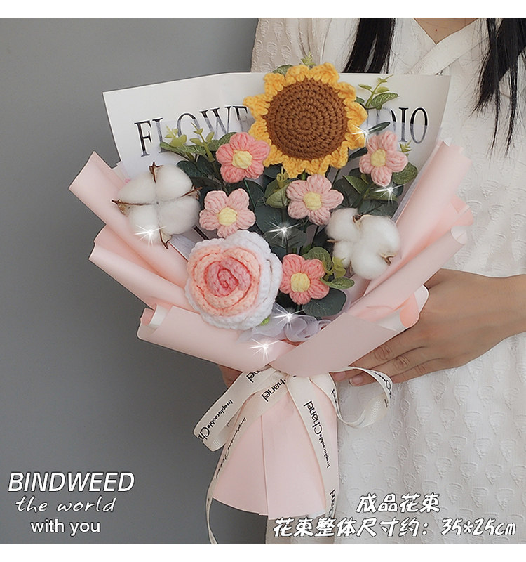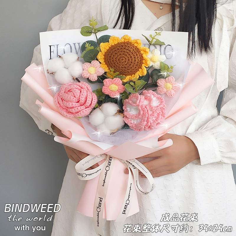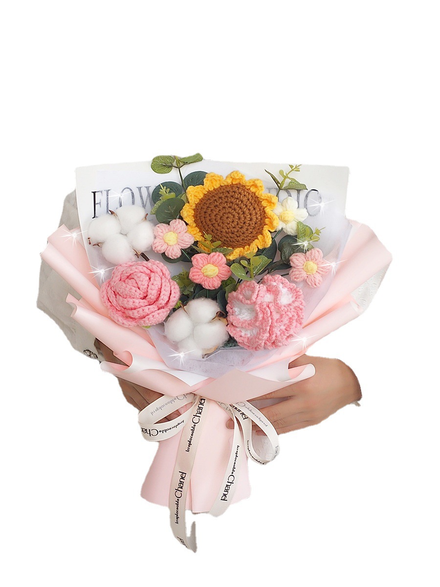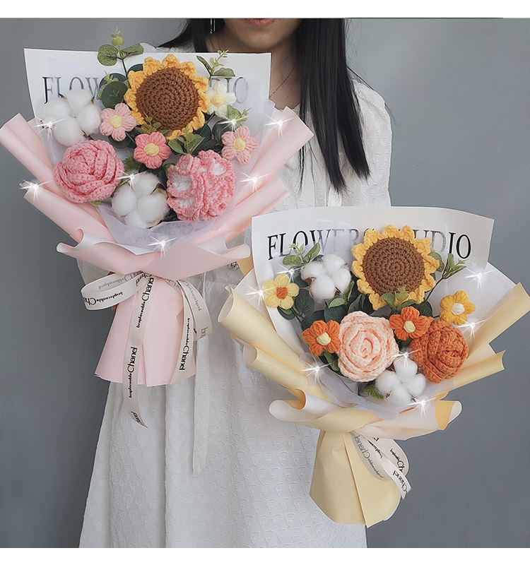 2023新款编织针织向日葵玫瑰康乃馨毕业花束毛线花生日母亲节送妈